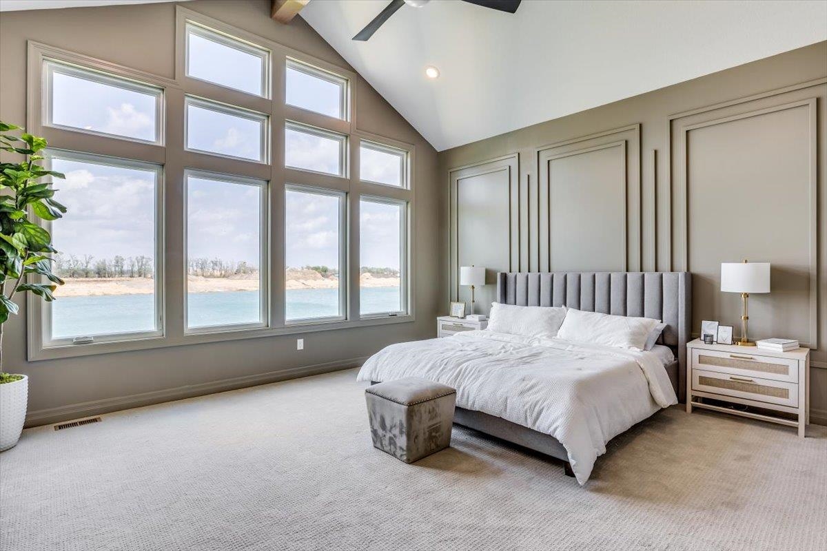 - Description: Introducing the Bellmar Plan by Paul Gray Homes – A Lakeside Luxury Retreat in Castaway! Welcome to the epitome of refined lake living in one of Wichita’s most sought-after neighborhoods. Perched on a stunning lakefront lot along a 135-acre surf lake, this remarkable residence offers the perfect blend of sophisticated design, comfort, and breathtaking views. Step inside and be greeted by a bright and spacious living room, complete with a gas fireplace, backlit beamed ceiling, and expansive picture windows that frame the dazzling water just beyond. The adjoining chef’s kitchen is a culinary dream, featuring a 10-foot island, oversized side-by-side stainless steel refrigerator, gas range, walk-in pantry, and designer finishes throughout. Entertain with ease in the elegant dining area with custom ceiling trim and seamless access to the covered 12’ x 20’ precast lanai—perfect for lakeside gatherings or quiet evenings outdoors. The luxurious Master Suite is a private sanctuary, boasting vaulted ceilings, dramatic graduated windows, and a spa-inspired bathroom with a full tile shower, soaking tub, and an expansive walk-in closet complete with built-in dresser, seasonal storage, skylight, and direct access to the laundry room. The main floor also includes two spacious guest bedrooms, each with their own walk-in closets and en-suite baths. Downstairs, the fully finished walkout lower level expands your living space with a massive family room, statement wet bar, guest half bath, and three additional bedrooms—two of which offer walk-in closets and private baths and the third sets up perfectly as a home office or guest room. A dedicated home gym with lake views and patio access completes this level. Step outside to your own private beach and savor the unparalleled beauty of Castaway’s crystal-clear surf lake. Don’t miss this extraordinary opportunity to own a one-of-a-kind home where luxury meets lake life—The Bellmar Plan by Paul Gray Homes awaits. Some information may be estimated and is not guaranteed. Pricing is subject to change without notice. Please verify schools with USD 266. Show all description