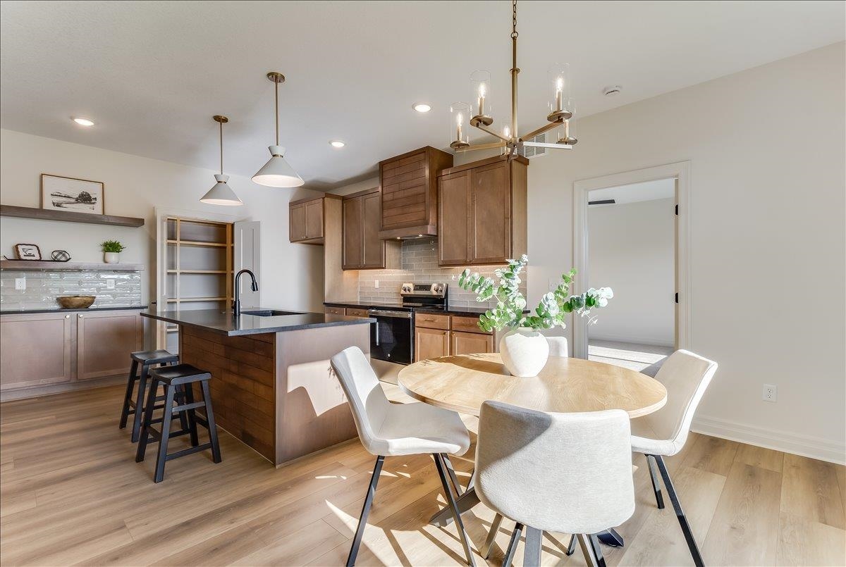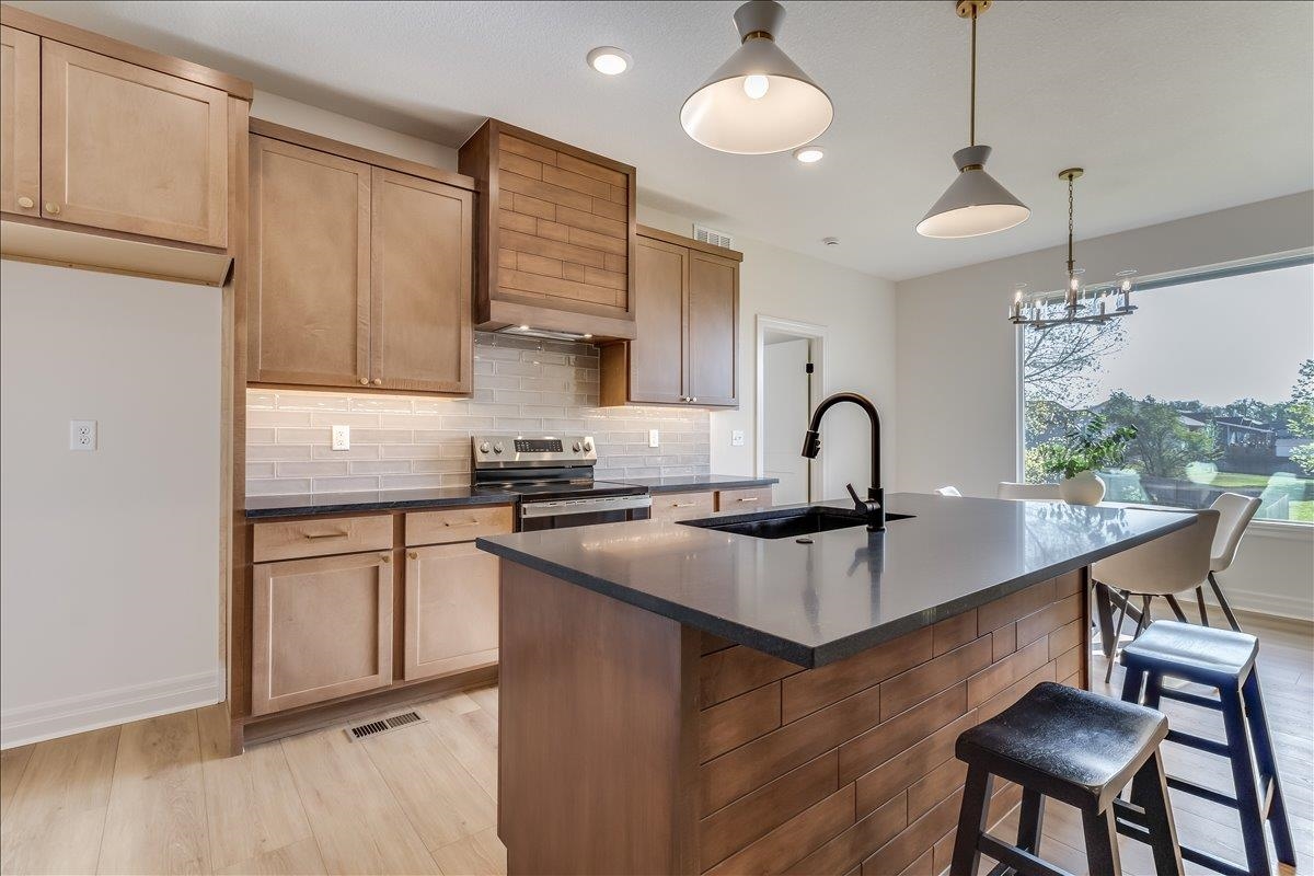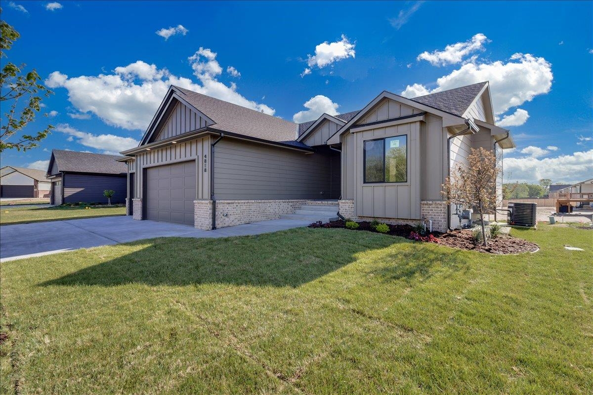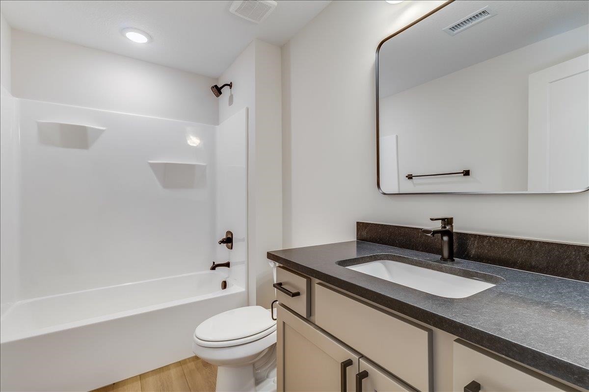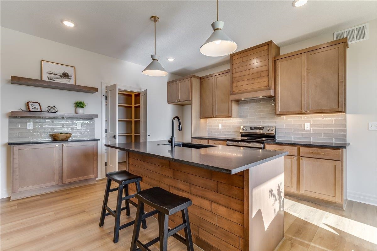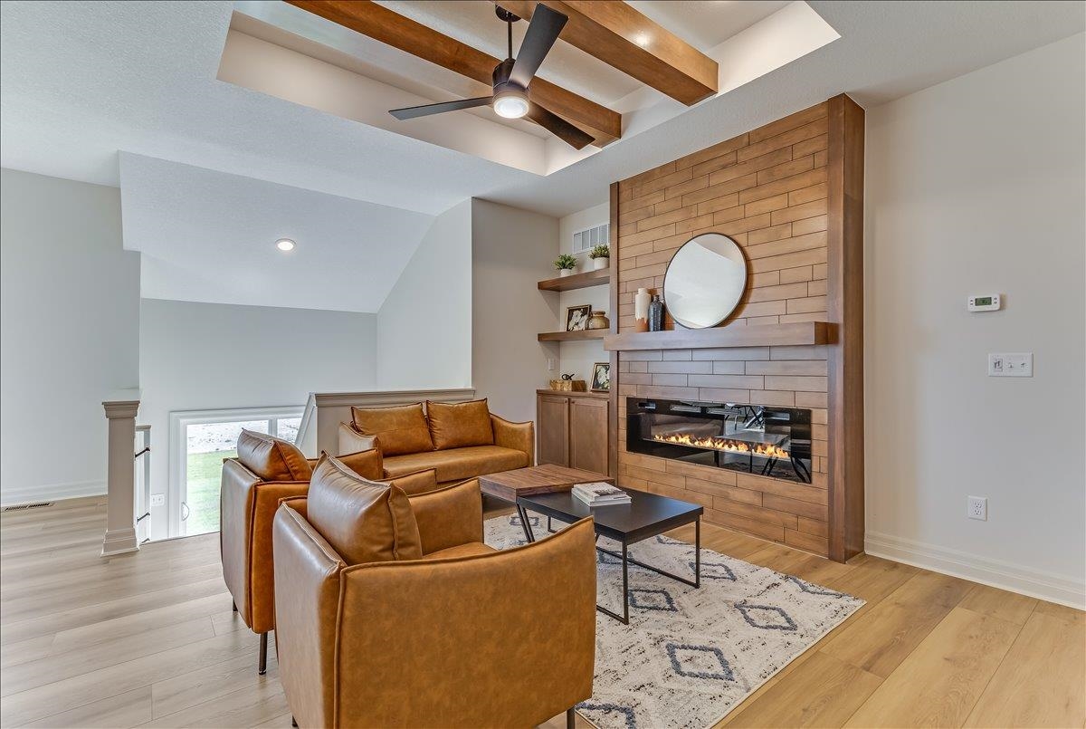 - Description: JK Blue Living presents the AVA mid level 6 bedroom home with full finished lower level, great room design with decorative electrict fireplace, LVP floooring great room, kitchen and dining and quartz counter tops, beamed ceilings, walk in pantry, and main floor utility. The lower level has a finished rec room with wet bar, bath and 3 bedrooms. The mid level patio is covered and great for outdoor living. The home offers a 3 car garage as well. The home includes sprinkler system, sod and some landscaping. Show all description