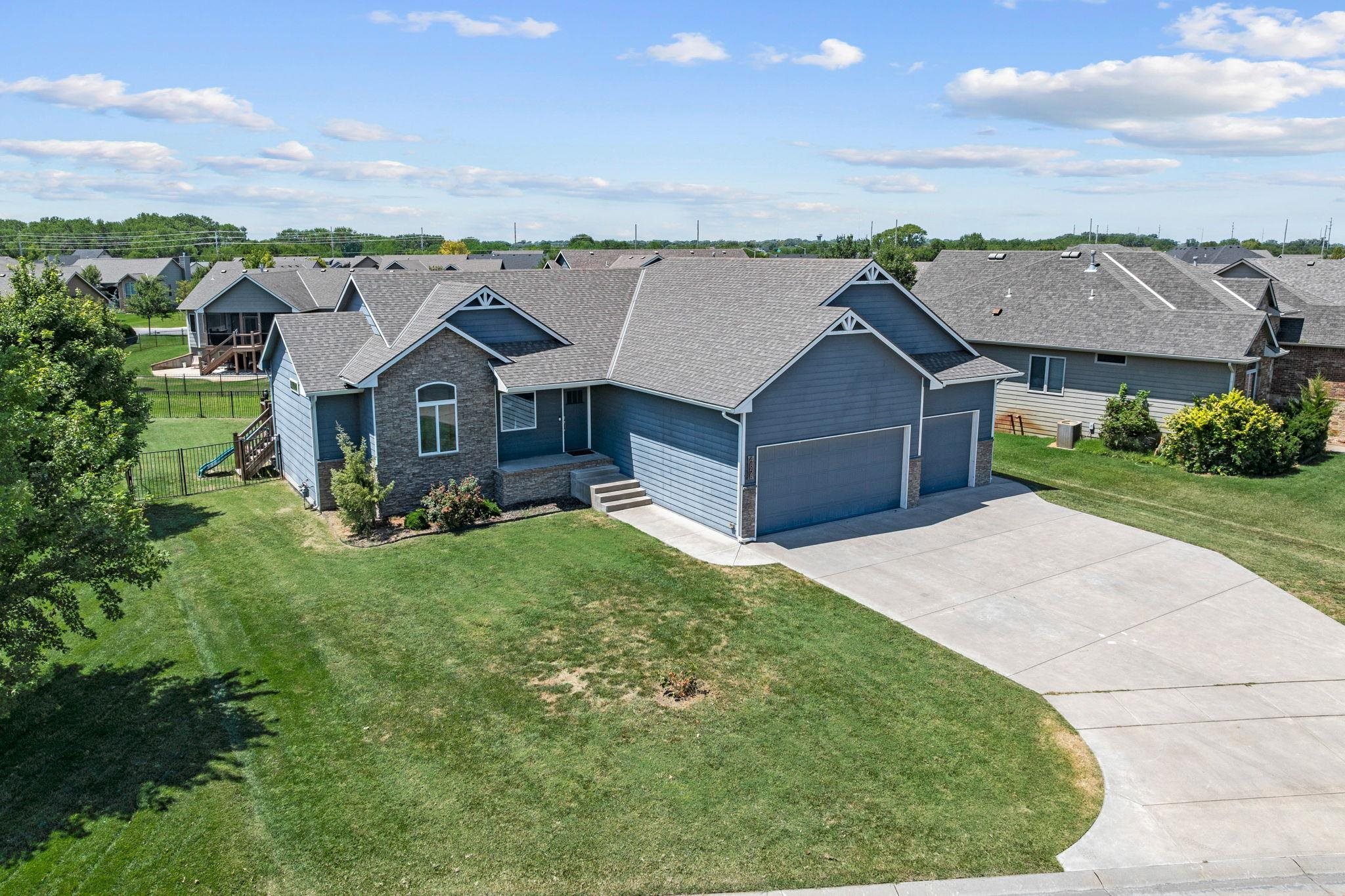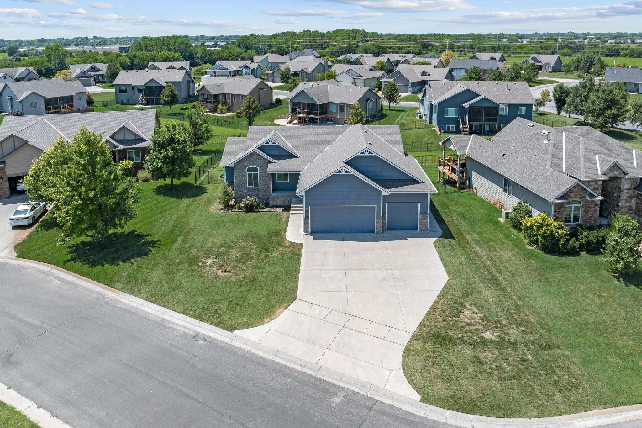 - Description: Welcome to this stunning 6-bedroom, 3-bathroom home offering nearly 3, 000 square feet of bright and functional living space, HUGE oversized garage, perfectly situated on a large cul-de-sac lot in Emerald Springs. Step inside to discover a bright and airy open-concept layout with soaring vaulted ceilings, tall picture windows, and natural light pouring in throughout. The spacious living area flows seamlessly into a stylish kitchen, ideal for both everyday living and entertaining. The main-floor primary suite is a true retreat—featuring a spa-like ensuite with a large walk-in shower, separate soaking tub, dual vanities, and two walk-in closets. You'll also love the convenience of the connected main-floor laundry. Two additional bedrooms and a full bath complete the main level. Downstairs, the walk-out basement impresses with a generous family room, custom built-ins, a wet bar, and oversized windows that let in tons of natural light. You'll find three more bedrooms and a full bath—perfect for guests, teens, or home office setups. Enjoy outdoor living on the huge covered deck or entertain on the spacious backyard patio. A wrought iron fence surrounds the beautifully maintained yard, offering privacy and style. All of this is located in the highly sought-after Maize School District, just minutes from major highways, shopping, and restaurants. Don't miss your chance to call this incredible home yours—schedule your private showing today! Show all description