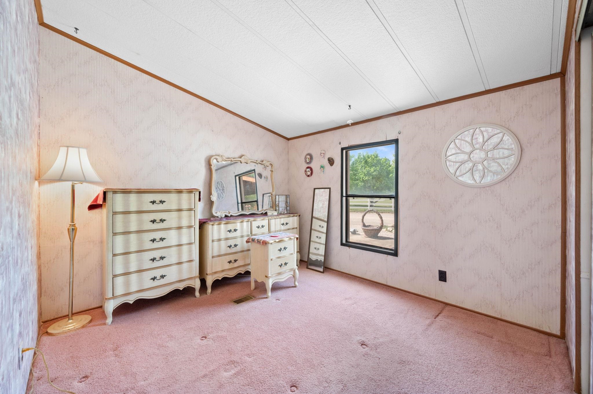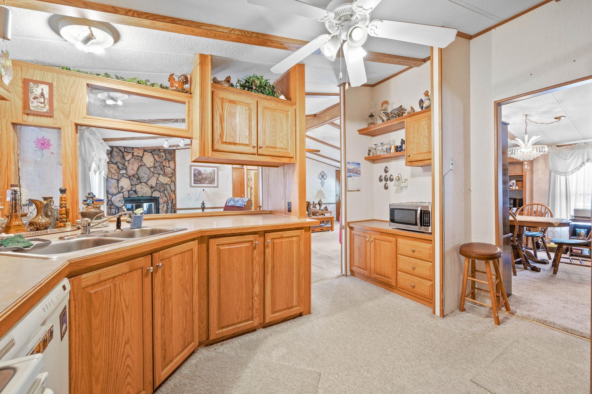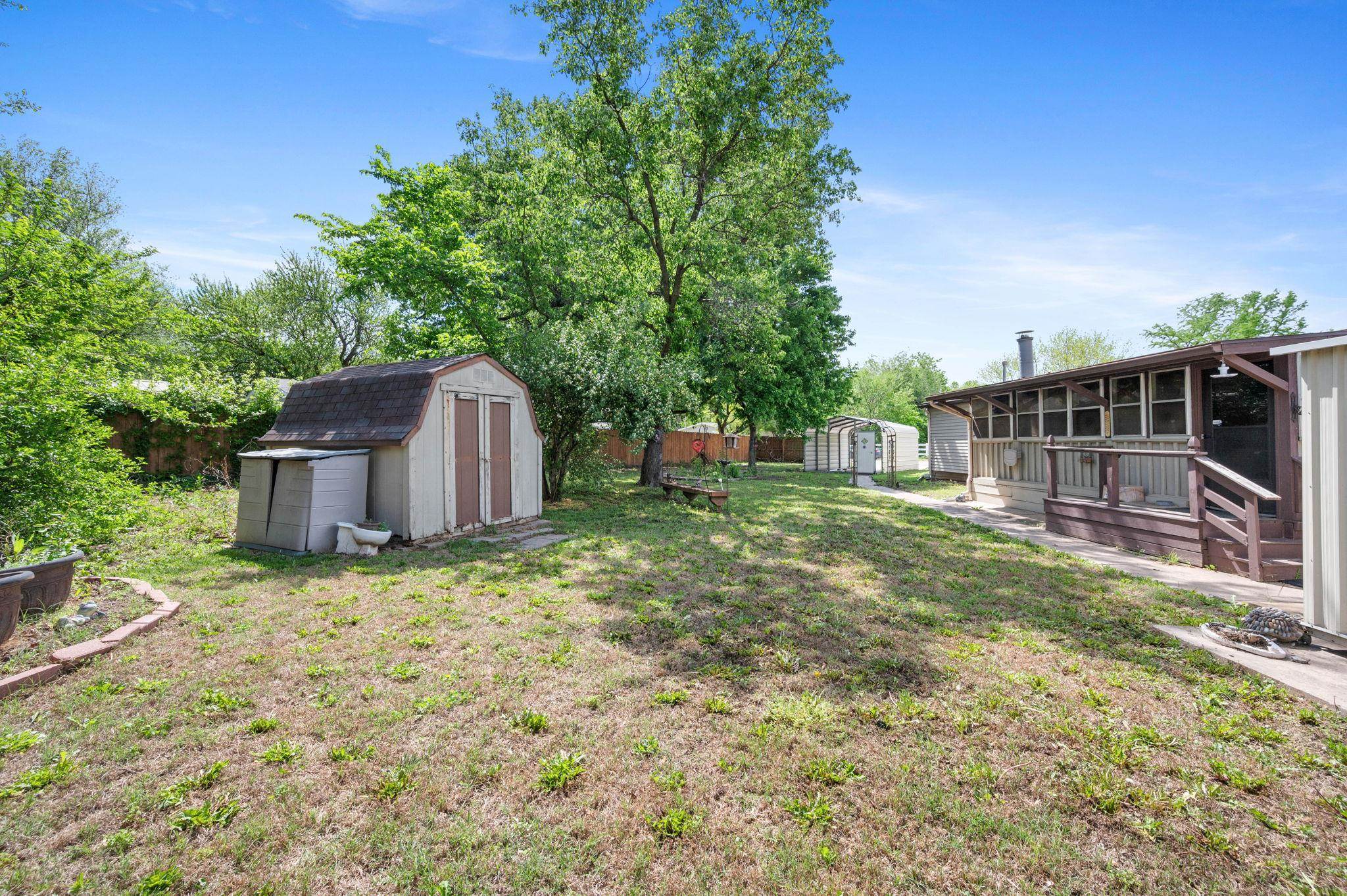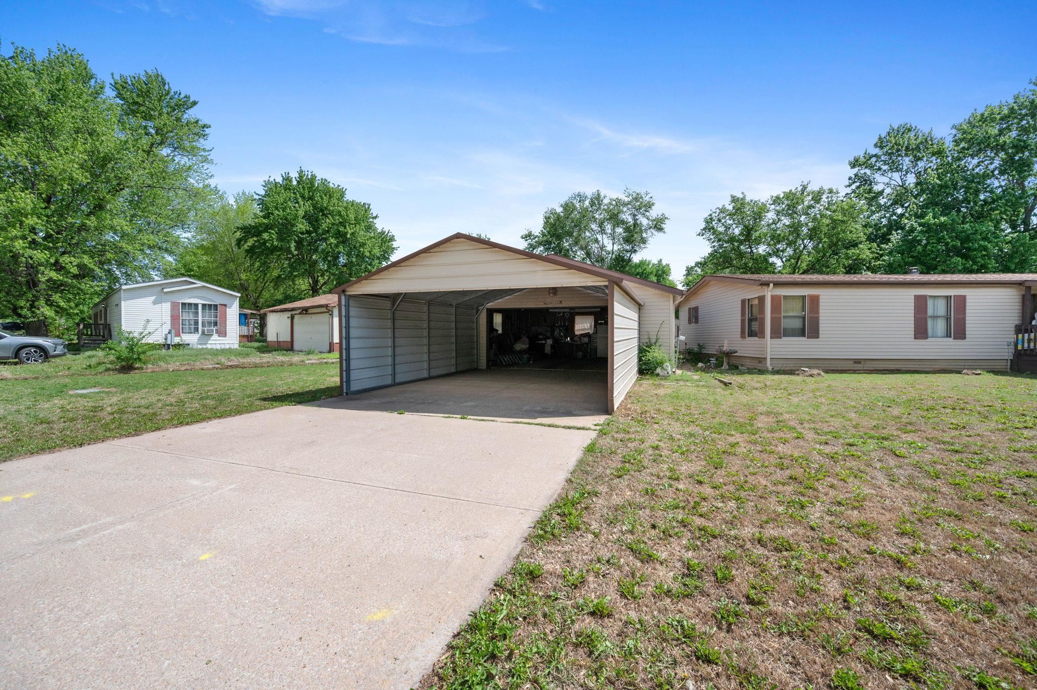 - Description: This 3 BR 2 BA detached 2-car garage manufactured home sits on 1/3 acre lot with circle drive, front porch, mature trees. Spacious living space with vaulted ceilings, large living room and kitchen/dining room. Lots of cabinetry in big kitchen. Split bedroom plan has huge primary suite, walk-in closet. Two additional bedrooms and 2nd full bath round out the home. Covered and Screened in porch exit to backyard, storm cellar, wood privacy fence, plenty of yard for a big garden. Large detached garage with space for 2 cars with covered parking in front. Derby Schools. City Water, Natural Gas. Home will be sold as is - where is. Cash or Conventional Loans only. out on this one!! Show all description