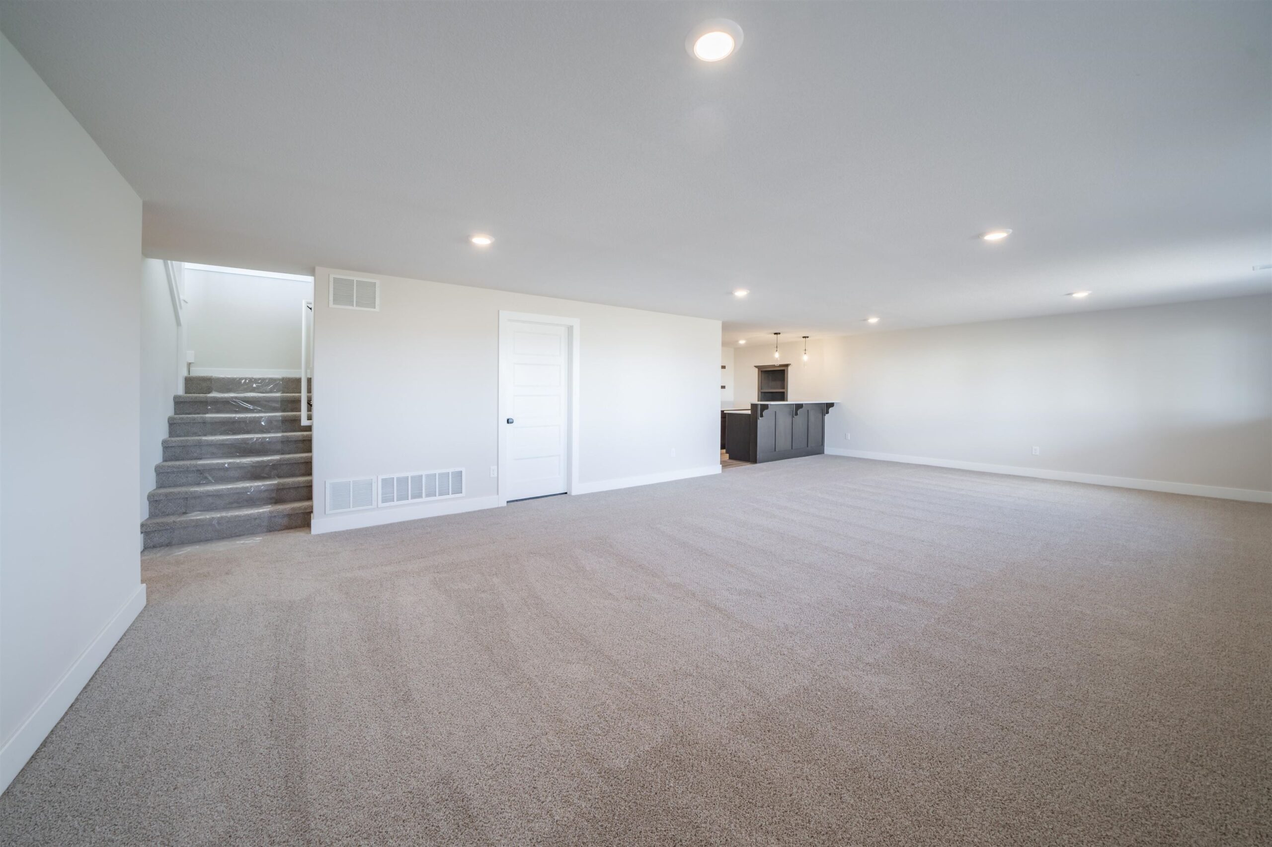 - Description: Vision Homes brings the Amelia design to our newest development at The Coves. This amazing split bedroom plan gives 5 bedrooms, 3 bathrooms and a 3 car garage. A welcoming large porch with gorgeous stone will greet your guests at the door with a warm brick staircase as well. They have upgraded the garage to 8 foot tall garage doors and beautiful vertical siding. The main floor is open concept with expansive space allowing light from the large windows, and stunning painted trim wood work feels soft and clean. The kitchen offers LVP flooring, large island for entertaining and eating bar, granite counter tops and a custom hood. The master suite feels spa like with a custom built-in dresser, large windows, upgraded tall vanities, tile flooring, with gorgeous tub and onyx shower. Don't forget the fully finished large family room in the basement, offering another 2 bedrooms and full finished bath. Sprinkler, sod and well are included in this price point as well. The home is currently under construction with plenty of time for buyers to pick some custom finishes to complete this design and space. Some information is estimated and cannot be guaranteed. Options and pricing are subject to change with out notice. *This home is in a Covenant Community. Please request and review for HOA requirements. Show all description