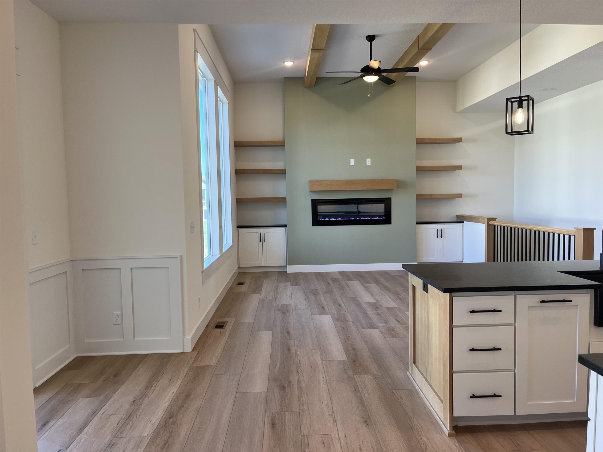 - Description: Keystone construction brings the Aspen IV to the Coves. The home offers the split ranch floor plan and open concept on the main level. Enjoy a modern exterior with some cedar plank rustic finishes around the garage doors and front entry. The design selection flows wonderfully through the home with large crown moldings around floor to ceiling windows. Beautiful floating shelves flank the fireplace for lots of decorative items. The open floor plan and railing on the staircase adds design to the space. The kitchen has an amazing large island with walk in pantry, custom vent hood and beautiful white back splash with a chevron pattern, soft close cabinets and drawers, as well as under counter lighting. The master offers 2 separate vanities with a large shower subway style tiles, and nice size walk in closet. The basement is unfinished, but buyers could design it if they desire. The price does include the sprinkler, sod and well. *This home is in a Covenant Community. Please request and review for HOA requirements. Show all description