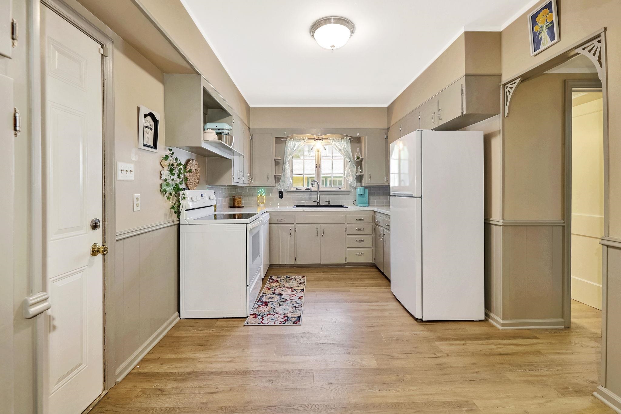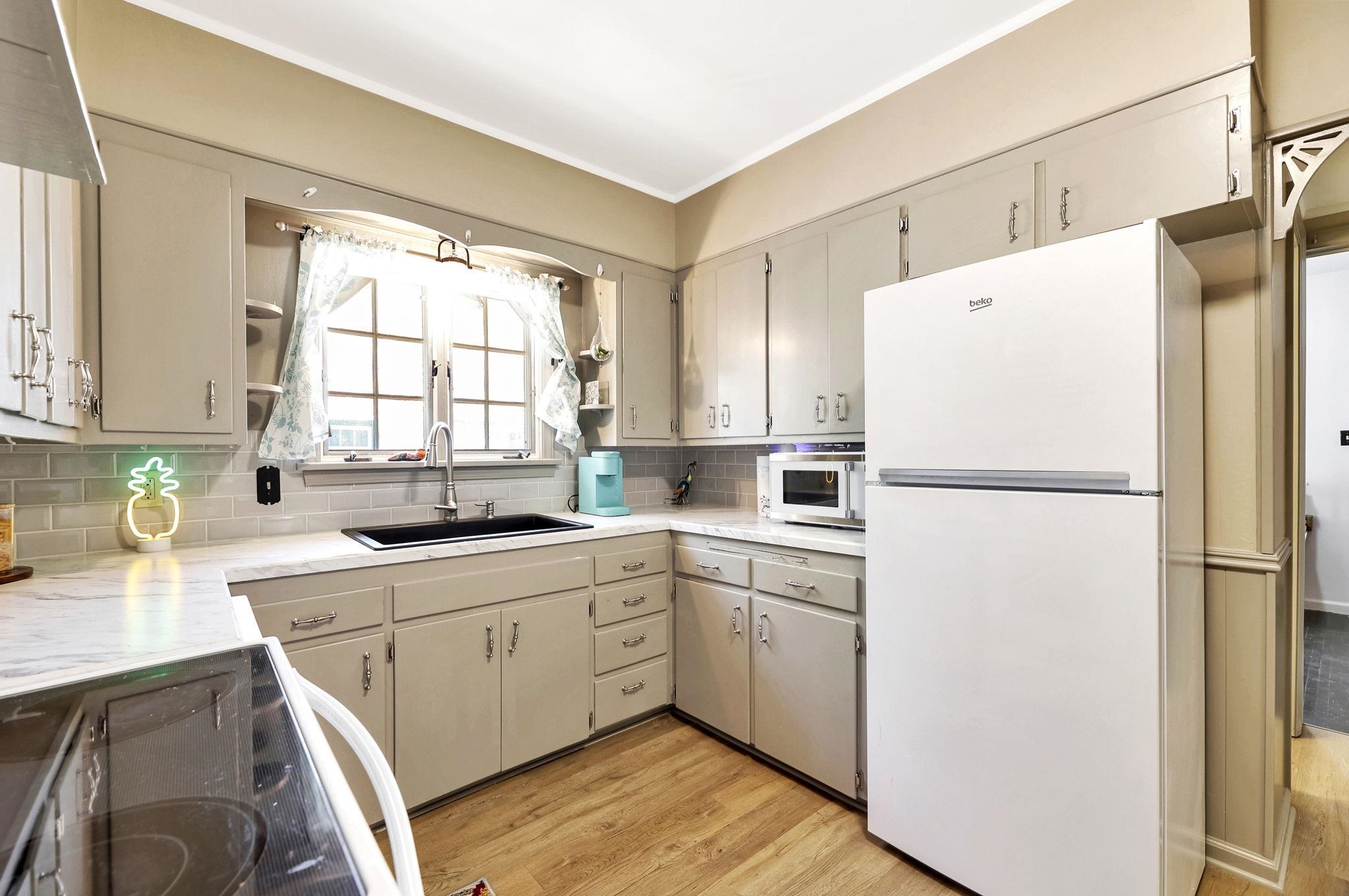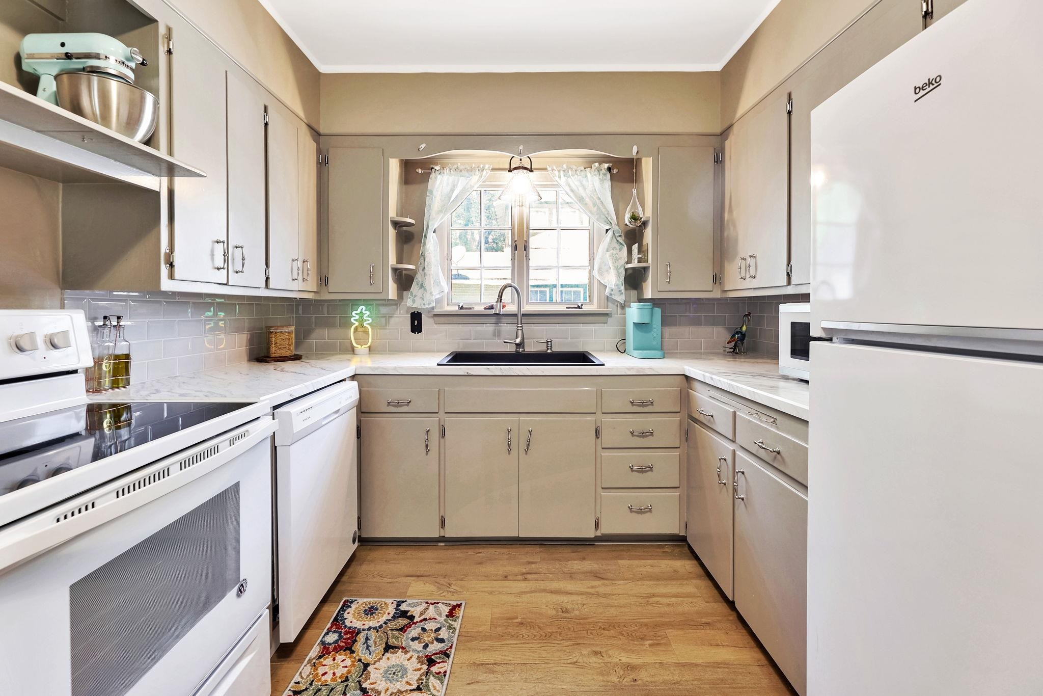 - Description: Welcome to this charming and spacious 4 bedroom, 1.5 bath home situated on a corner lot. This home offers a perfect blend of classic and modern comforts. As you step inside you'll be greeted by an inviting and expansive living/dining room combo with new luxury vinyl flooring, newer paint, classic built-in storage and large windows that create a warm and welcoming atmosphere. The kitchen has new countertops, will be fully applianced and you will have the ability to move the washer and dryer upstairs if you wish as the plumbing remains behind the walls. Upstairs boasts 3 bedrooms and 1 full bath and 2 cedar closets in the large master. Spend your evenings relaxing or enjoy your morning coffee in the screened-in sun porch. The exterior provides an oversized 1-car garage and the yard extends beyond the garage and is fully fenced. Make this wonderful home yours! Schedule your showing today. Show all description