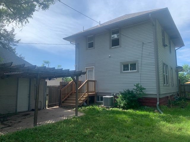 - Description: Welcome to this wonderful 4 bedroom home. Enjoy your cup of coffee on the swing on the front porch and then walk into a view of the lovely original oak staircase and banister. You can see the beautiful (also original) refinished hardwood floors throughout the house. One bedroom (maybe could be an office or dining area) on the main floor and the other 3 are upstairs. 1/2 bath on the main floor and full bath upstairs. The basement is plumbed for another bathroom. Really cute laundry room. Family/rec room in the basement. Newer windows, plumbing, and electrical. Lots of updates! The backyard is fully fenced in, with patio and pergola. This home sits on a double lot. Schedule your showing today! Previous home inspection 12.28.23 can be provided by request. Show all description
