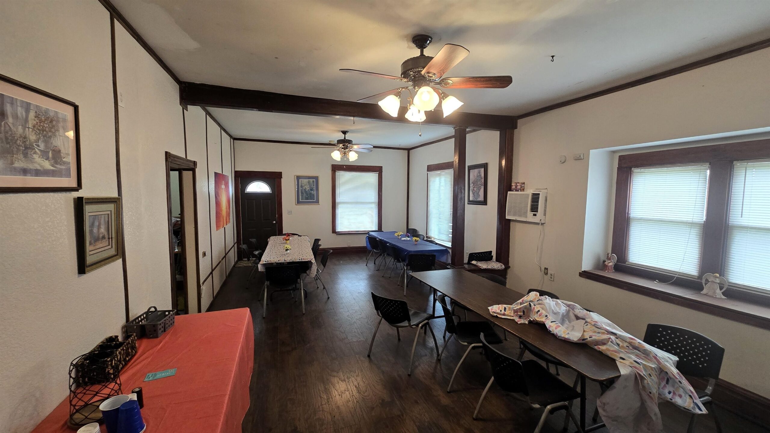 - Description: Spacious church building which also includes a home. On the main floor of the church, you will be greeted with a red stained-glass window and will enter directly into the sanctuary. The sanctuary features a stage and several rows of pews for gathering. Also on the main level is an office with a bathroom along with a couple other multi-purpose rooms. The full basement can be accessed by two separate sets of stairs and features two bathrooms, a large fellowship room, a concession room with window for serving, and plenty of storage space. Great location near Lions Park and just off of Highway 81 on paved frontage. The property is currently considered commercial & industrial class with the county. The house address is 708 N H St and includes a 1950, 3-bedroom bungalow with 1103 square feet of living space. House is also accessible with a ramp in the back and grab bars in the bathroom. Property is being offered in its entirety and in present condition. Sellers will make no repairs or improvements. Show all description