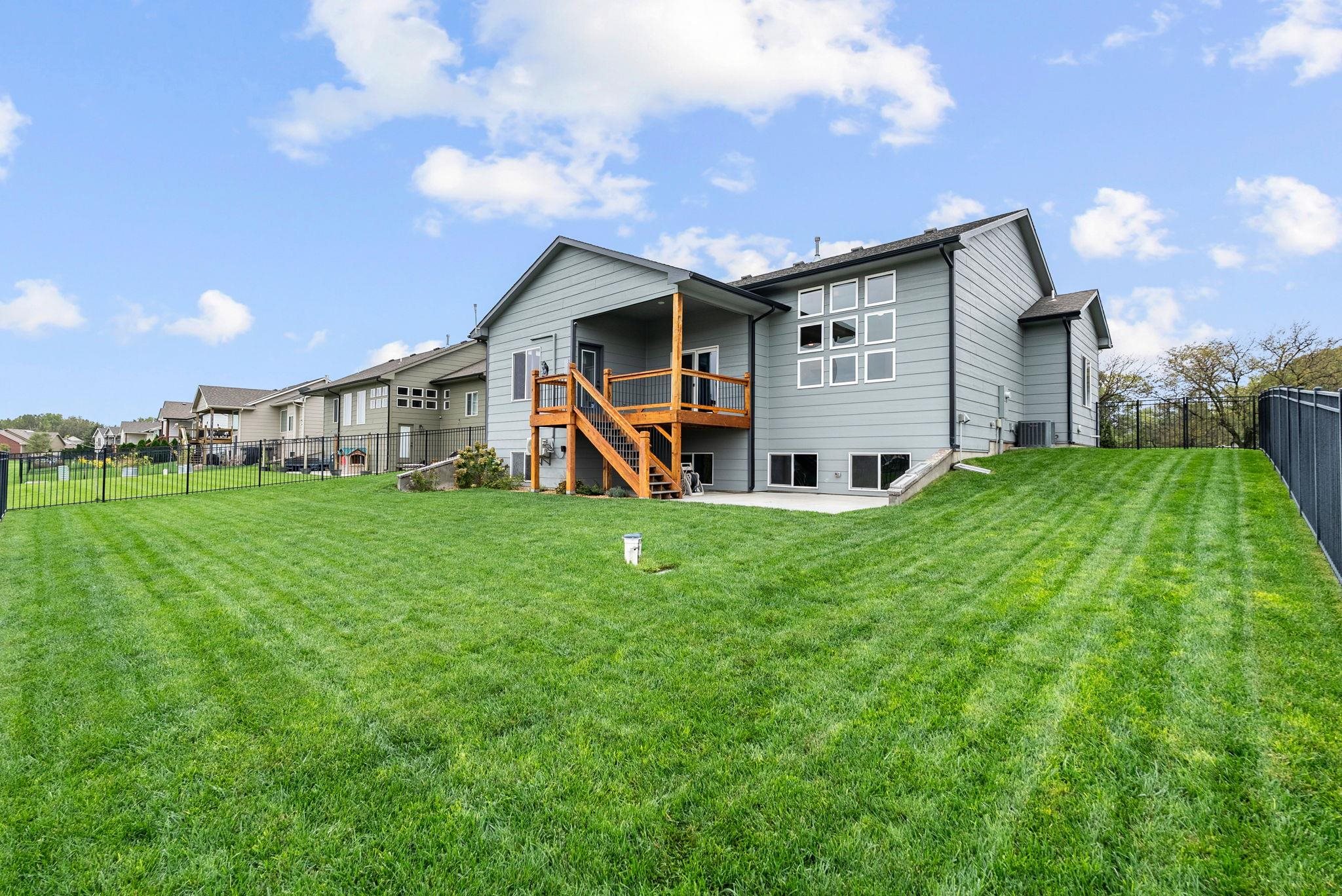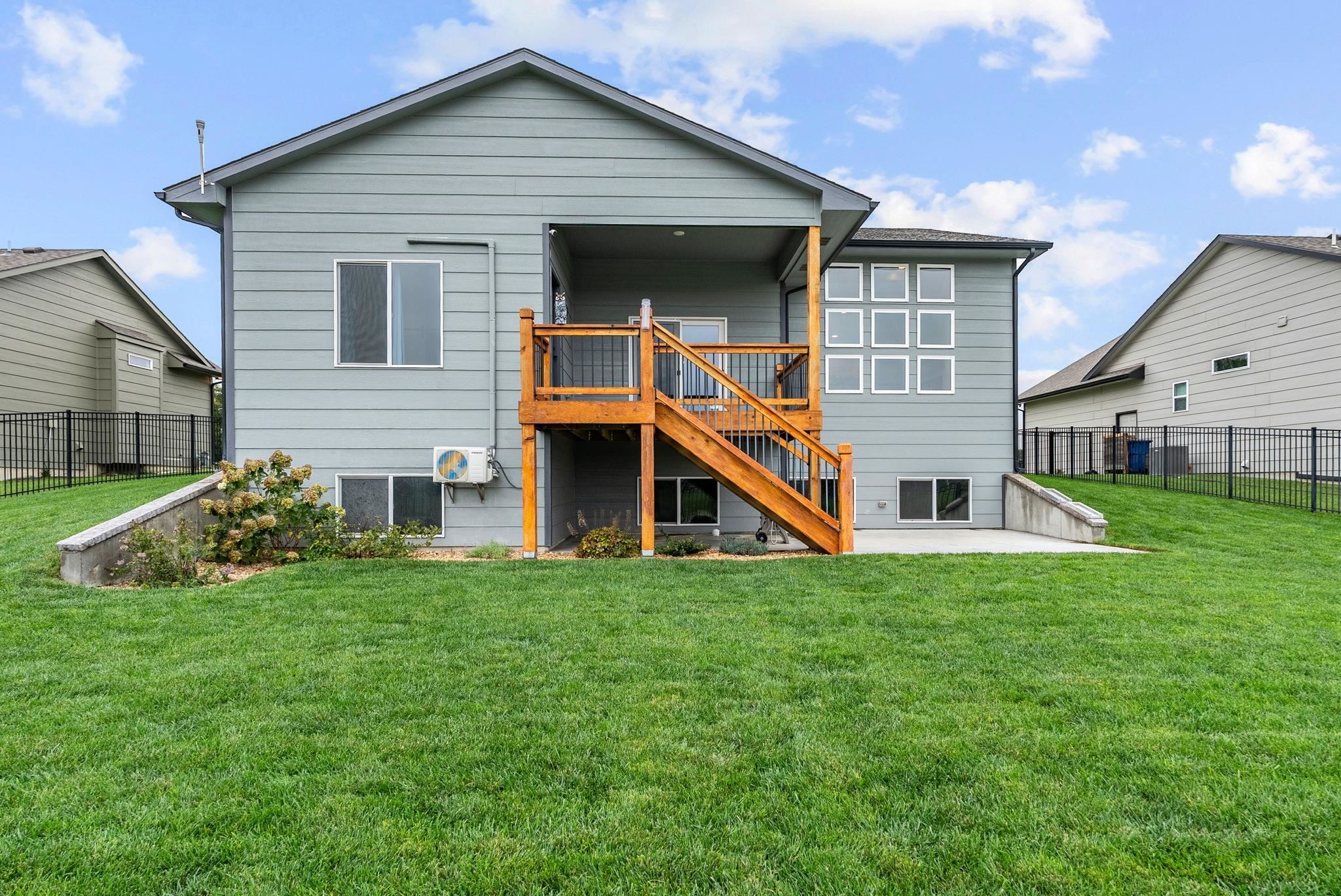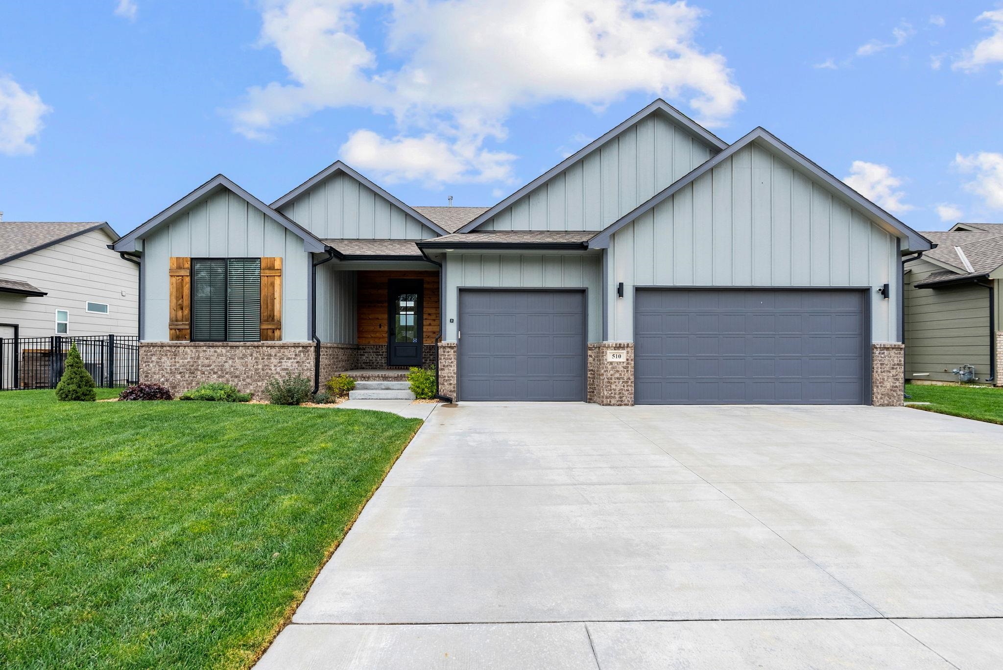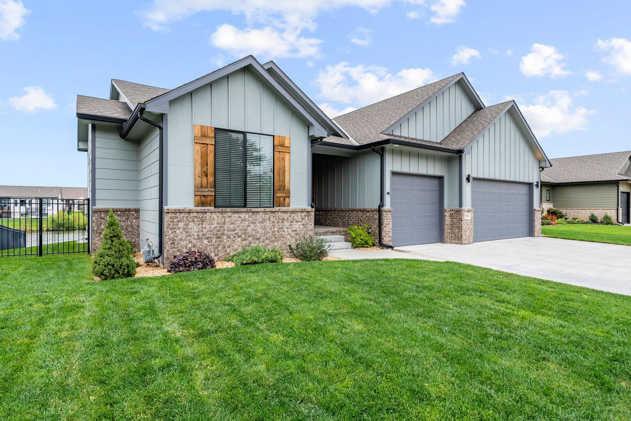 - Description: Beautiful Pond Lot Home in the Goddard School District! Welcome to this stunning 3-bedroom, 2-bathroom home offering modern design and peaceful waterfront living! From the moment you arrive, you’ll love the home’s charming curb appeal featuring a large three-car garage, beautiful board and batten siding, and rustic wood accents. Step inside to find an open, airy layout with stylish finishes throughout. The spacious living area flows seamlessly into the dining and kitchen spaces—perfect for entertaining or relaxing with family. Cozy up by the electric fireplace that has features to set the perfect tone. Enjoy cooking in the well-designed kitchen with plenty of cabinetry, unique pantry, large island, custom hood and views of the water. The primary suite offers a private retreat with a large tile shower, double vanities, private water closet and walk-in closet that connects to the laundry room. Outside, enjoy evenings on your covered deck, on the concrete patio overlooking the pond, with wrought iron fencing. The property’s waterfront location offers peaceful views year-round and convenient neighborhood amenities. Located in the desirable Goddard School District in the Wichita city limits and close to shopping, dining, and major highways, this home blends suburban comfort with a touch of luxury. Don’t miss your chance to make this water front beauty your next home! Some information is estimated and cannot be guaranteed. Show all description