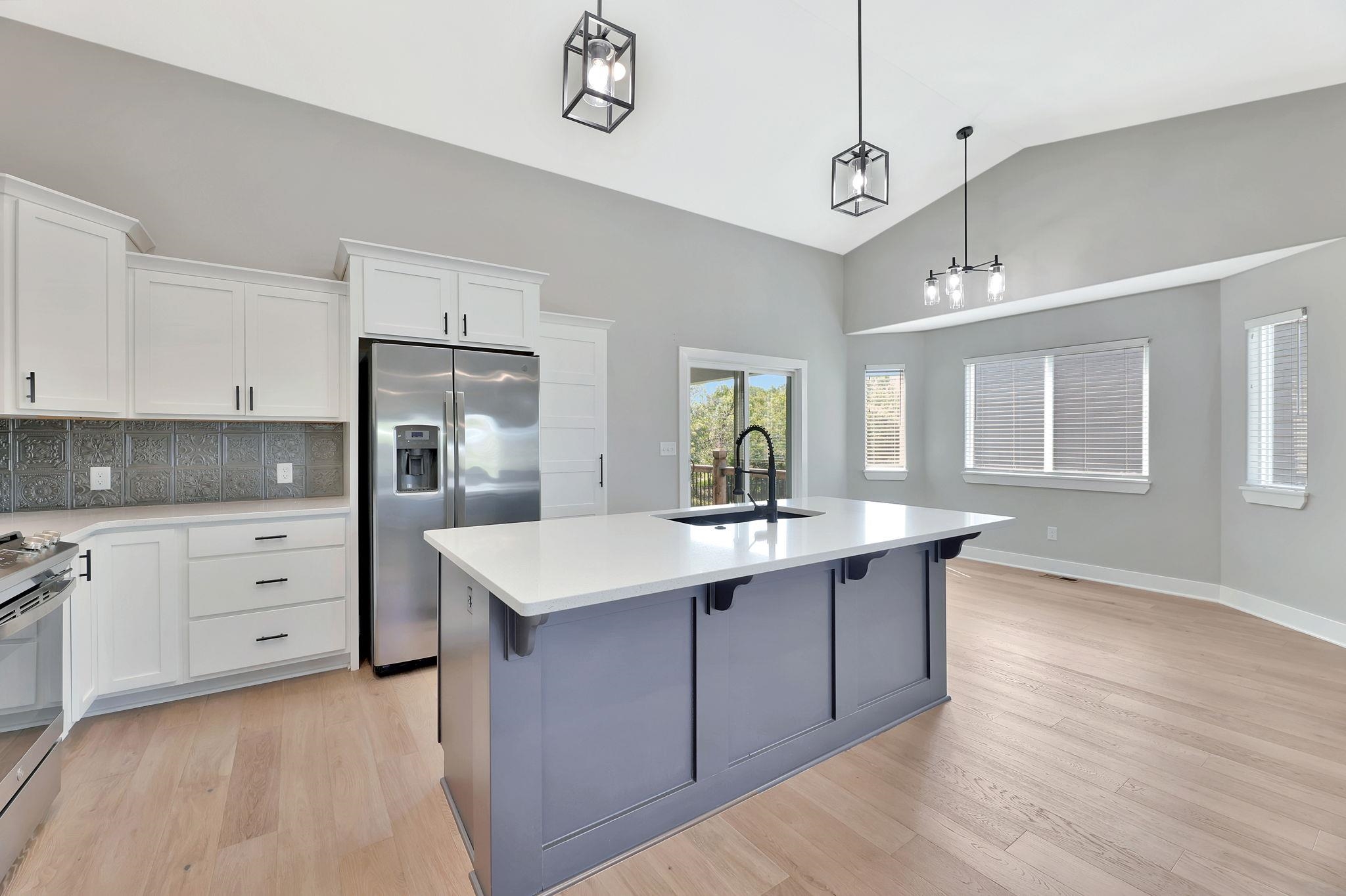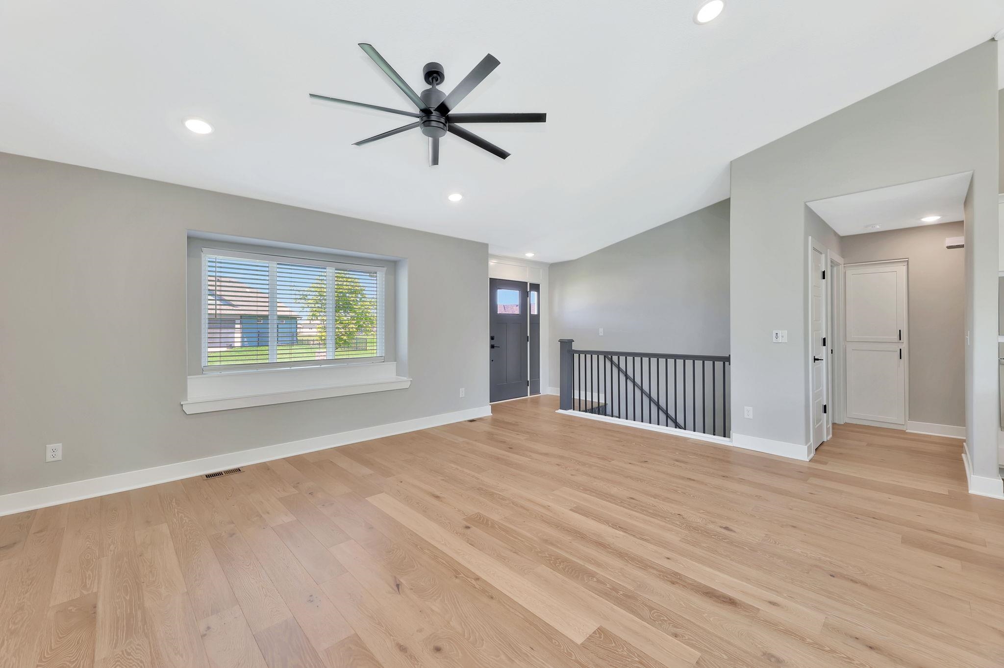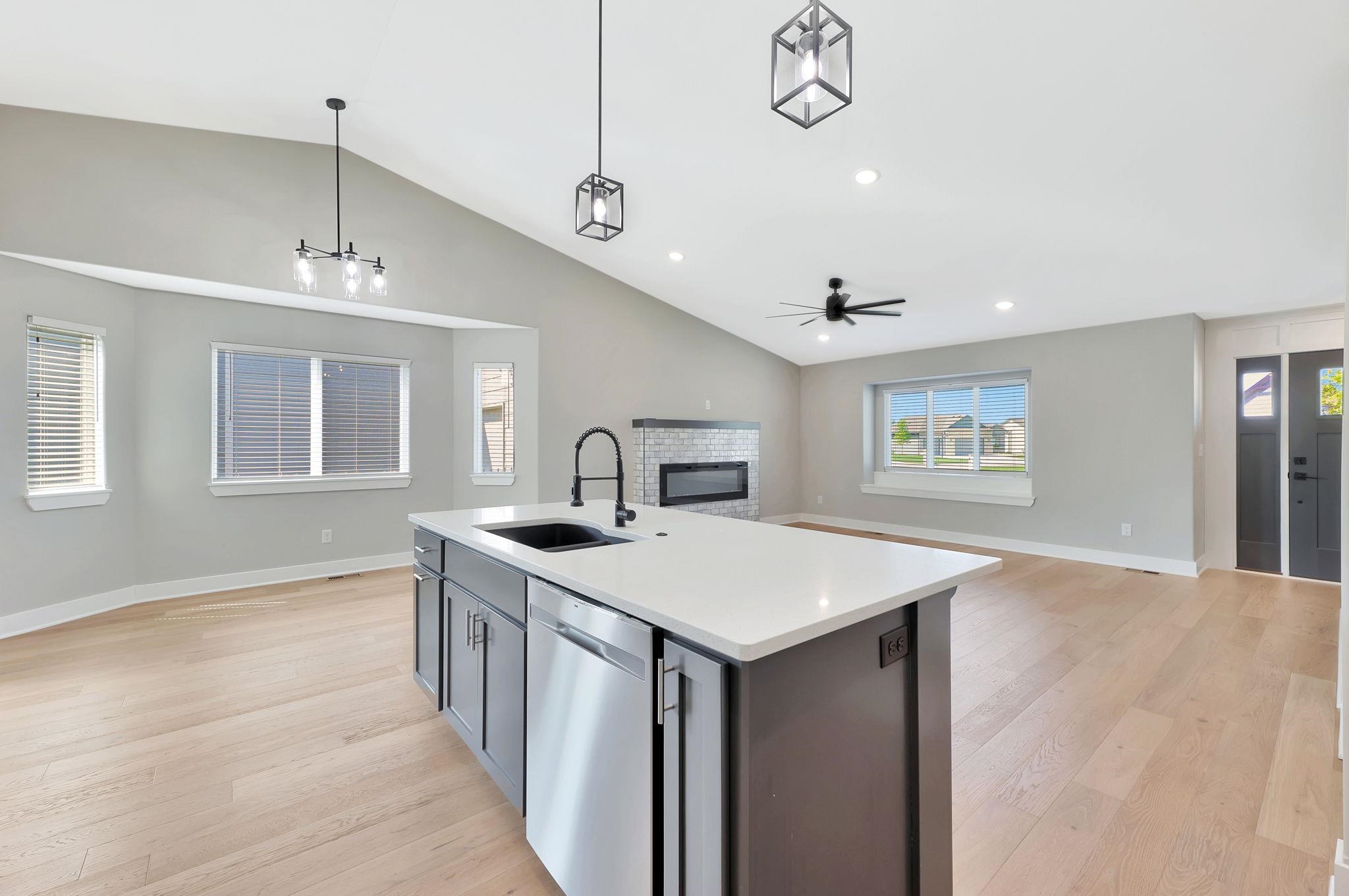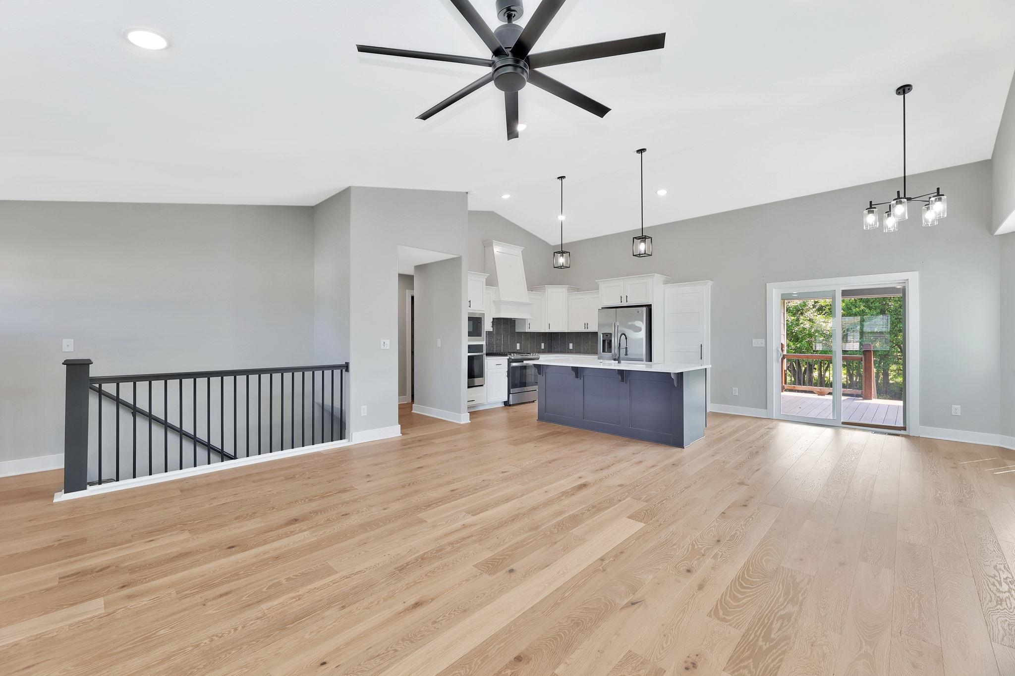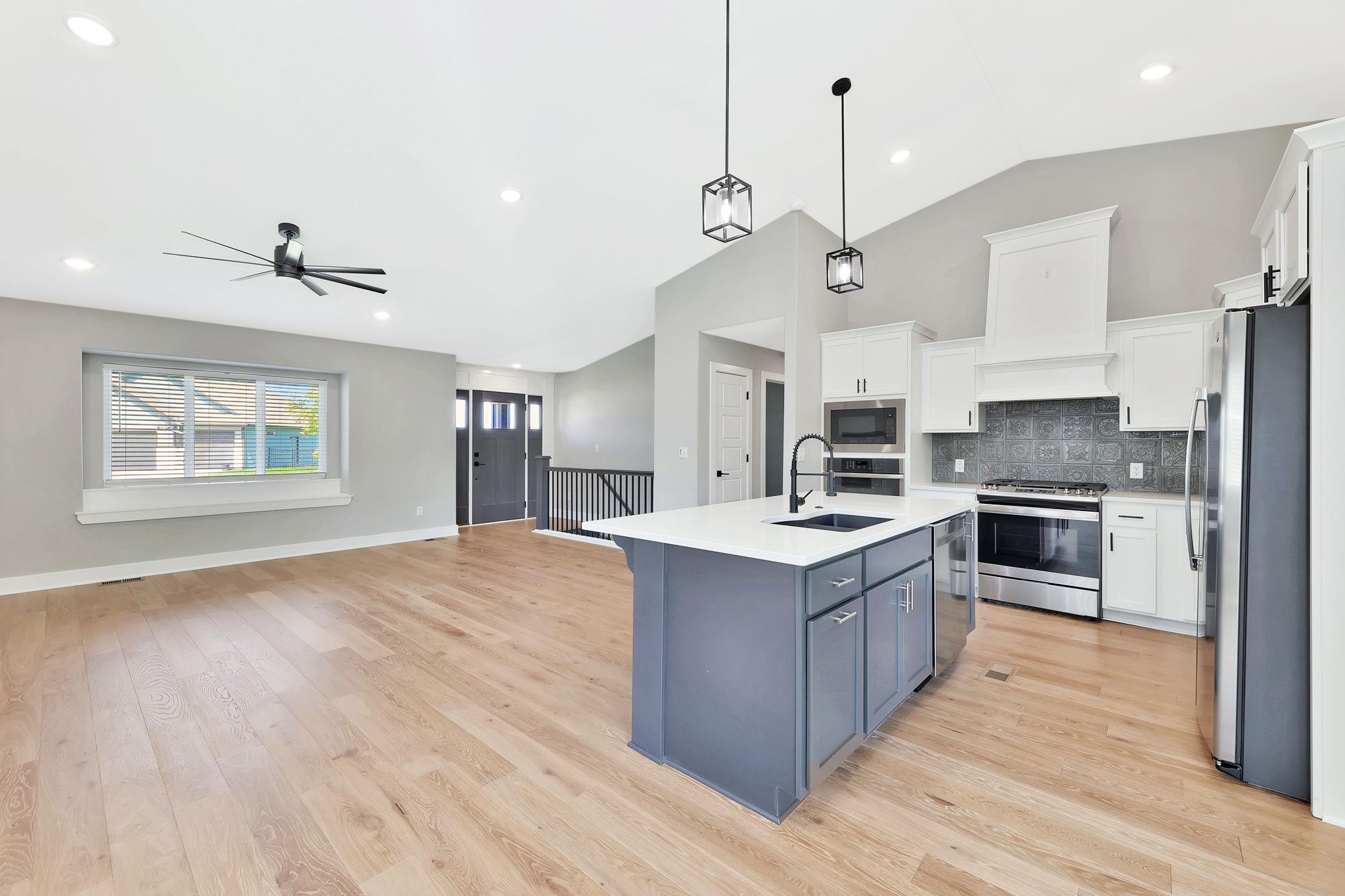 - Description: Come home to your own oasis. This home has something for everyone in the family. Start with your open concept living that includes LVP flooring, electric fireplace, large island with granite countertops, walk-in hidden pantry, and two ovens for all your holiday celebrations. Head on over to the master bedroom with vaulted ceilings, large windows overlooking you beautiful backyard with no home behind you for the ultimate privacy. Enjoy your custom tile, corner shower with built-in bench and two shower heads. Now lets go down stairs and enjoy your large family room with wet bar and sliding door to your backyard. There is built in shelving in the storage room to keep you organized. Two bedrooms and a bathroom complete the basement. For the car lovers or wood workers, enjoy the oversized tandem garage with built-in shelves and work bench. Now for the best part, the backyard. Enjoy your three entertainment areas from the covered deck, covered patio, or you large patio with outdoor stone fireplace. The well and sprinkler system keep this yard green and plush. Lastly, the high efficiency HVAC system and tankless water heater, will help keep your utilities low. Call today for your private showing. This is a must see and won't last long. Show all description