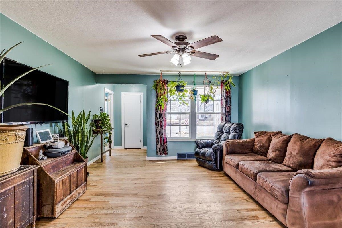 - Description: **Brand NEW roof at closing***Discover this delightful 3-bedroom, 2-bathroom home nestled in the quaint town of Mulvane. This property features a thoughtfully designed split primary bedroom with its own private bathroom, ensuring comfort and privacy. Each spacious bedroom boasts generous closets, while the newer bathroom vanity and real oak wood flooring add a modern touch. The home includes a large separate laundry room with ample storage, perfect for keeping everything organized. For added peace of mind, there’s an underground 8x8 concrete room that serves as both a shelter and extra storage space. All appliances, which are 4 years old or less, will remain with the home, along with a water softener and osmosis filtration system for your convenience. Garden enthusiasts will appreciate the beautifully landscaped yard, featuring hyacinth, hostas, coral bells, and lilies, along with a variety of fruit-bearing plants/vines including peach, grape, elderberry, pluot, and rhubarb. While the garage is labeled as one car, it is enormously oversized, so it offers plenty of room for hobbies and projects. Plus, a BRAND-NEW roof will be installed after a successful closing, ensuring peace of mind for years to come. Don’t miss out on this wonderful opportunity to own a charming home in Mulvane! Show all description