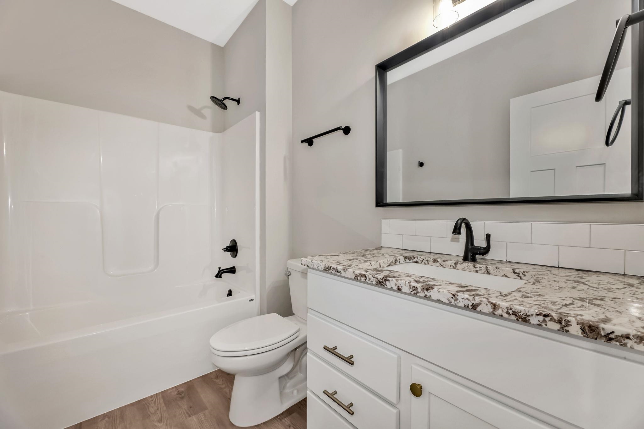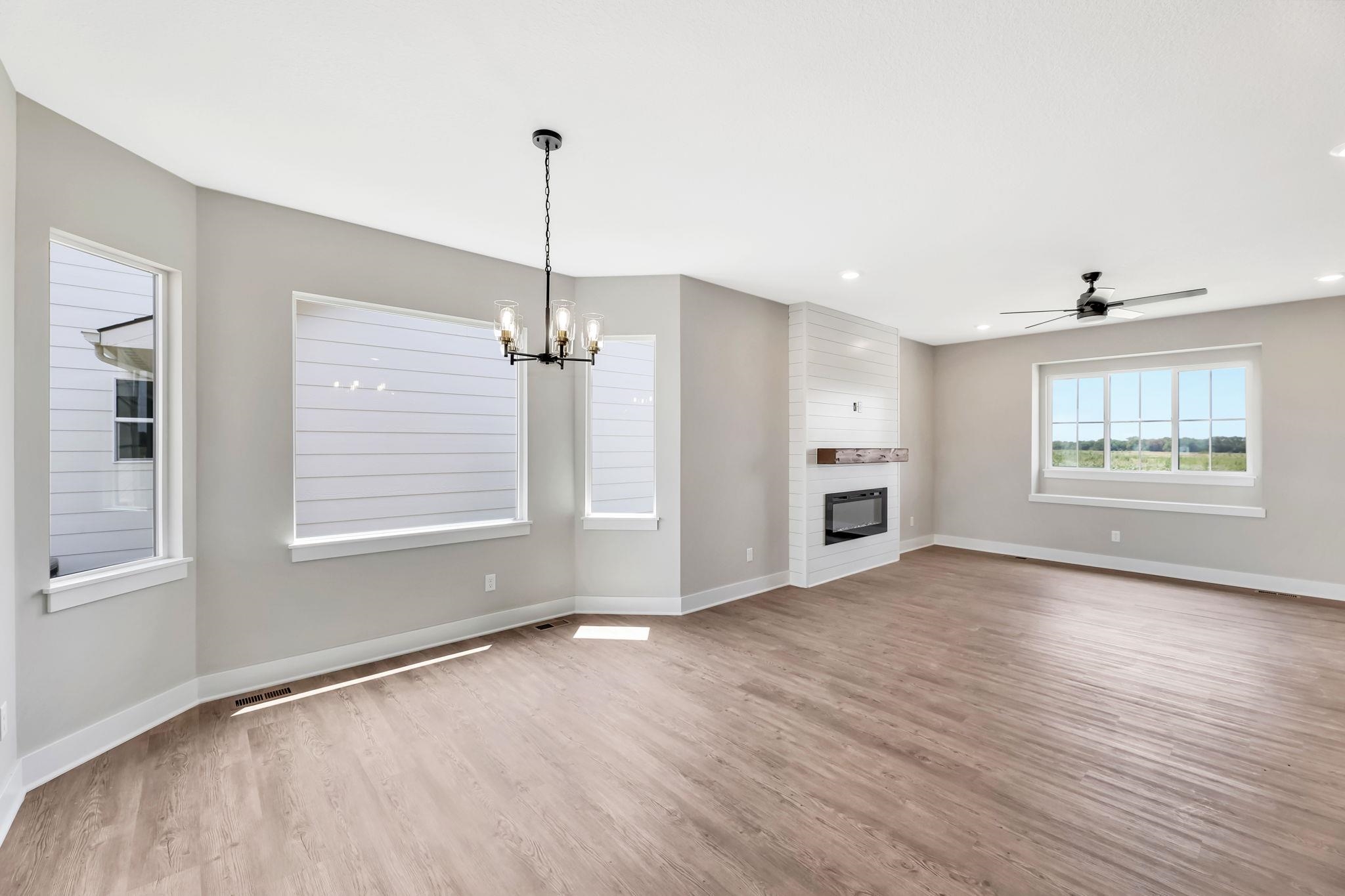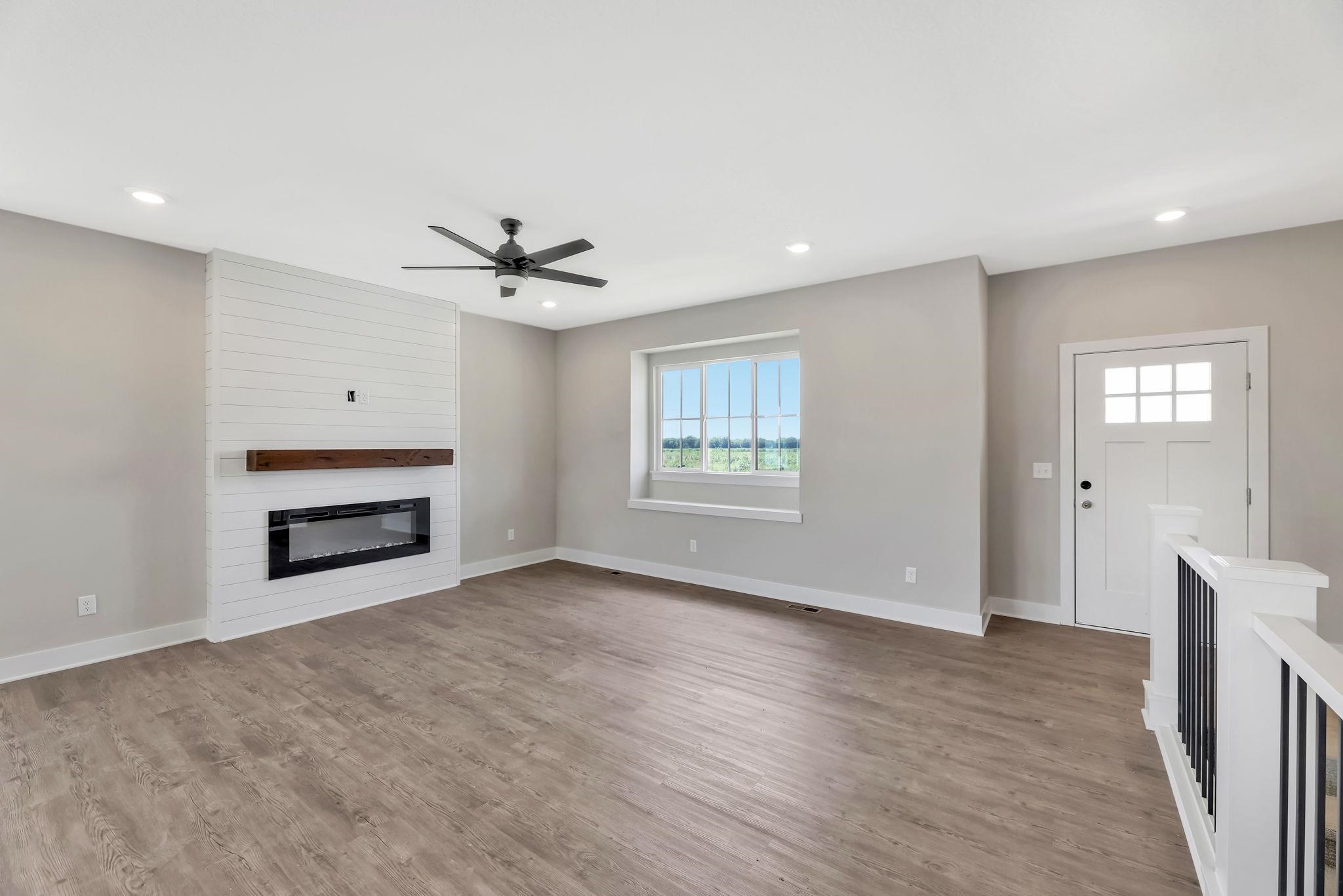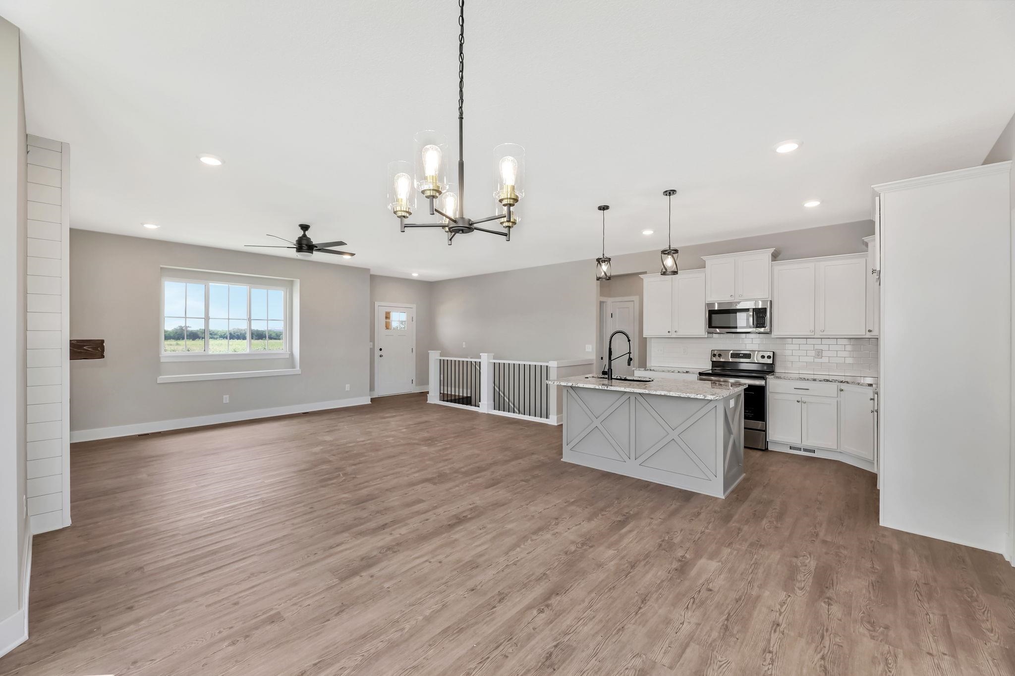 - Description: You will love this plan located in Trinity Point 2nd Addition, just south on Hoover from MacArthur! 2442 sq. ft. 4 bedrooms, 3 baths with a 3-car tandem garage. Interior features include luxury vinyl tile flooring, 50 inch electric fireplace in liv.rm. with shiplap surround, white trim and doors, 9 ft. ceilings with vaulted in the master, dining and living room. Kitchen features hidden walk-in pantry, eating island and stainless steel dishwasher, microwave and stove. 12x12 covered wood deck off dining room. Master suite includes a 5 ft. subway tiled shower. Granite countertops in kitchen and baths. Fully finished basement includes 2 additional bedrooms, 1 bath and a family room. Enjoy the landscaped yard with sprinkler system. Specials are only $135 per month. Future HOA to be determined. Listing agent related to builder. Show all description