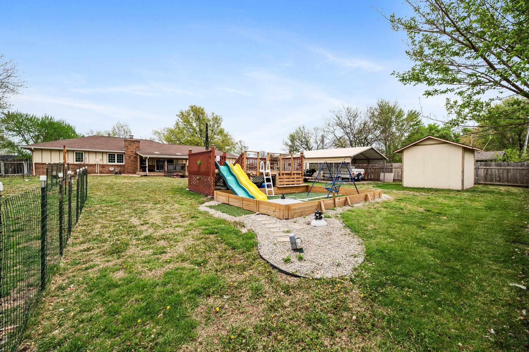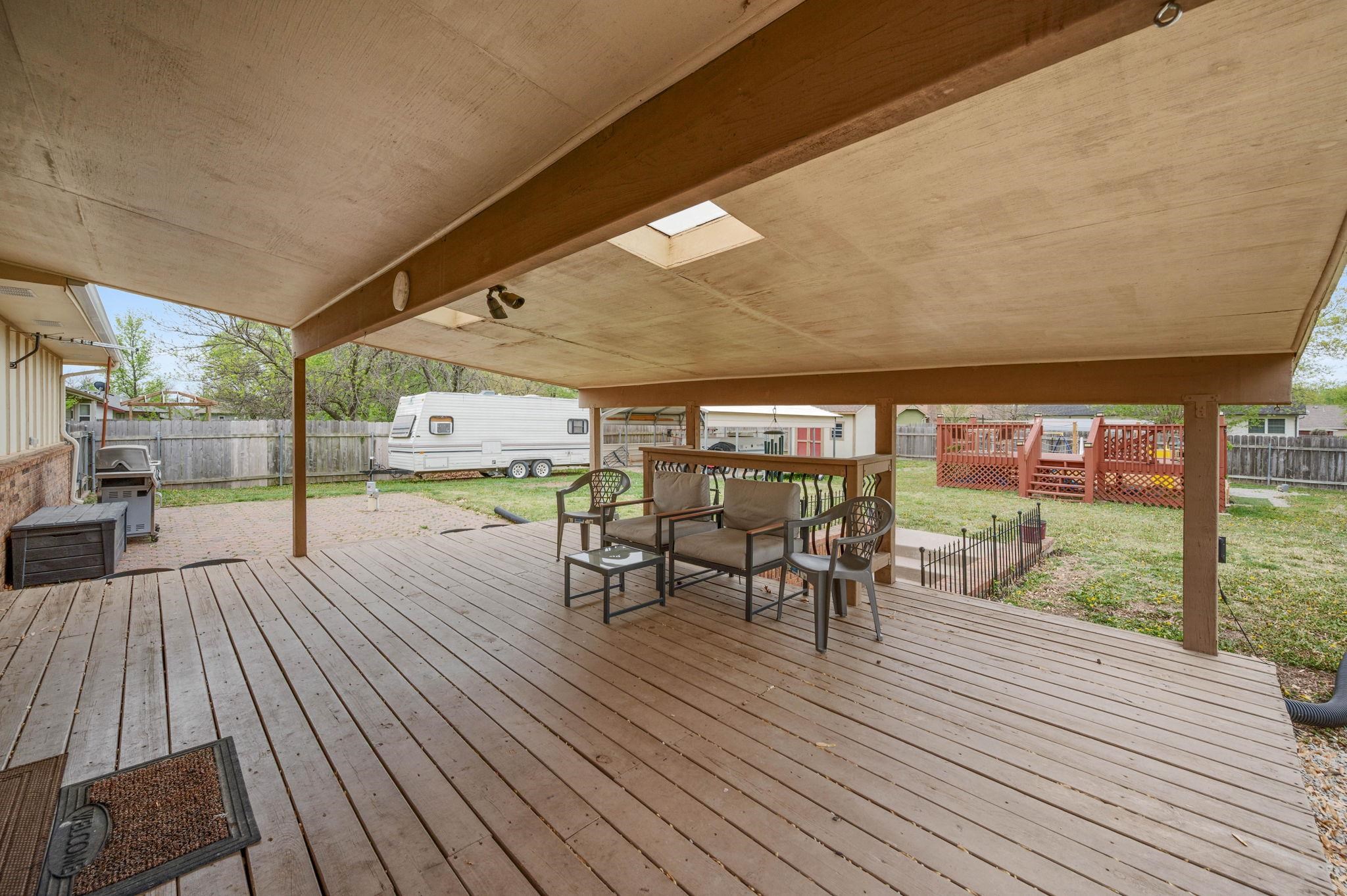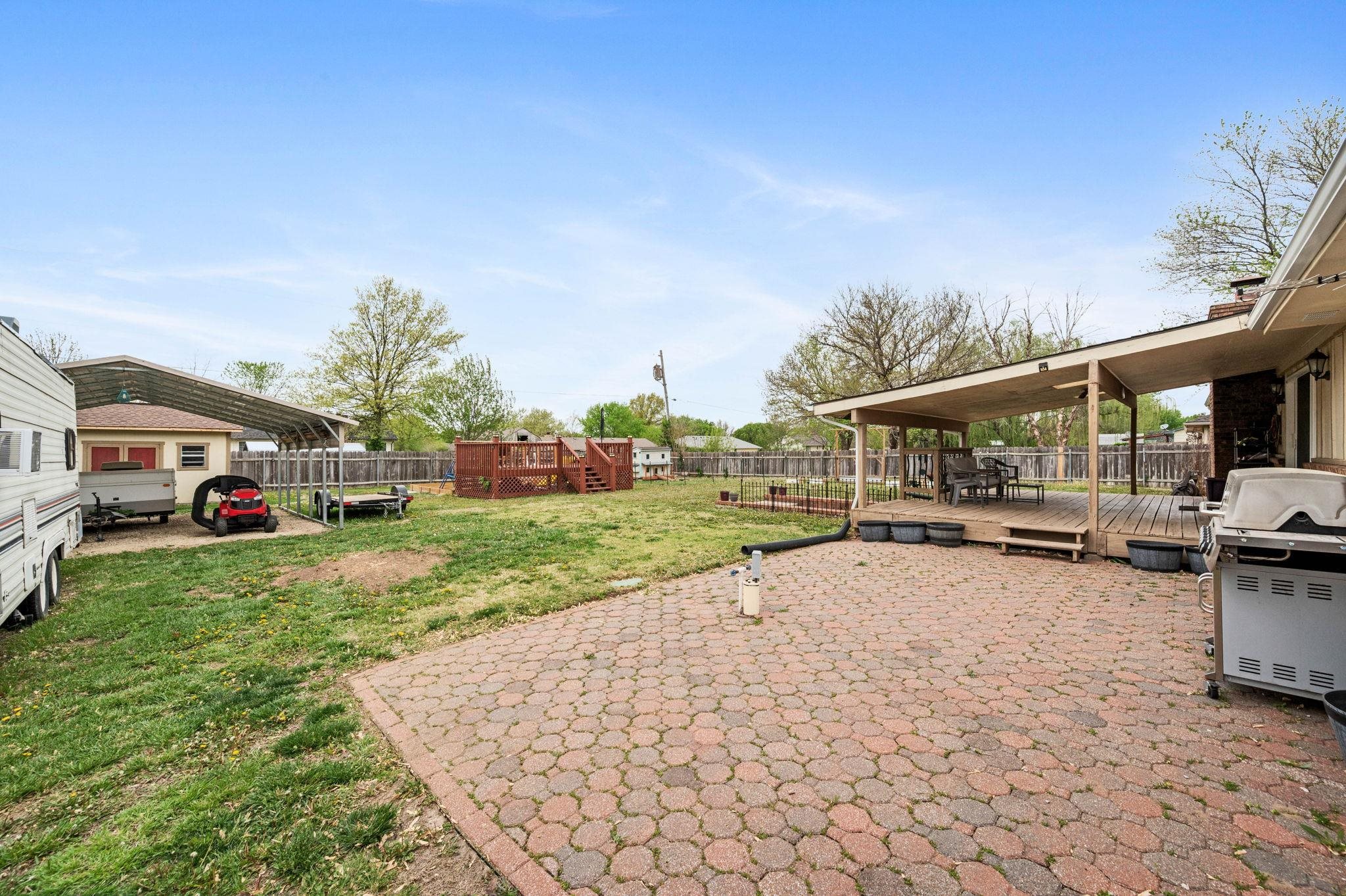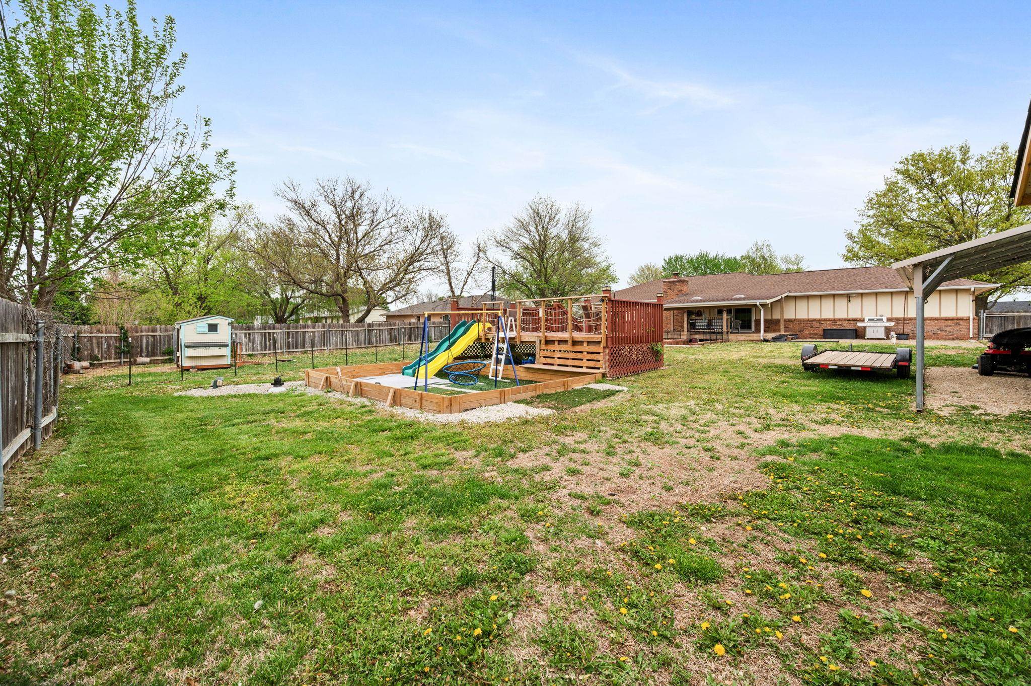 - Description: Welcome to this beautifully upgraded home in Rose Hill! Located near the park in a picturesque neighborhood with mature trees. This 4 bedroom, 3 bathroom home has several unique features including a large yard with an oversized carport, RV parking, walk out basement, updated windows and stunning wet bar in the living room. Entering the home you will notice the upgraded kitchen with granite countertops, huge pantry, eating bar and stainless steel appliances. The dining room opens to the living room with the newly added wet bar. The primary bedroom includes a walk in closet and attached bathroom. There are two additional spacious bedrooms on the main floor and a recently updated hall bathroom. There are laundry hook ups on the main floor and in the basement. The walk out basement features a cozy brick fireplace, 4th bedroom with attached bathroom and plenty of unfinished space for storage. The fenced yard is 0.40 acre with a storage shed, covered deck, 26x21 carport, irrigation well, sprinkler system and additional deck with a play area for the kids. Don't miss the attached garage that has been turned into a man cave with an epoxy floor! Show all description