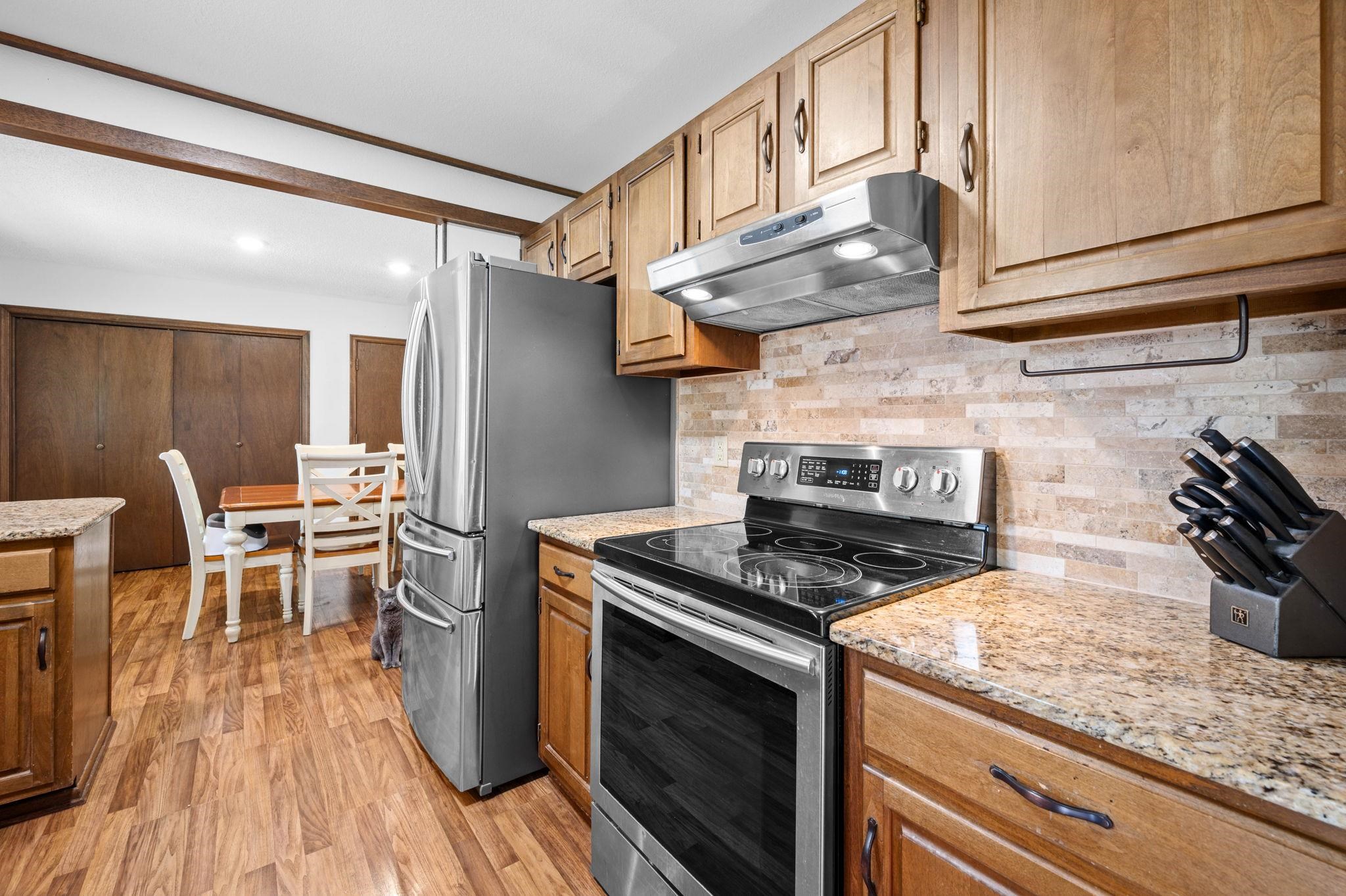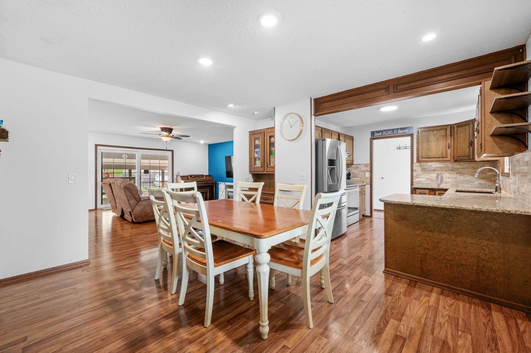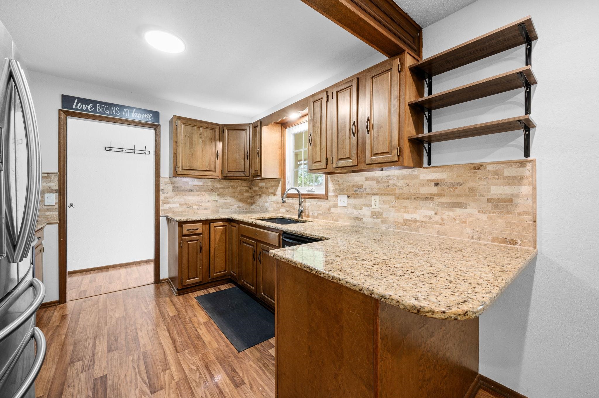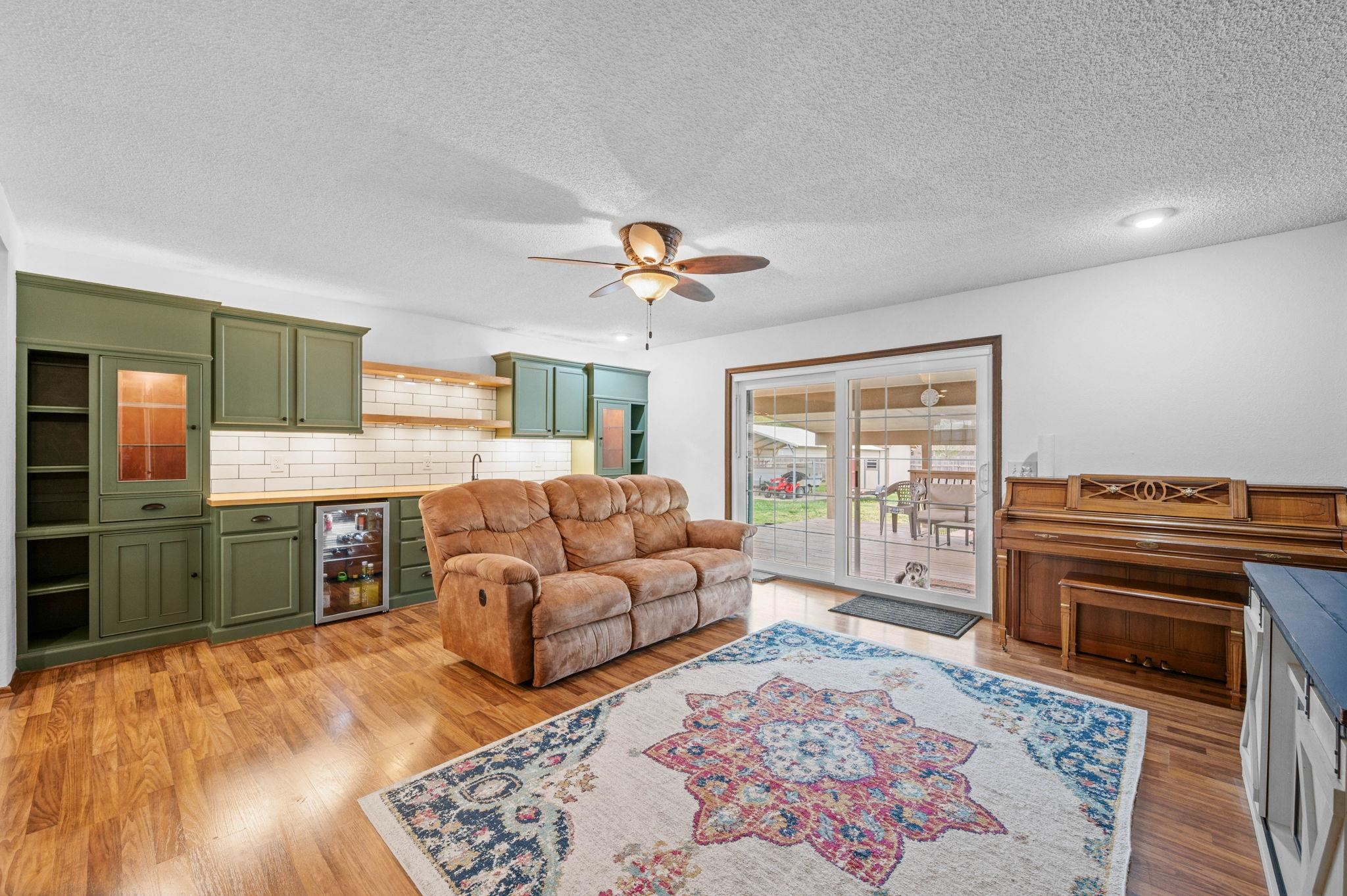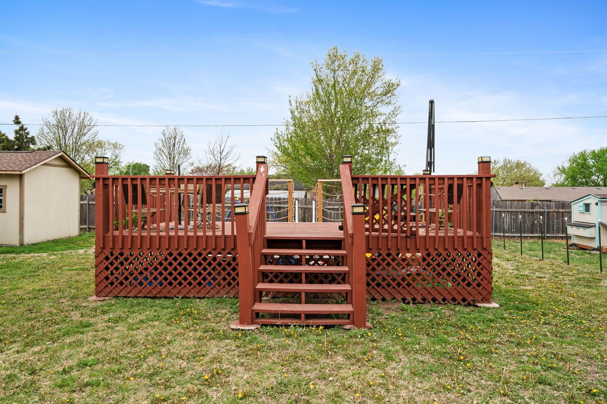 - Description: Welcome to this beautifully upgraded home in Rose Hill! Located near the park in a picturesque neighborhood with mature trees. This 4 bedroom, 3 bathroom home has several unique features including a large yard with an oversized carport, RV parking, walk out basement, updated windows and stunning wet bar in the living room. Entering the home you will notice the upgraded kitchen with granite countertops, huge pantry, eating bar and stainless steel appliances. The dining room opens to the living room with the newly added wet bar. The primary bedroom includes a walk in closet and attached bathroom. There are two additional spacious bedrooms on the main floor and a recently updated hall bathroom. There are laundry hook ups on the main floor and in the basement. The walk out basement features a cozy brick fireplace, 4th bedroom with attached bathroom and plenty of unfinished space for storage. The fenced yard is 0.40 acre with a storage shed, covered deck, 26x21 carport, irrigation well, sprinkler system and additional deck with a play area for the kids. Don't miss the attached garage that has been turned into a man cave with an epoxy floor! Show all description