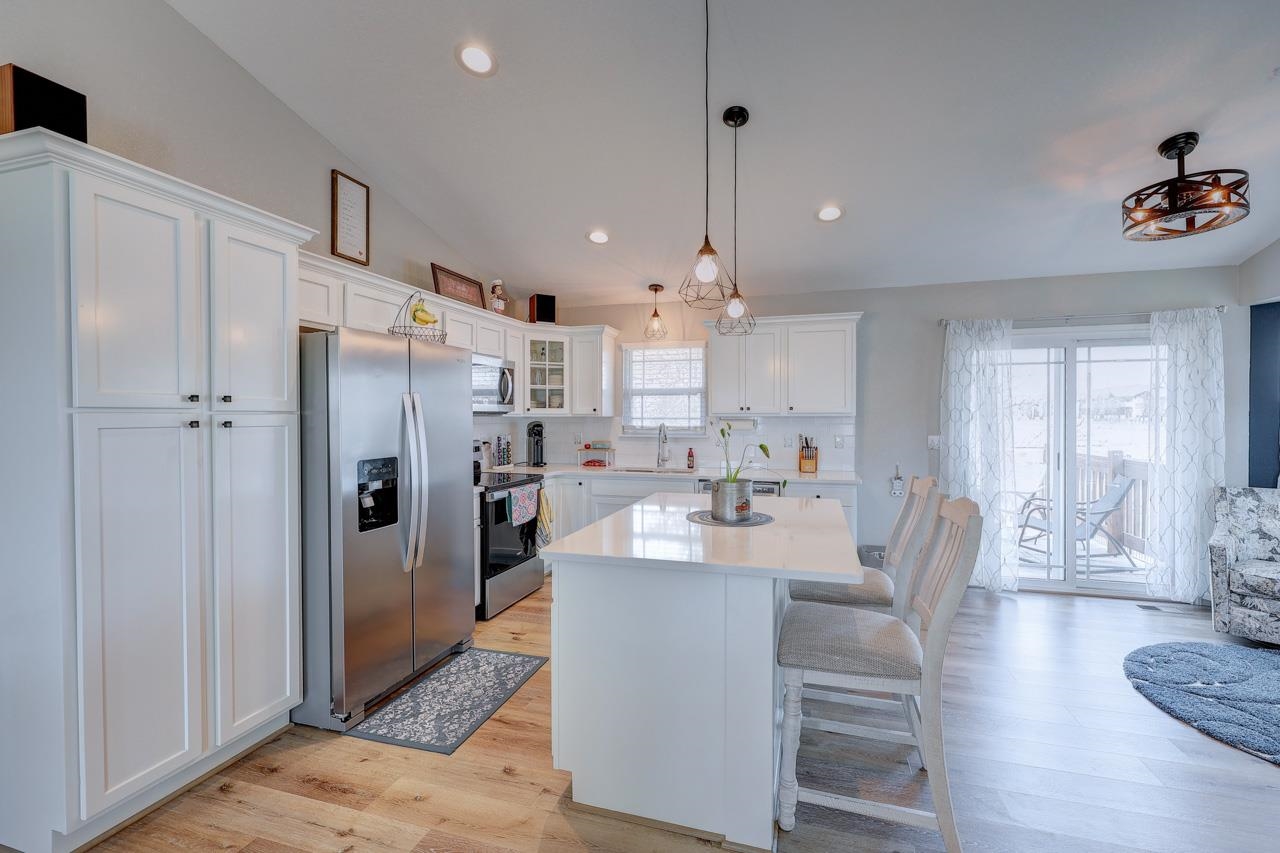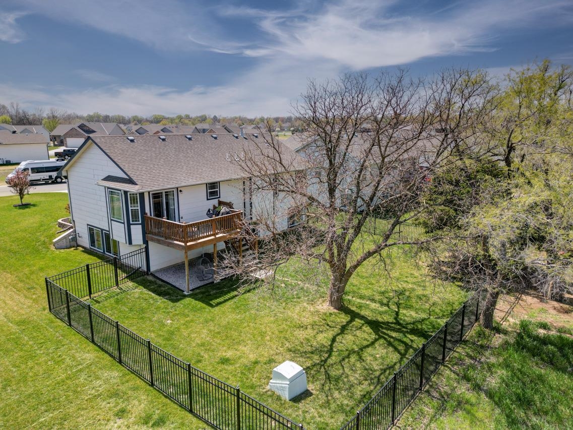 - Description: Turnkey Home in Sought-After Reflection Lake – Andover, KS Welcome to this beautifully arranged 4-bedroom, 3-bathroom home nestled in the desirable Reflection Lake subdivision. Enjoy an open-concept main floor ideal for entertaining, with modern finishes and a seamless flow between the kitchen, dining, and living spaces. Step out onto the raised deck and relax in the fenced backyard—perfect for gatherings or quiet evenings. In the primary bedroom you will find a generous sized primary bath with a walk-in closet. Boasting an abundance of natural light in every room, this residence offers a bright, airy feel throughout. The fully finished basement includes full-sized view-out windows in both bedrooms and the spacious living area—perfect for maximizing light and livability. All appliances stay, making this home truly move-in ready. Don’t miss your chance to own this turnkey gem in one of Andover’s most popular neighborhoods! Show all description
