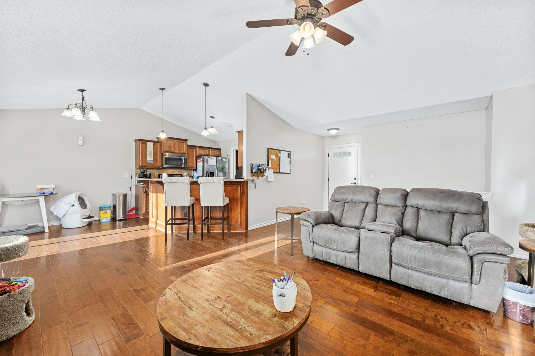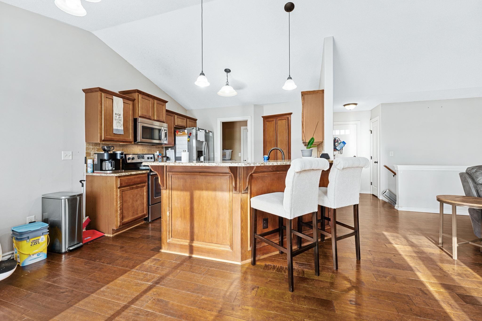 - Description: Welcome to your new home in Bel Aire! This charming home is situated on a large corner lot overlooking the neighborhood pond in the beautiful Rock Spring neighborhood. Inside this 9-year-old home you'll find an open floor plan featuring an open concept living room, kitchen and dining room, main floor laundry, three bedrooms including a large master bedroom with ensuite. The basement features two additional bedrooms, a large rec room, a wet bar, a large storage room, and a bathroom. Come see it today! Show all description