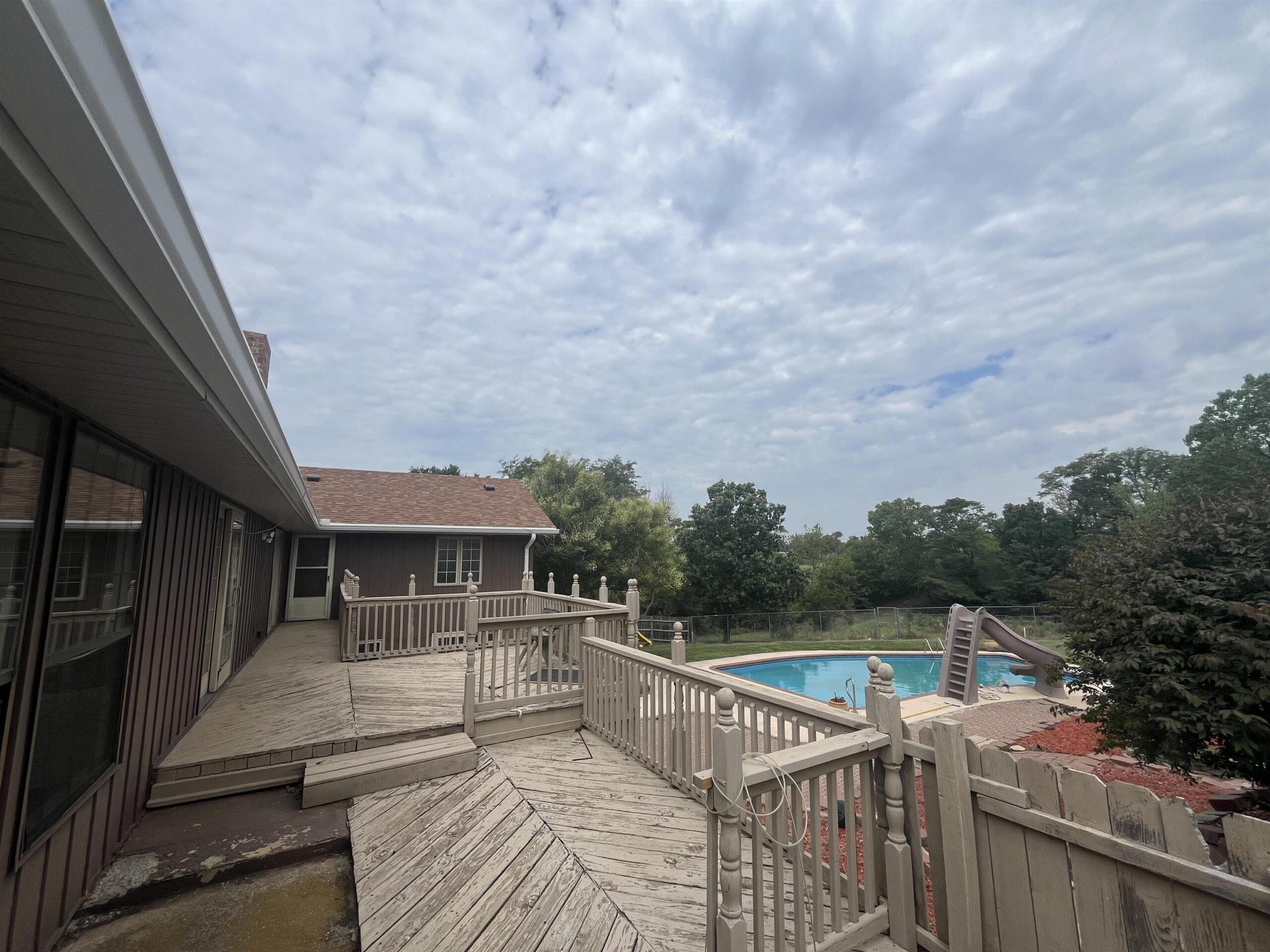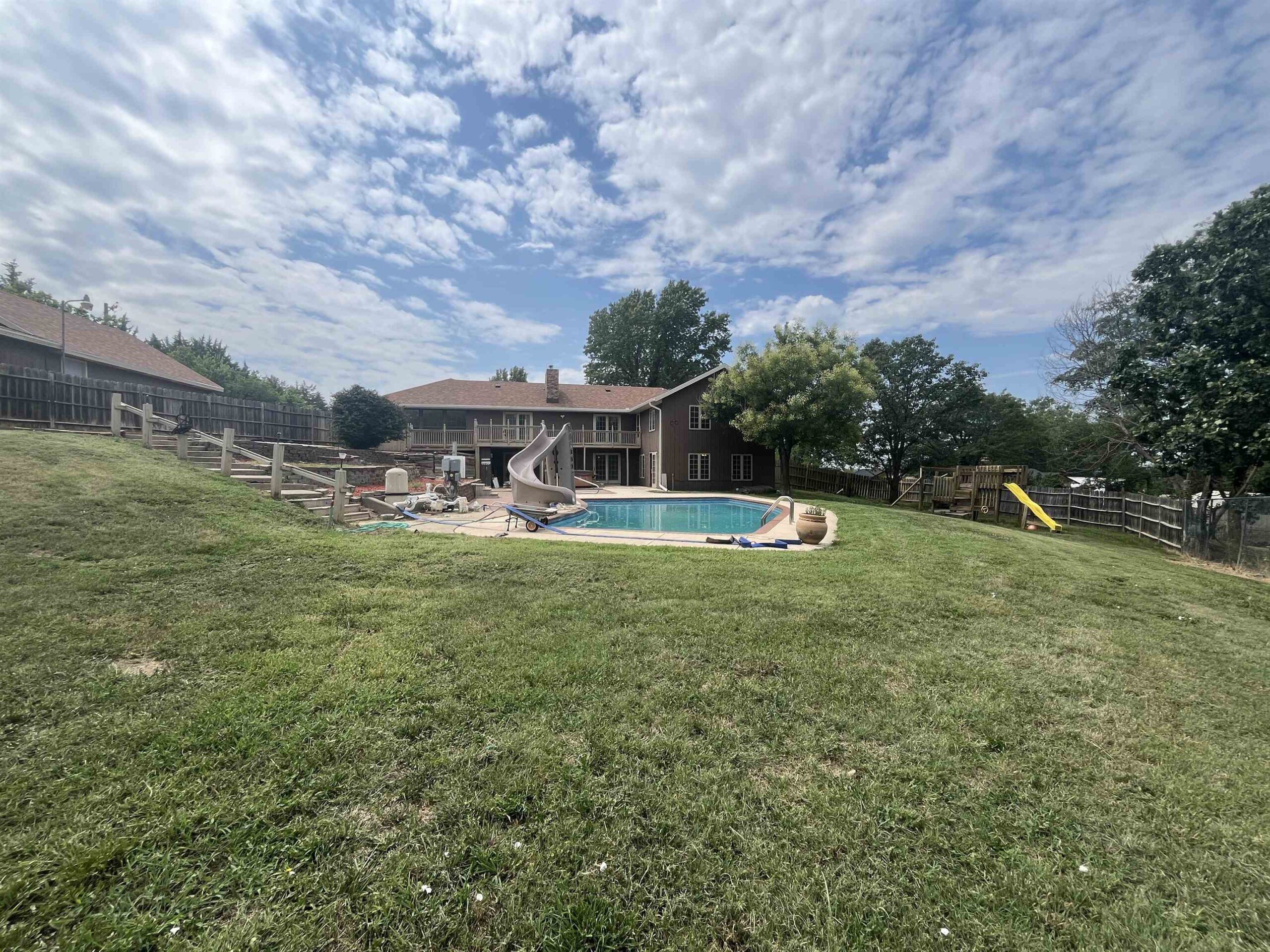 - Description: Sprawling Ranch on 4.85 Acres Just Minutes from Salina Enjoy the peace and space of rural living in this expansive 5-bedroom, 3-bath ranch-style home situated just off a blacktop road. Nestled on 4.85 acres, this property offers over 4, 282 square feet of living space, ideal for anyone seeking comfort, functionality, and room to grow—both inside and out. The heart of the home is a large kitchen equipped with an electric cooktop, double ovens, and abundant cabinet storage—perfect for daily meals or hosting gatherings. Choose to dine in the cozy kitchen area or enjoy more formal meals in the dedicated dining room. A sunroom flooded with natural light provides a serene space to relax and take in the surrounding country views. The main living room includes a wood-burning fireplace for added warmth and charm. Downstairs, the full walk-out basement features a spacious family room with a second wood-burning fireplace, a kitchenette, and an extra room ideal for a home gym, hobby area, or second living space—all with views of the backyard there are regular casement windows and patio sliding doors. Outdoors, a chain-link fenced yard surrounds the beautiful inground McKee pool, making it a great space for kids, pets, or relaxing summers. A paved patio and covered seating area under the deck provide ideal spots for entertaining or quiet evenings. For the hobbyist or DIY enthusiast, the property includes a 30 x 48 Morton building/workshop with 220V electrical service, and an additional 24 x 44 outbuilding on the north side—offering ample room for tools, equipment, or extra storage. The oversized 2-car garage provides even more space, and the tree-lined driveway adds a stunning touch to the spacious front yard. Utilities include rural water, septic system, and lagoon. The property is being sold in its current "Where Is, As Is" condition. Seller agrees to cover buyer’s closing costs. Show all description