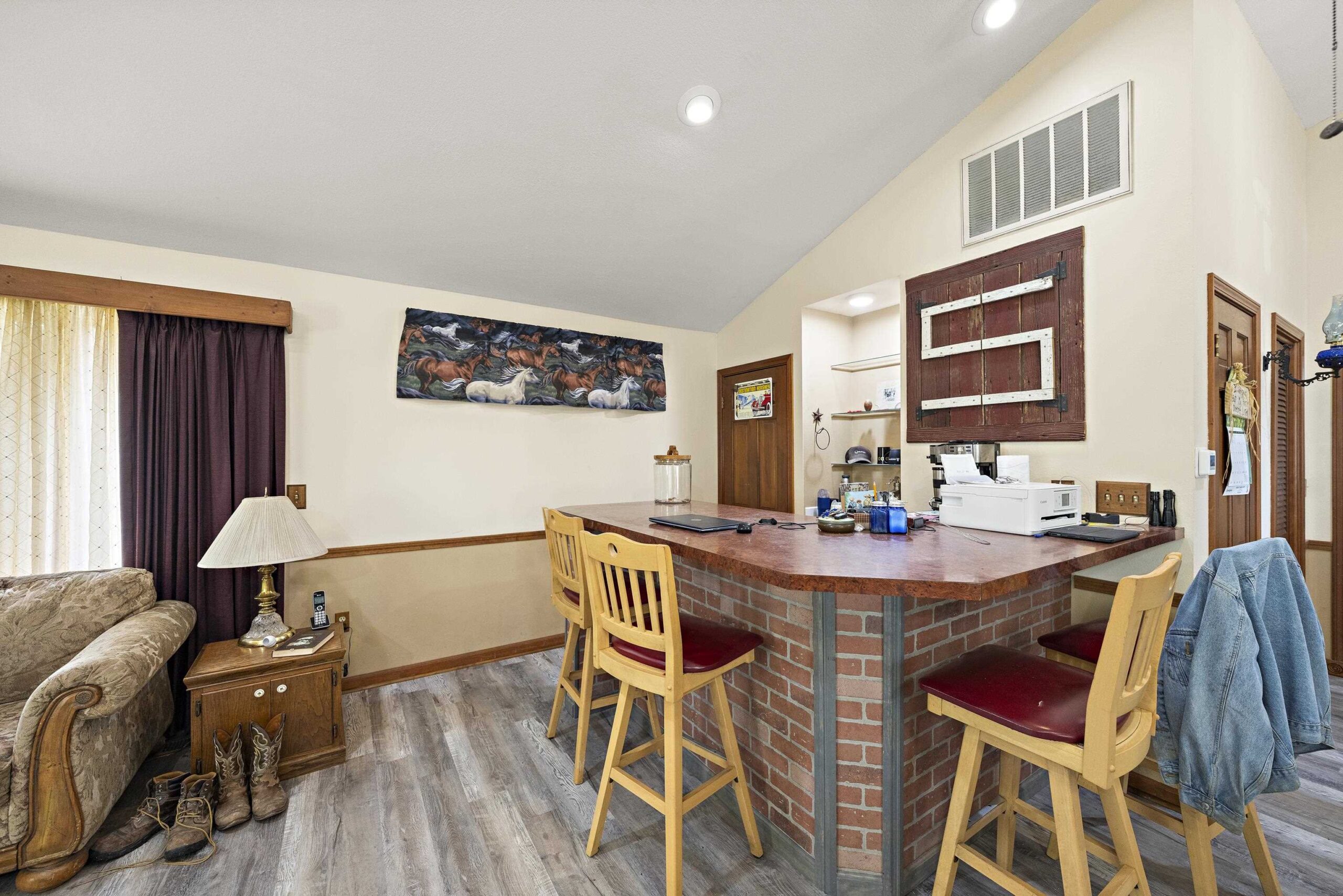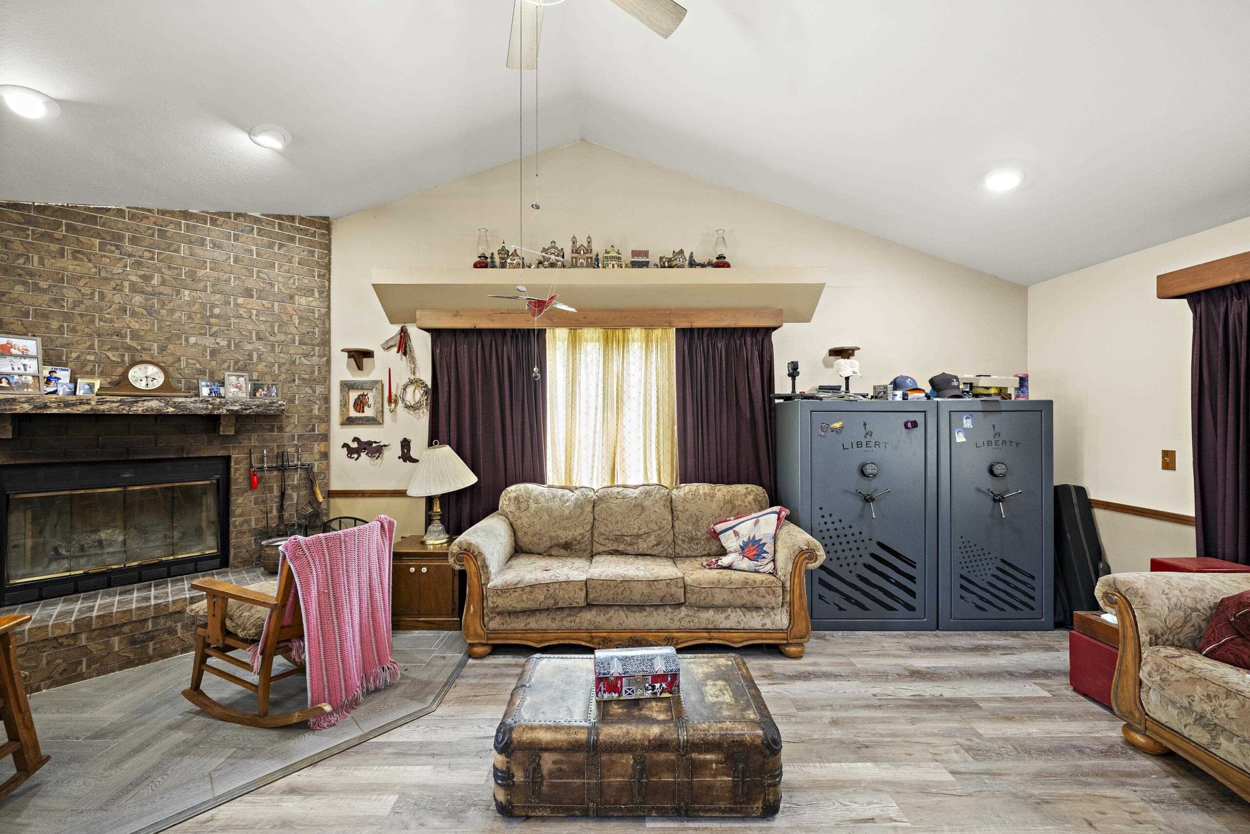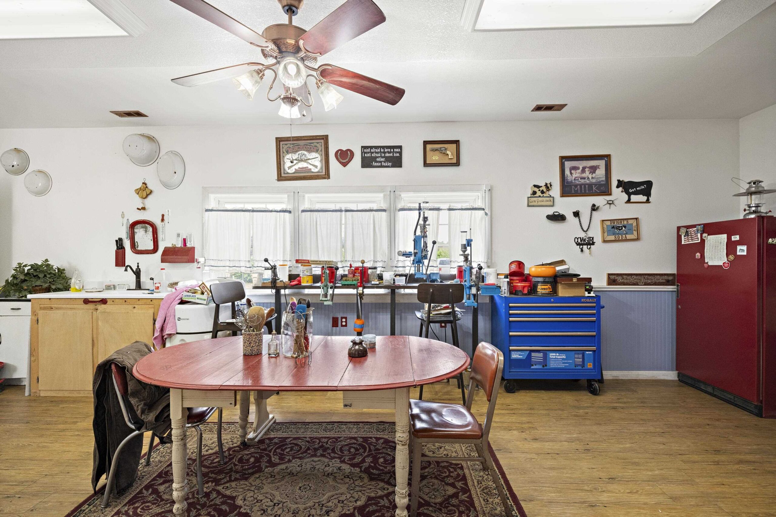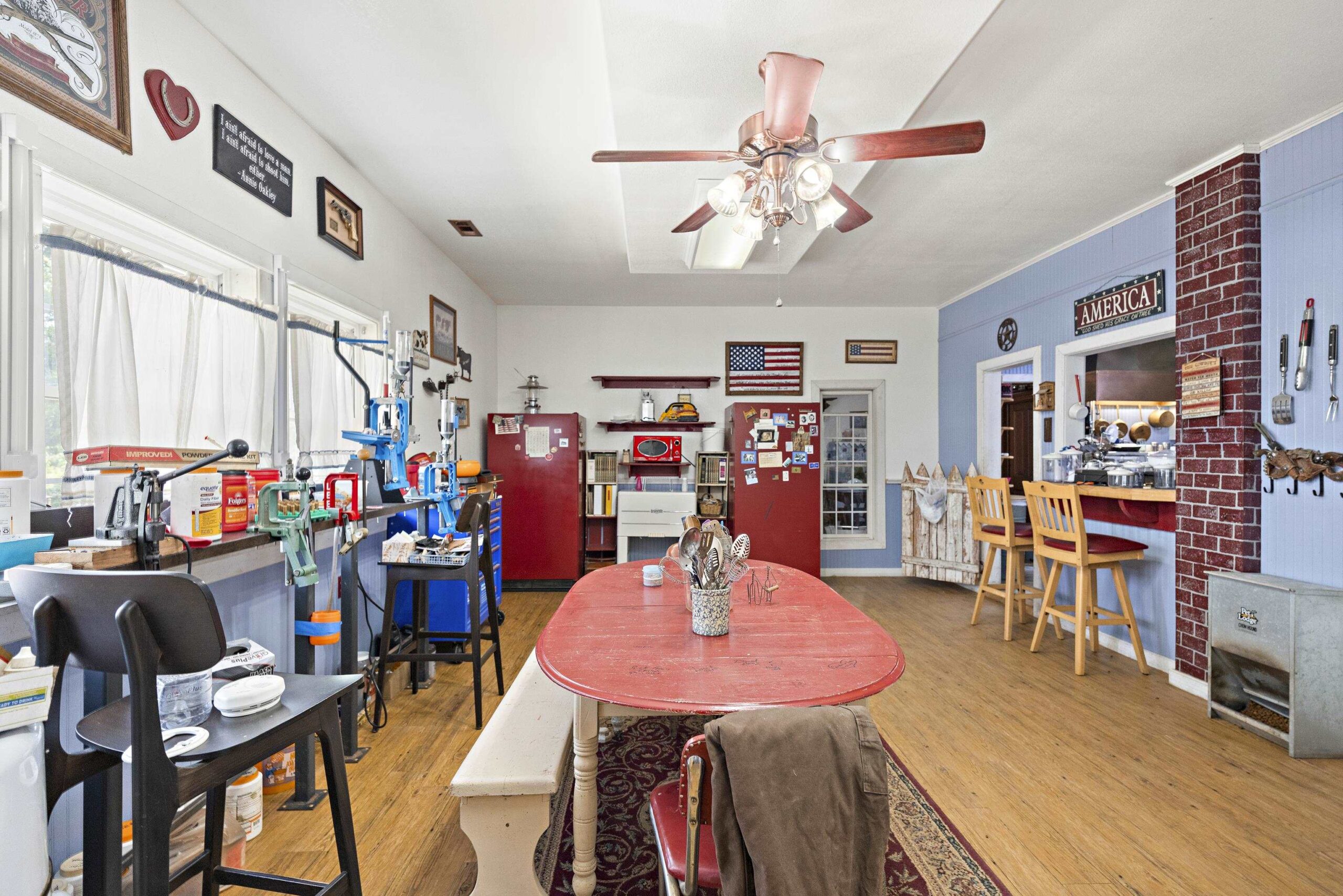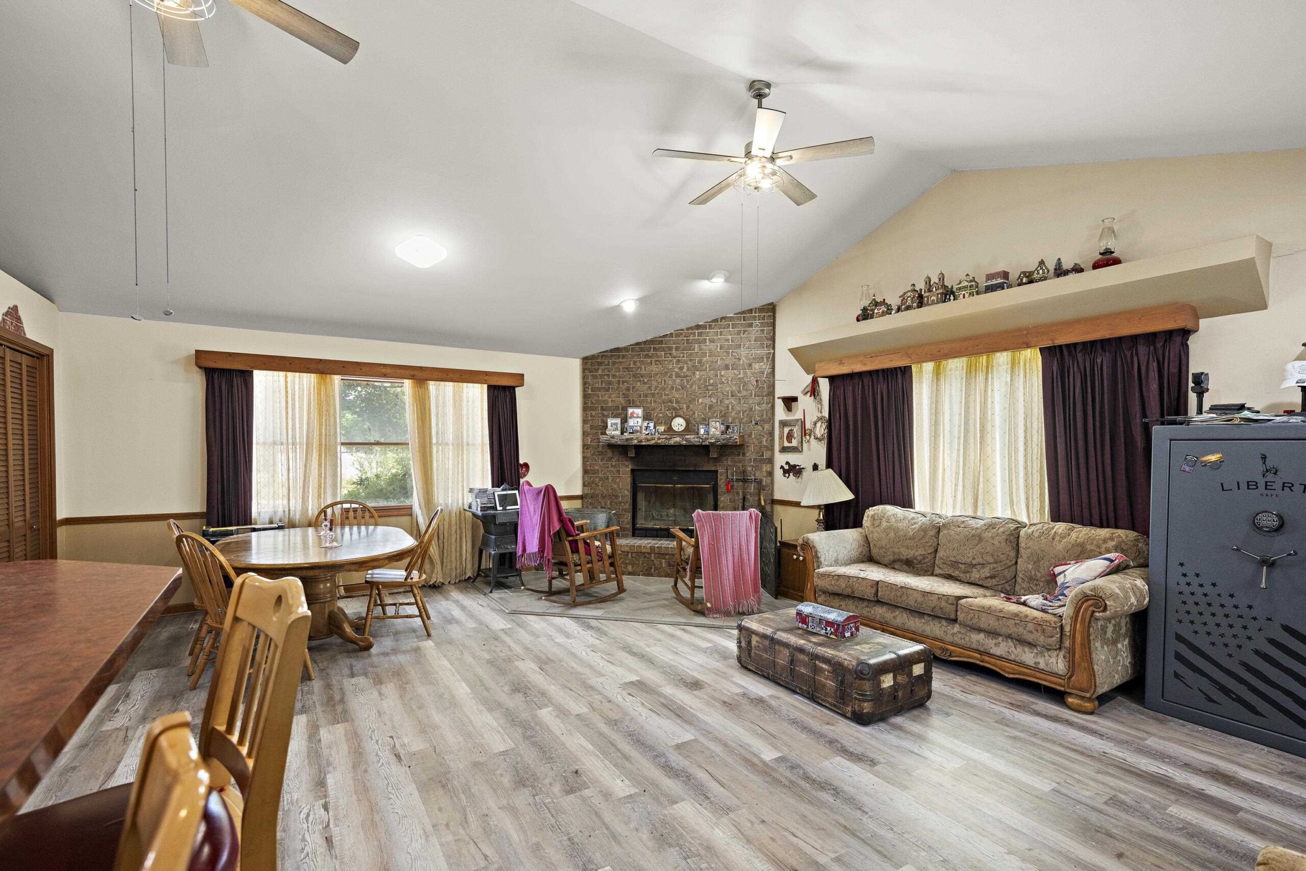 - Description: COUNTRY LIVING!!! This nearly 19 acre property has room for it all with three bedrooms, four full bathrooms and tons of outbuildings as well as fenced pasture this truly is your dream country home!!! As you pull off the blacktop road into the rounded driveway the unique features of this home stand out right away with updates of the vinyl siding, impact resistant roof and the added space! As you walk through the front door the focus on storage becomes apparent with the 2 closets right as you walk in! The vaulted ceilings, full wet bar, wood burning fireplace and the newer flooring create a large cozy area to entertain or gather together! Just off the MASSIVE living room is the formal dining room with original wood floors and space for plenty to sit. Right off the dining is the kitchen storage up to the tall ceilings! The HUGE rec room right off the kitchen is great for larger gatherings, hobbies or just more space! At the end of the rec room is a workshop leading outside and a full bathroom with a LARGE shower! Opposite of the rec room is the walk through pantry leading to the 2nd full bathroom attached to one of three bedrooms! This unique bathroom is all pink with a fantastic soaking tub! On the other side of the bedroom is another full bathroom with the laundry space!!! The second bedroom has a bonus space off it and TONS of space. The third bedroom also has an attached bathroom! Outside you'll find fenced pasture and multiple outbuildings! The country is calling you home! Show all description