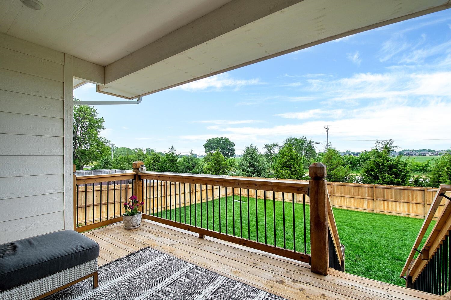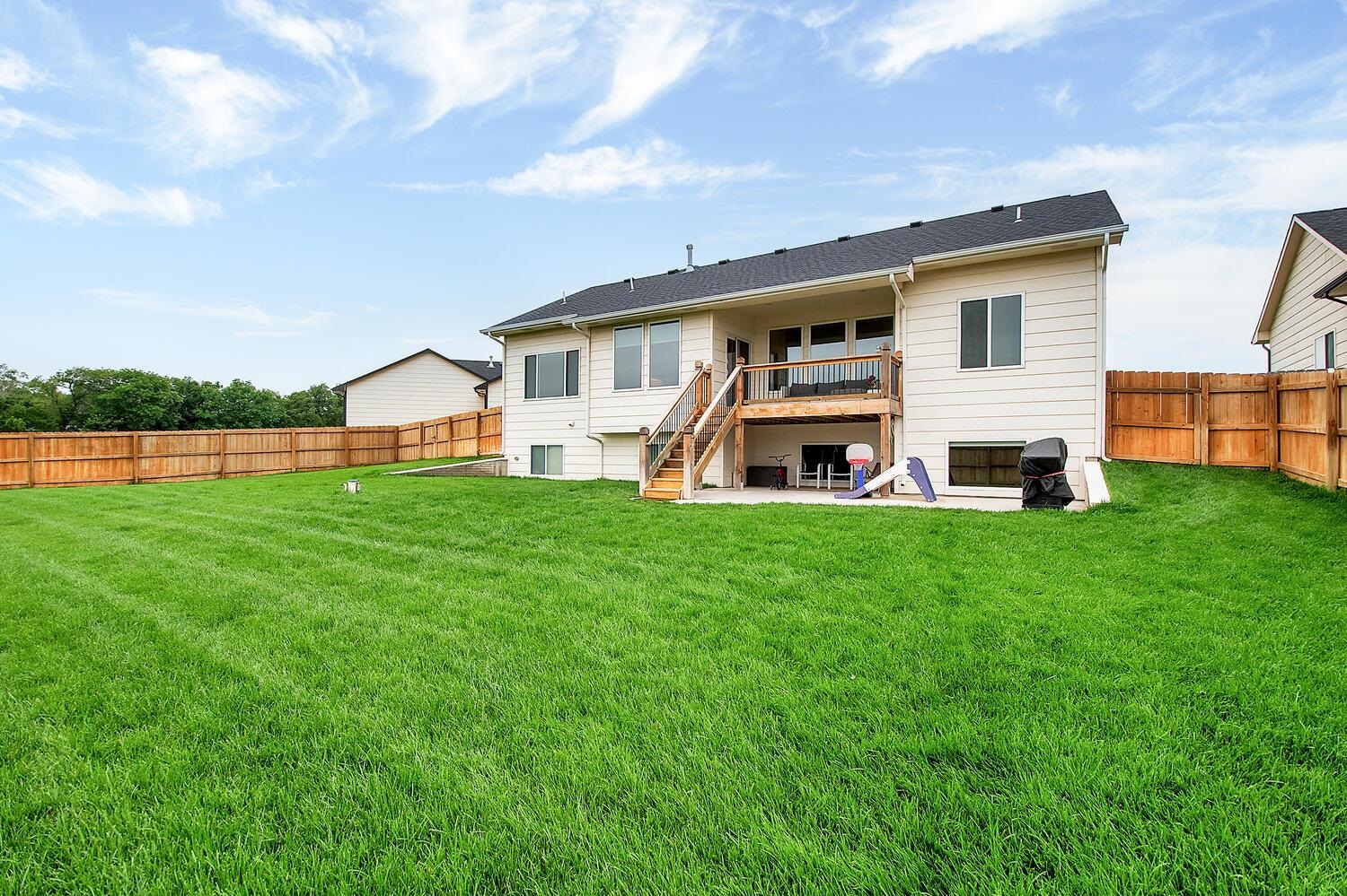 - Description: Sitting in the desirable Valley Center school district but within walking distance to shopping, restaurants, and within 10 mins to the West side of town. This home is a prime location and has the bonus of showing like a brand new home but having bonus features like fully fenced yard, irrigation well and sprinklers, window treatments, gas range in kitchen, walk in pantry and much more. The sellers are very immaculate and the home shows this way from the minute you drive up and see the pristine lawn and landscaping and all the way through every aspect of this home. The sellers loved the open floorplan, covered deck, privacy of no neighbors behind them, and the bonus of a large open basement with view out windows to name a few added features. This home is a rare 5 bedroom layout with 3 bedrooms on the main level sitting in a cul de sac lot for less traffic going by. This home will not disappoint and shows as well in person as it does online. Show all description