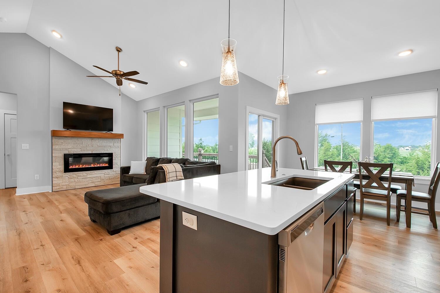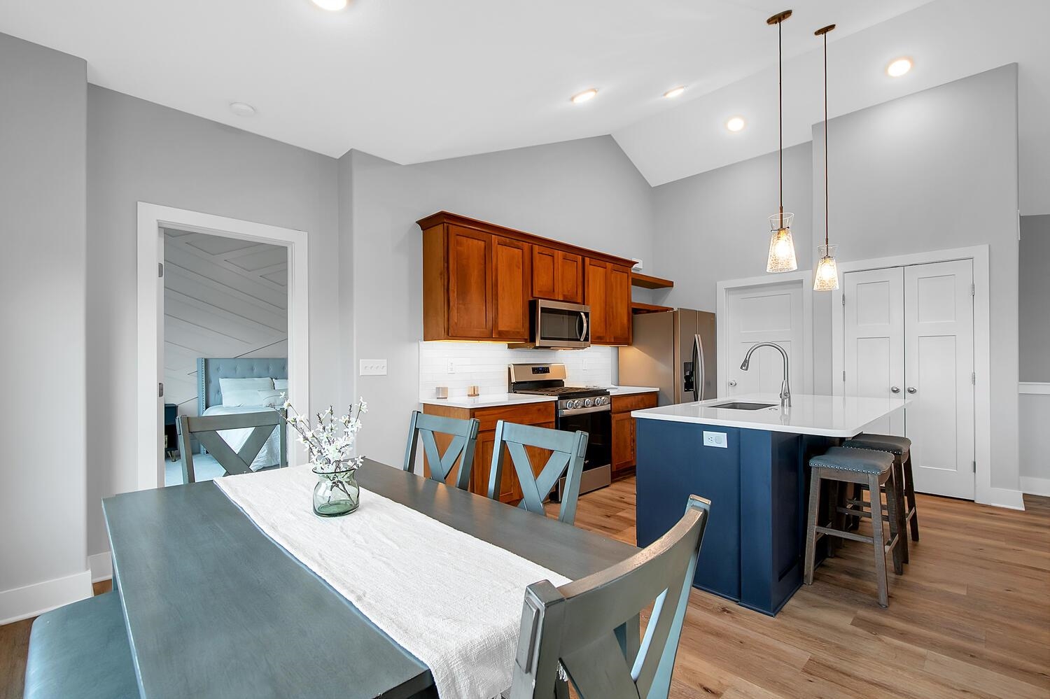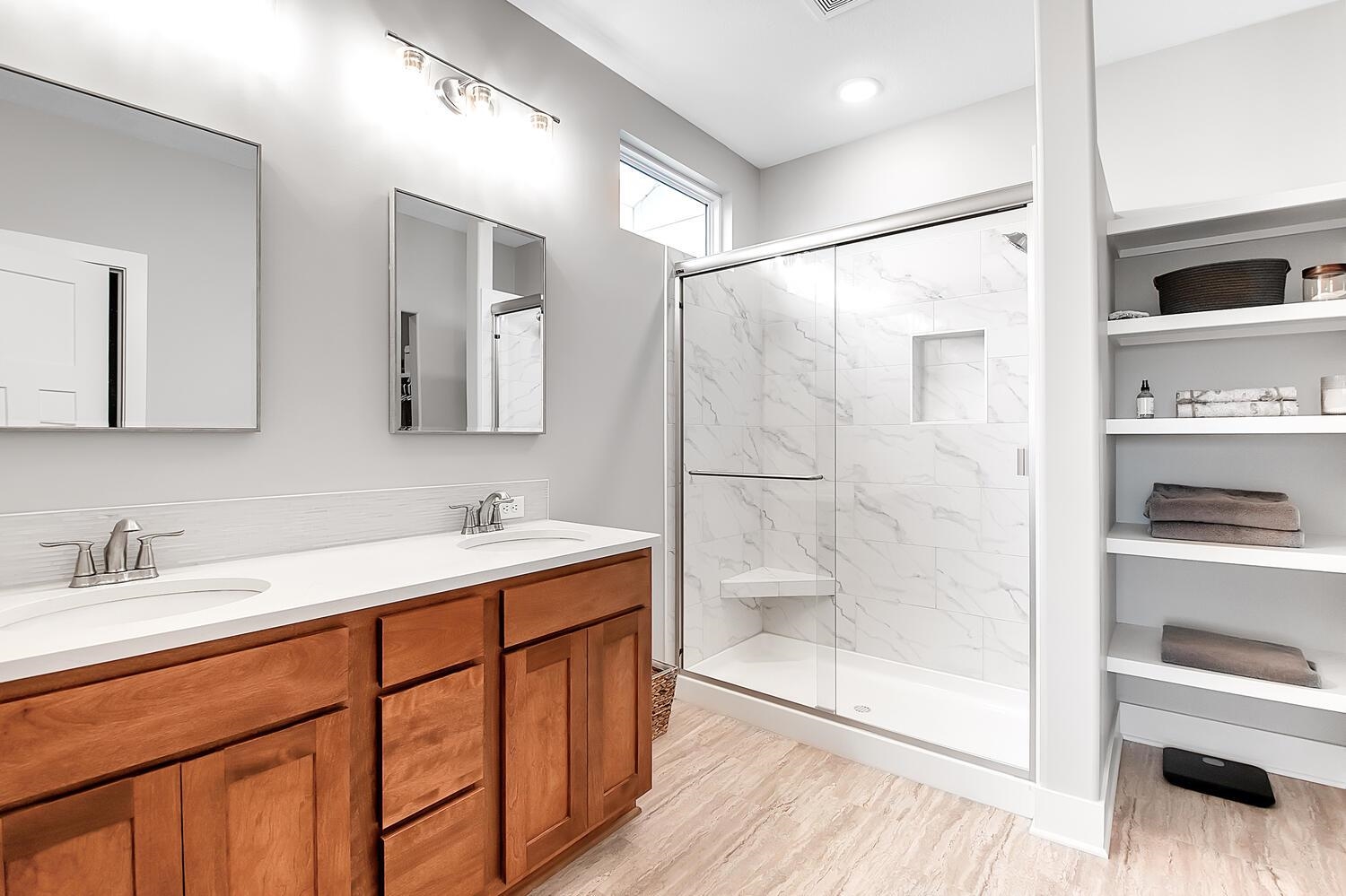 - Master Bedroom: Master Bdrm on Main Level, Split Bedroom Plan, Shower/Master Bedroom, Two Sinks, Quartz Counters, Water Closet