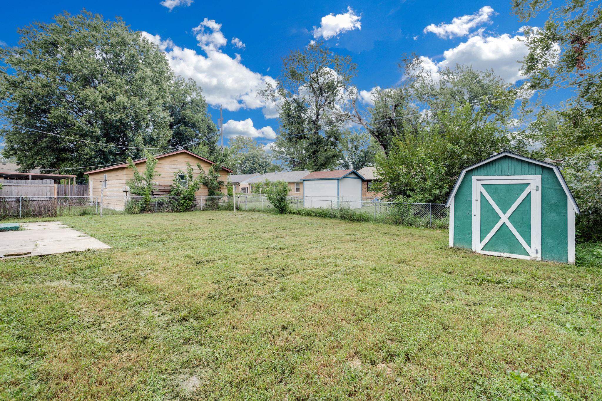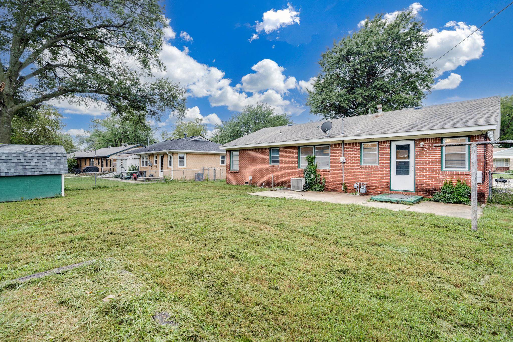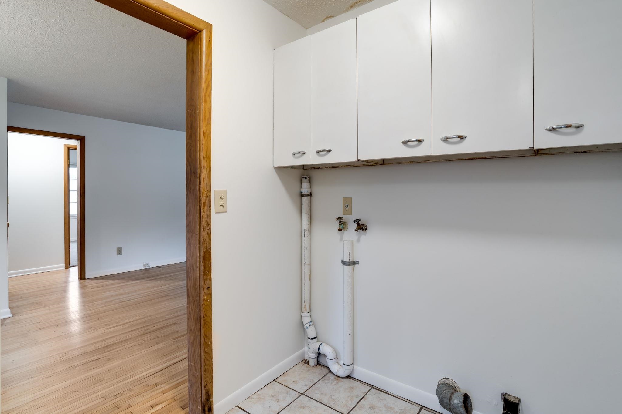 - Description: Wonderful all Brick Ranch with Stone Accents. 3 bedroom, 1 Bathroom, Oversized 1 car garage with a mechanical/storage room and pull down attic ladder. New electrical Panel. Dine in Kitchen walks out to Fenced yard with a shed, and has a quaint build in corner china cabinet. Laundry is off kitchen (washer and dryer are sitting in the garage but work and stay with the home/last renter used their own set. Stove and refrigerator stay also. Beautiful Hardwood floors throughout Living room and Formal Dining room. Newer carpet, ceiling fans and blinds in all 3 bedrooms. Don't wait! Show all description