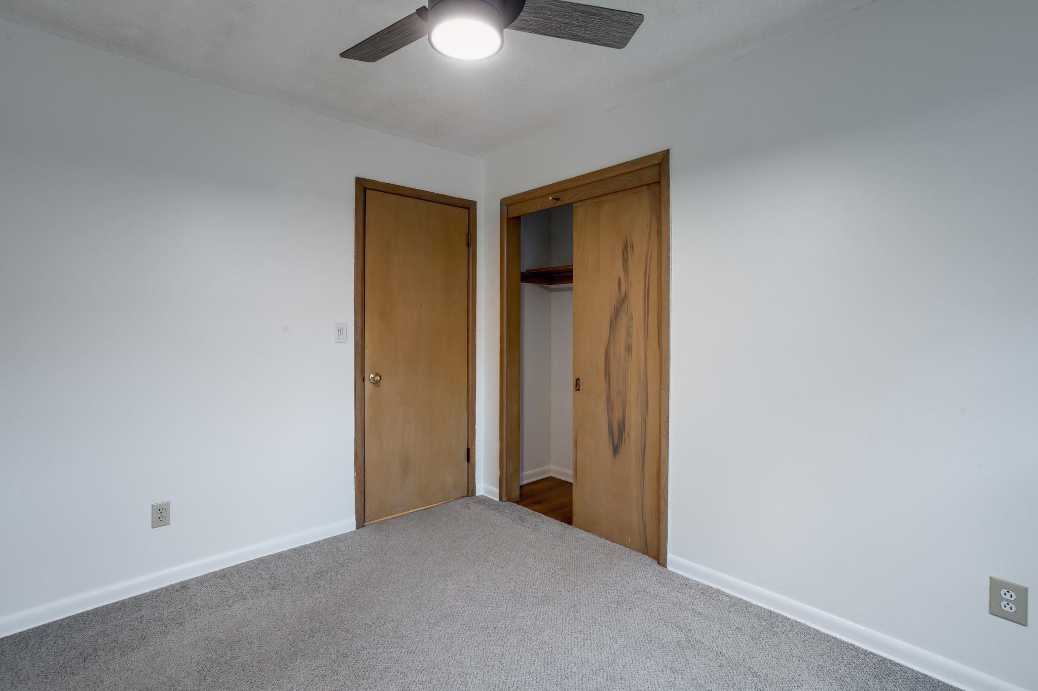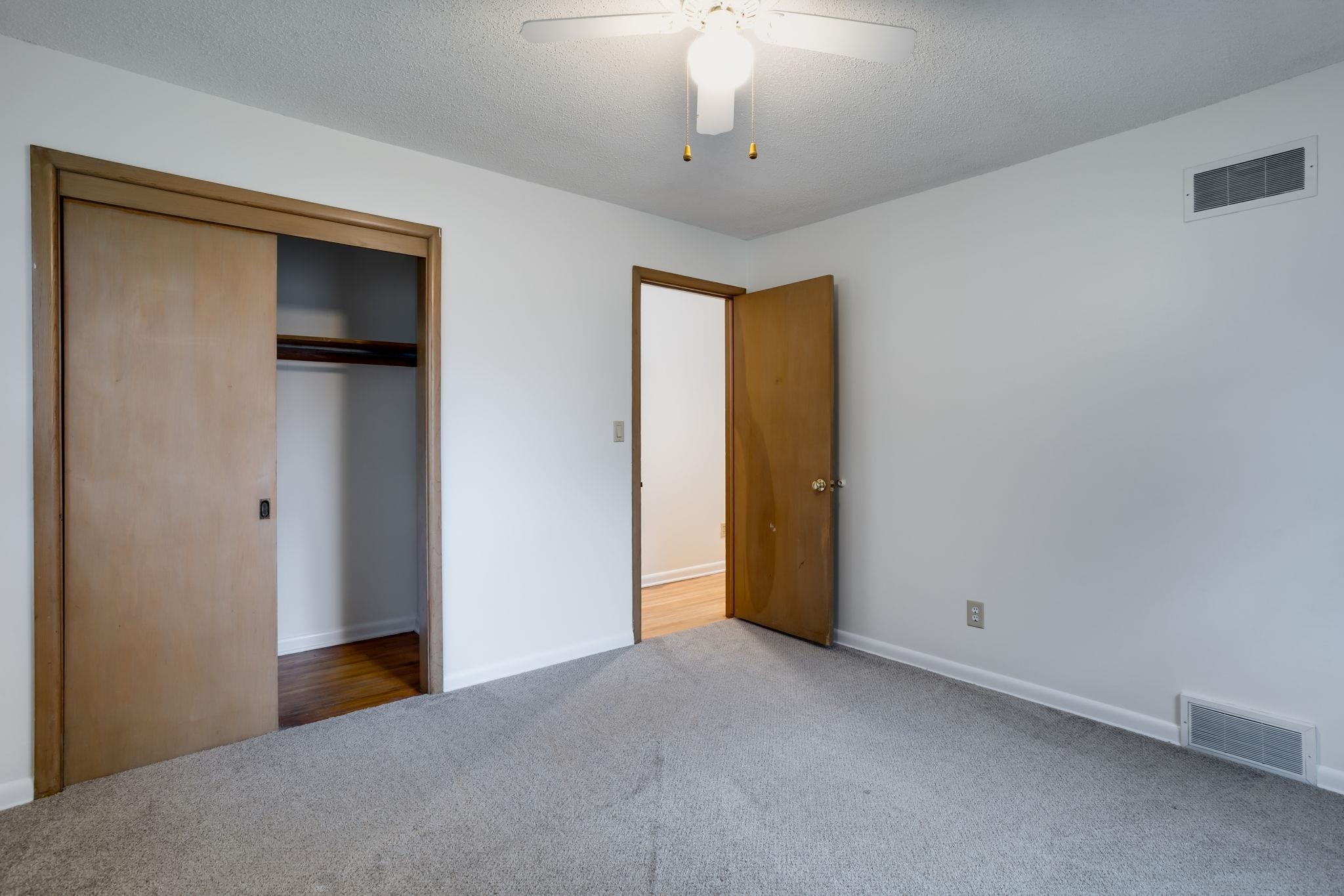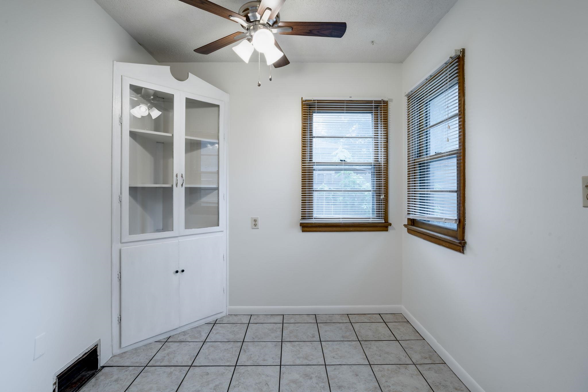 - Description: Wonderful all Brick Ranch with Stone Accents. 3 bedroom, 1 Bathroom, Oversized 1 car garage with a mechanical/storage room and pull down attic ladder. New electrical Panel. Dine in Kitchen walks out to Fenced yard with a shed, and has a quaint build in corner china cabinet. Laundry is off kitchen (washer and dryer are sitting in the garage but work and stay with the home/last renter used their own set. Stove and refrigerator stay also. Beautiful Hardwood floors throughout Living room and Formal Dining room. Newer carpet, ceiling fans and blinds in all 3 bedrooms. Don't wait! Show all description