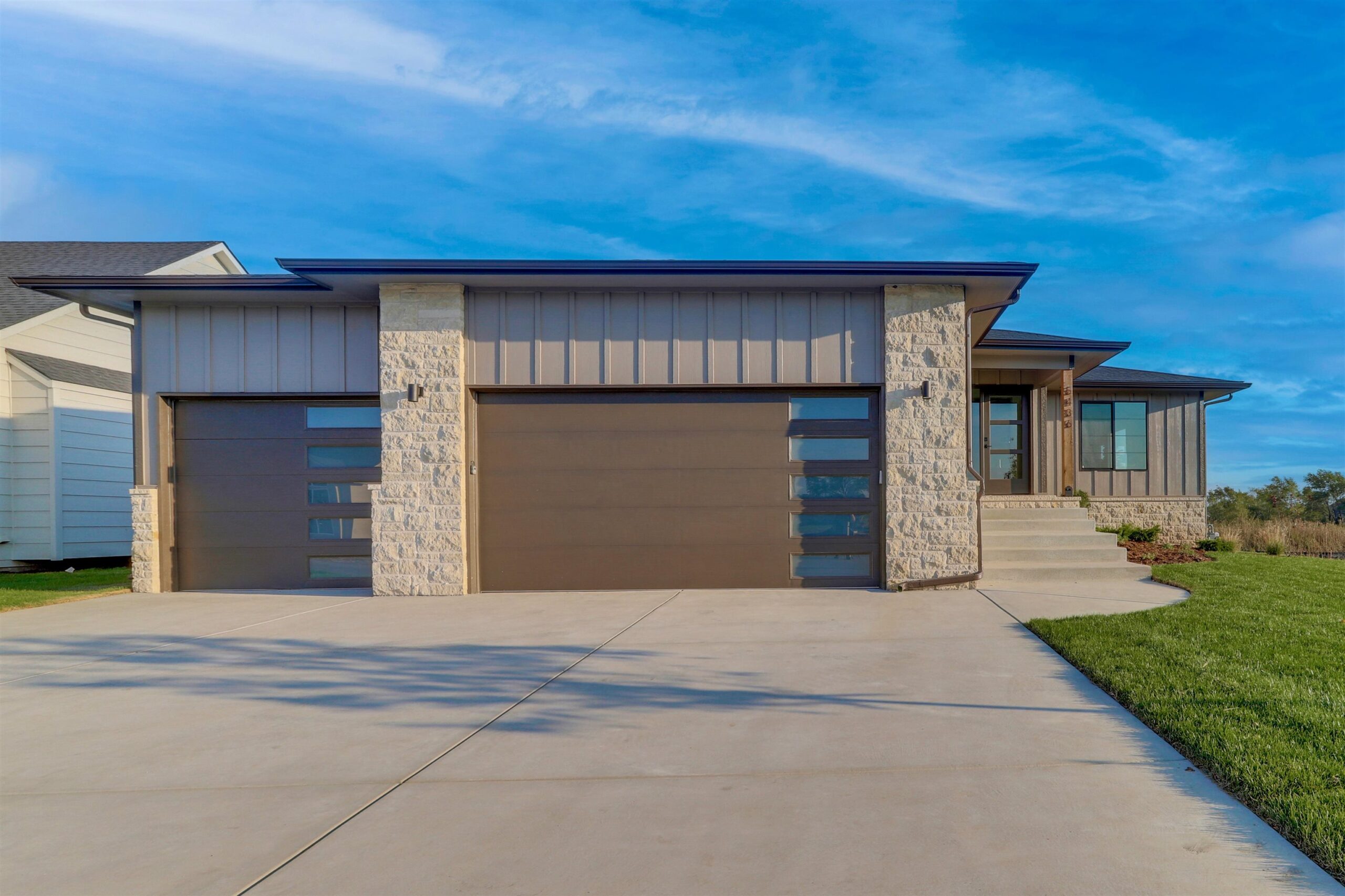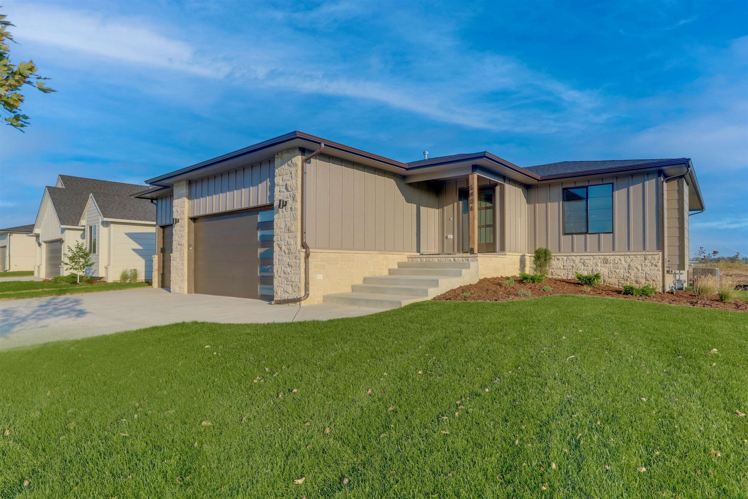 - Description: This distinctive new design TW Custom Homes combines the character and charm you would see in the classic homes of yesterday with the modern luxury features and finishes you expect to see today. This captivating new plan, with its unique features and striking finishes, is an absolute must see! Upon entering the home, the foyer with entry closet leads you into the spacious living room with electric fireplace. The well-appointed kitchen includes quartz countertops and a walk-in pantry as well as a separate dining space. The lavish owner’s suite includes a spacious bedroom, a private bath with quartz countertops and a tile shower, and two separate walk-in closets!The main floor features also include two additional bedrooms, a full hall bath, and laundry room conveniently located by the garage entrance. The stairs down to the lower-level feature spectacular 2 story windows and a walk-out door from the landing takes you out to the back patio. The fully finished lower level includes an expansive family room with walk-up wet bar, as well as two additional bedrooms, a full hall bath, and plenty of room for storage! Come see this incredible model home and everything Watermarke has to offer, today!Some information may be estimated, and is not guaranteed, please verify schools with USD262. Show all description