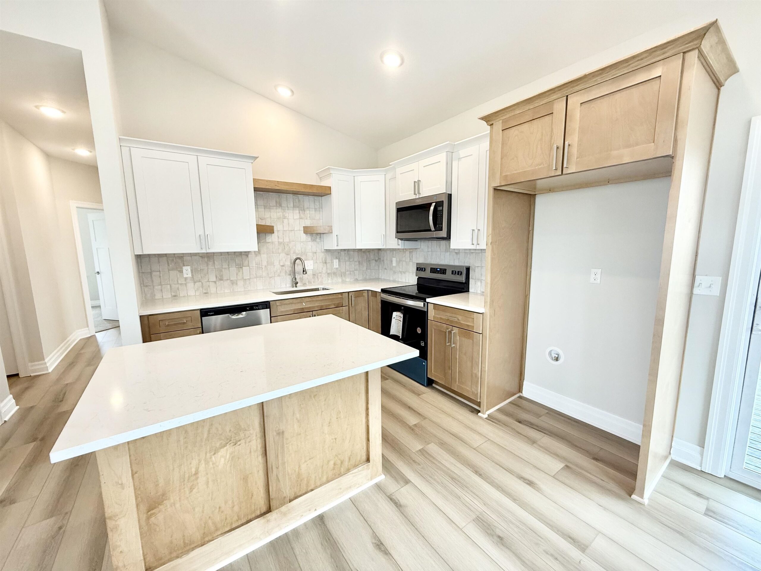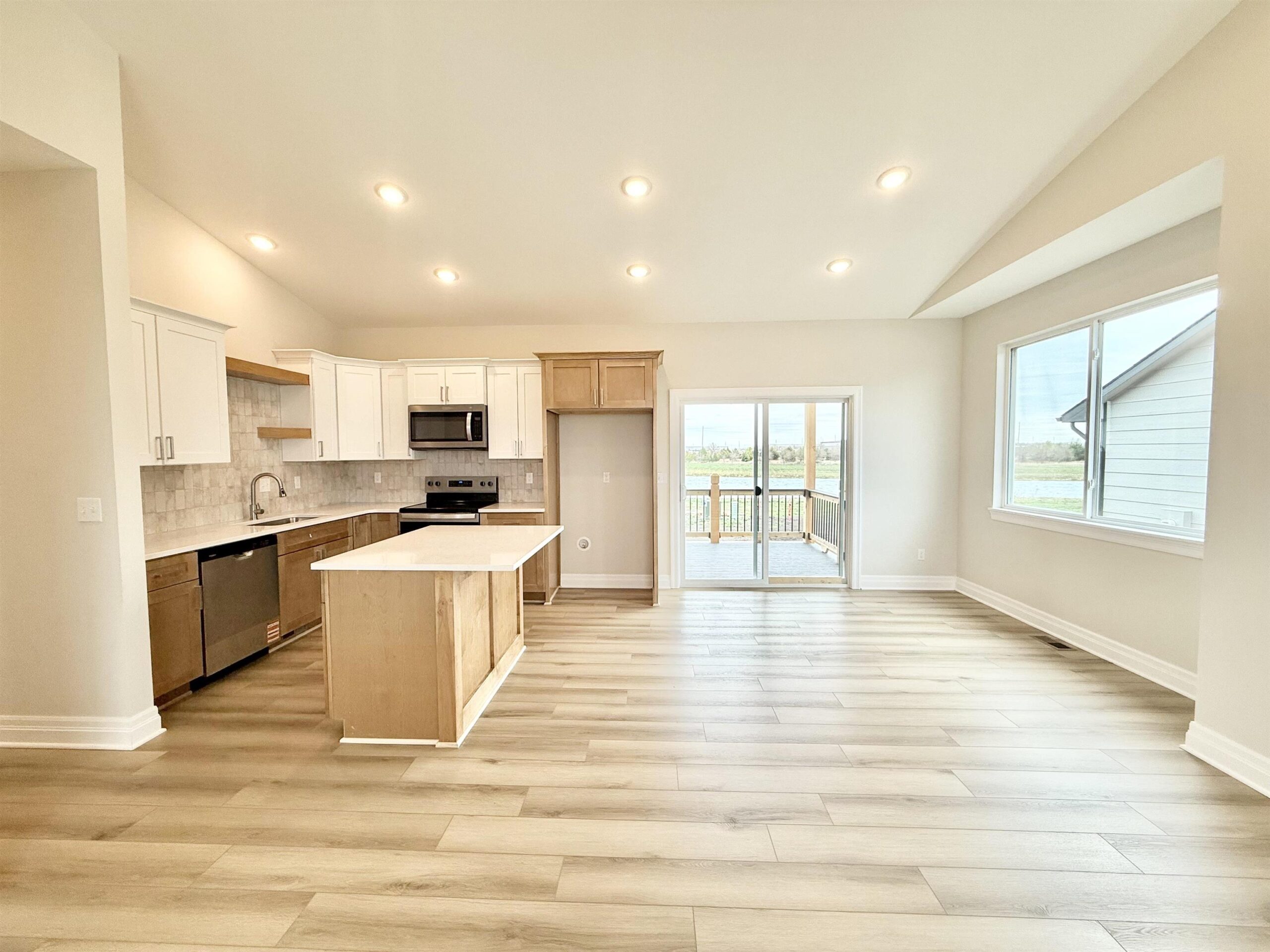 - Description: Stunning 5-Bedroom New Construction on the Water! Welcome to this beautiful new construction home that perfectly blends comfort, style, and breathtaking views! Situated on the water, this home offers a serene backdrop right from your own backyard. Inside, you’ll find five spacious bedrooms and a thoughtfully designed open floor plan. The living room features a gorgeous electric fireplace, creating a cozy and inviting atmosphere. The kitchen boasts plenty of cabinets for all your storage needs. The main-floor laundry adds convenience, while the finished basement provides additional living space and a wet bar. With a three-car garage, there’s plenty of room for vehicles, storage, and hobbies. Sprinkler and Sod included Don’t miss the chance to own this stunning waterfront home! Show all description