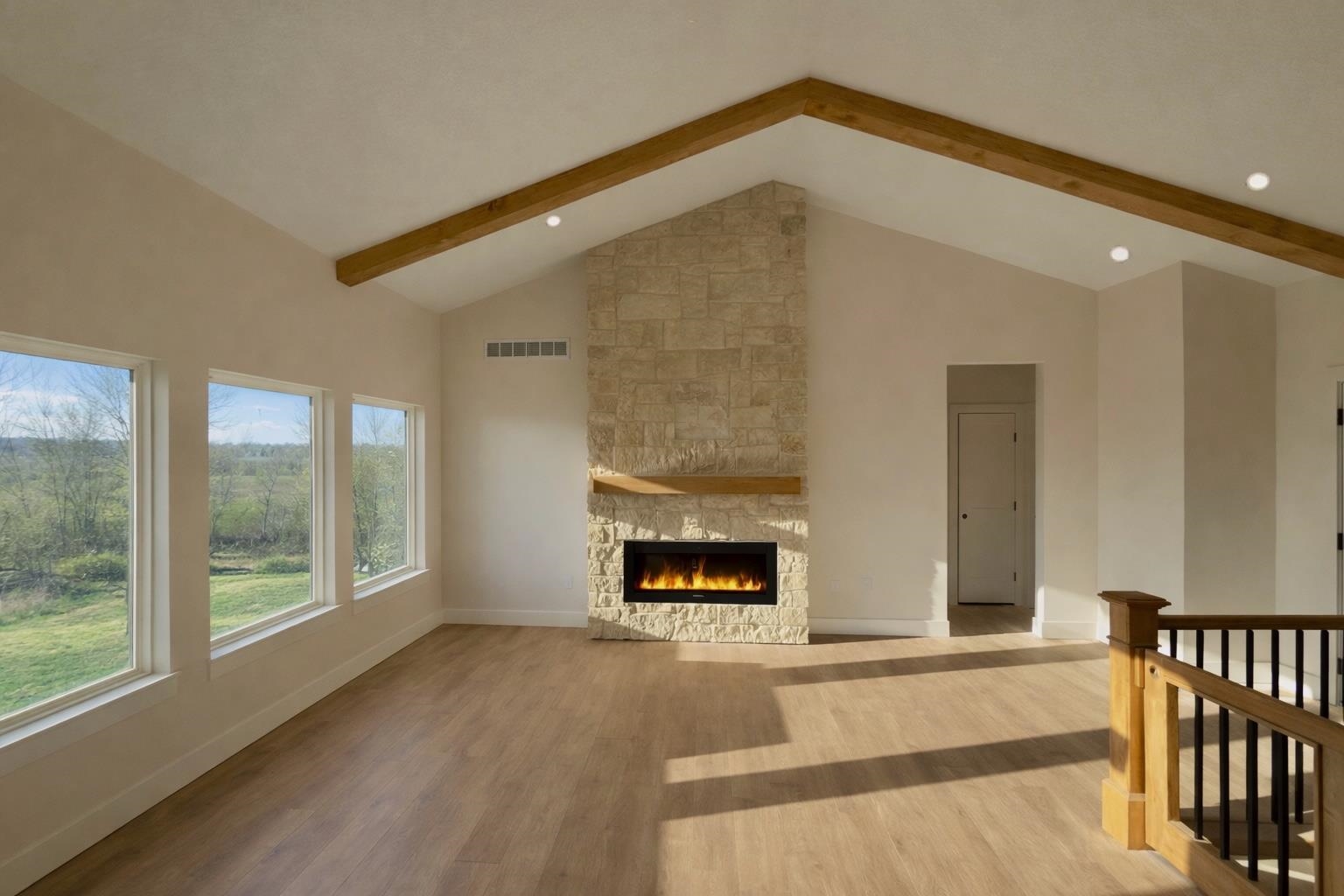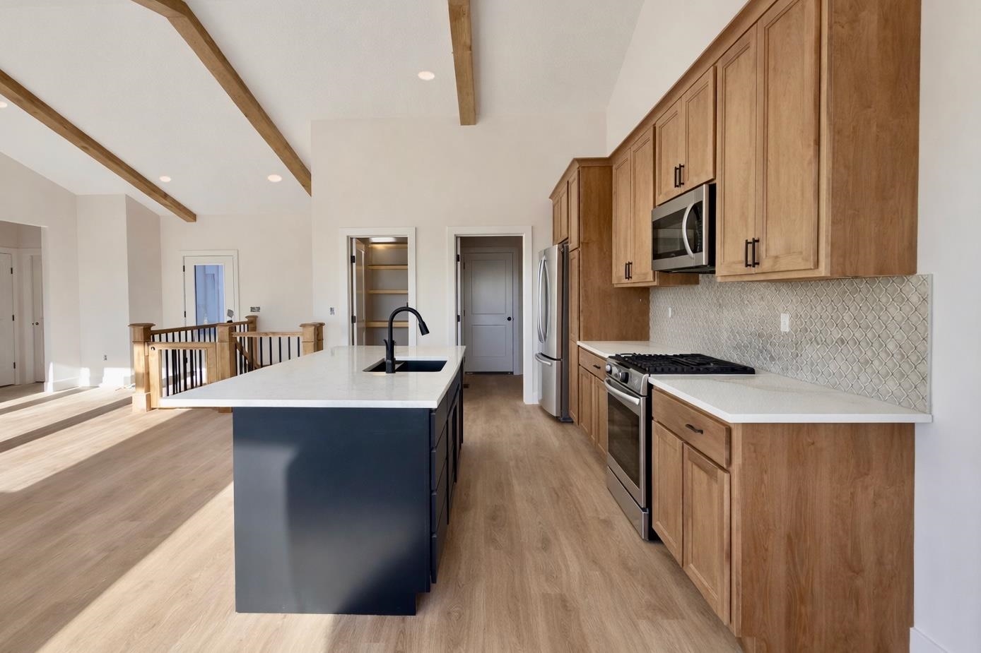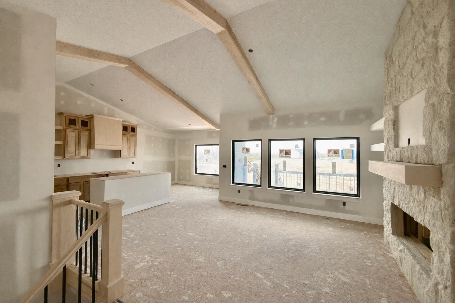 - Description: Introducing the Archie Plan by C&A Homes — a new and expanded version of one of their most popular floor plans! Situated on a spacious lot with a large backyard, this stunning home offers timeless curb appeal with a striking front elevation featuring stone accents and sleek black Anderson windows throughout. Inside, you’ll find a bright and inviting living room with vaulted, beamed ceilings, a beautiful stone fireplace, and built-in shelving. The well-appointed kitchen is designed for both style and function, offering quartz countertops, abundant cabinet space, and a walk-in pantry. The spacious dining area is filled with natural light from large picture windows and opens to a covered composite deck, perfect for relaxing or entertaining. The luxurious Primary Suite features a spacious bedroom with trayed beamed ceilings, a private bath with tile shower, large dual vanity, and a walk-in closet. Two additional bedrooms and a full hall bath complete the main floor. The fully finished basement continues to impress with a large family room featuring oversized picture windows and a wet bar, along with two additional spacious bedrooms, a full bathroom, and ample storage space. This thoughtfully designed home combines comfort, style, and functionality in every detail. Finished interior pictures are from a home that was previously built in the neighborhood and exact finishes will vary. Some information may be estimated and is not guaranteed. Please verify schools with USD 262. Show all description