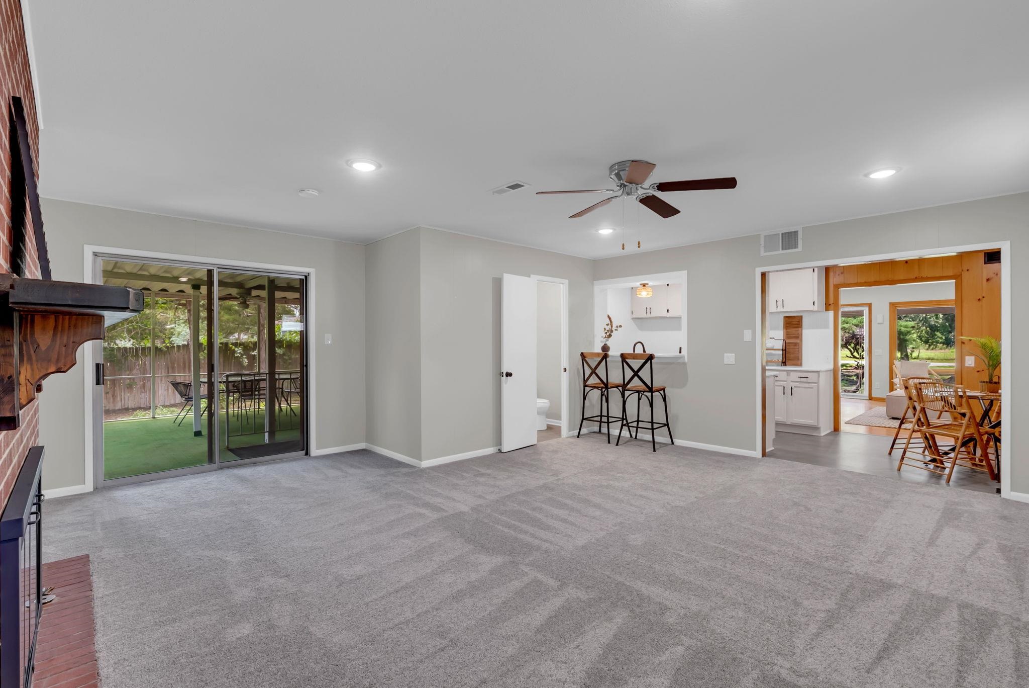 - Description: Charming Remodeled Retreat at 5516 N Armstrong Discover the perfect blend of modern comfort and timeless appeal in this fully remodeled 3-bedroom, 2-bathroom gem, nestled on a serene half-acre lot with no HOA restrictions. Priced to impress and move-in ready, this home offers a peaceful, country-like escape just off the beaten path, surrounded by mature trees that provide ultimate privacy and seclusion. Step inside to be greeted by the warmth of original hardwood floors flowing through the living room, hallway, and all three bedrooms, beautifully preserved and paired with fresh, all-new paint throughout. The heart of the home shines in the updated kitchen, featuring gorgeous quartz countertops, sleek new fixtures, and a convenient pass-through design that seamlessly extends into the large family room. Cozy up by the wood-burning gas fireplace on chilly evenings, or open up the space for effortless flow to the spacious screened-in patio—perfect for hosting large family gatherings and lively evenings with friends. Both bathrooms were completely gutted and renovated, with the original half bath transformed into a full second bath complete with new shower and plumbing . Enjoy brand-new flooring, stylish fixtures, and numerous electrical upgrades for peace of mind. Plumbing has been extensively modernized too—now connected to city water with a new meter and lines to the home, plus most plumbing and sewer lines replaced for worry-free living. Entertain or unwind in style with the screened-in patio leading to a versatile multi-purpose room, ideal for a home office, gym, or hobby space. Outside, the covered front porch invites lazy mornings, while a rear deck offers additional outdoor relaxation. Parking is a breeze with a 1-car attached garage, large carport, and ample room for your boat, RV, or extra vehicles. For added security, a dedicated storm shelter ensures safety during inclement weather. This quiet haven feels worlds away yet is conveniently located for easy access to amenities. Don't miss your chance to own this secluded sanctuary—schedule a showing today and make it yours! Show all description