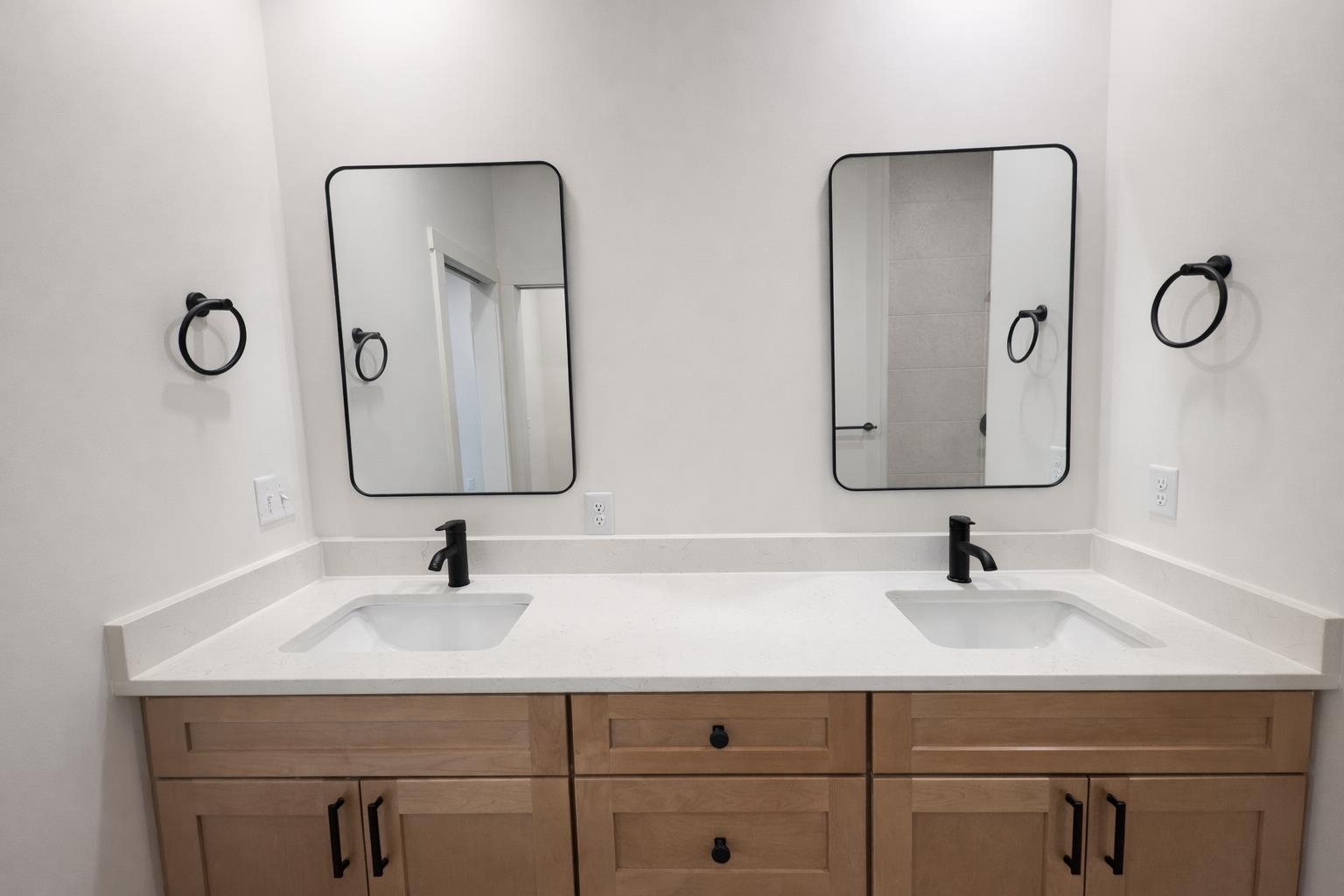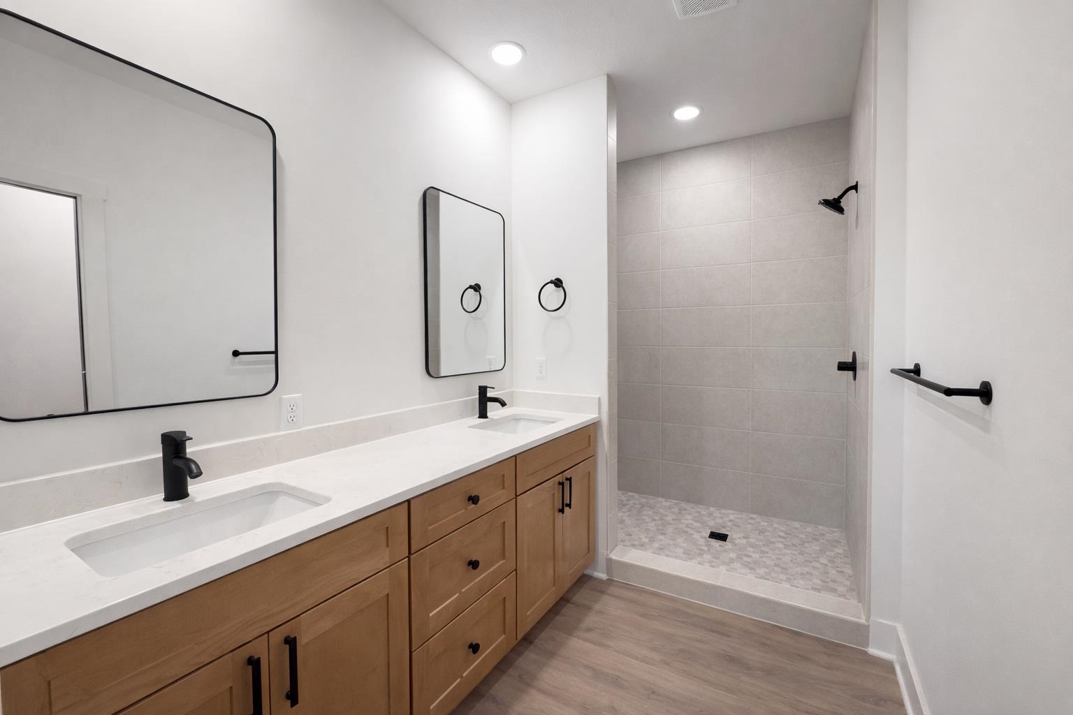 - Master Bedroom: Master Bdrm on Main Level, Split Bedroom Plan, Master Bedroom Bath, Shower/Master Bedroom, Two Sinks, Quartz Counters, Water Closet
