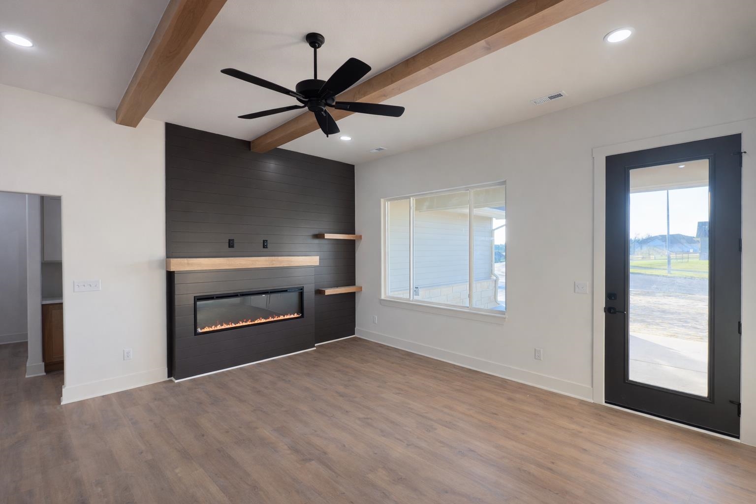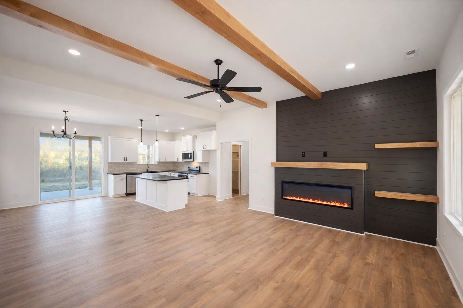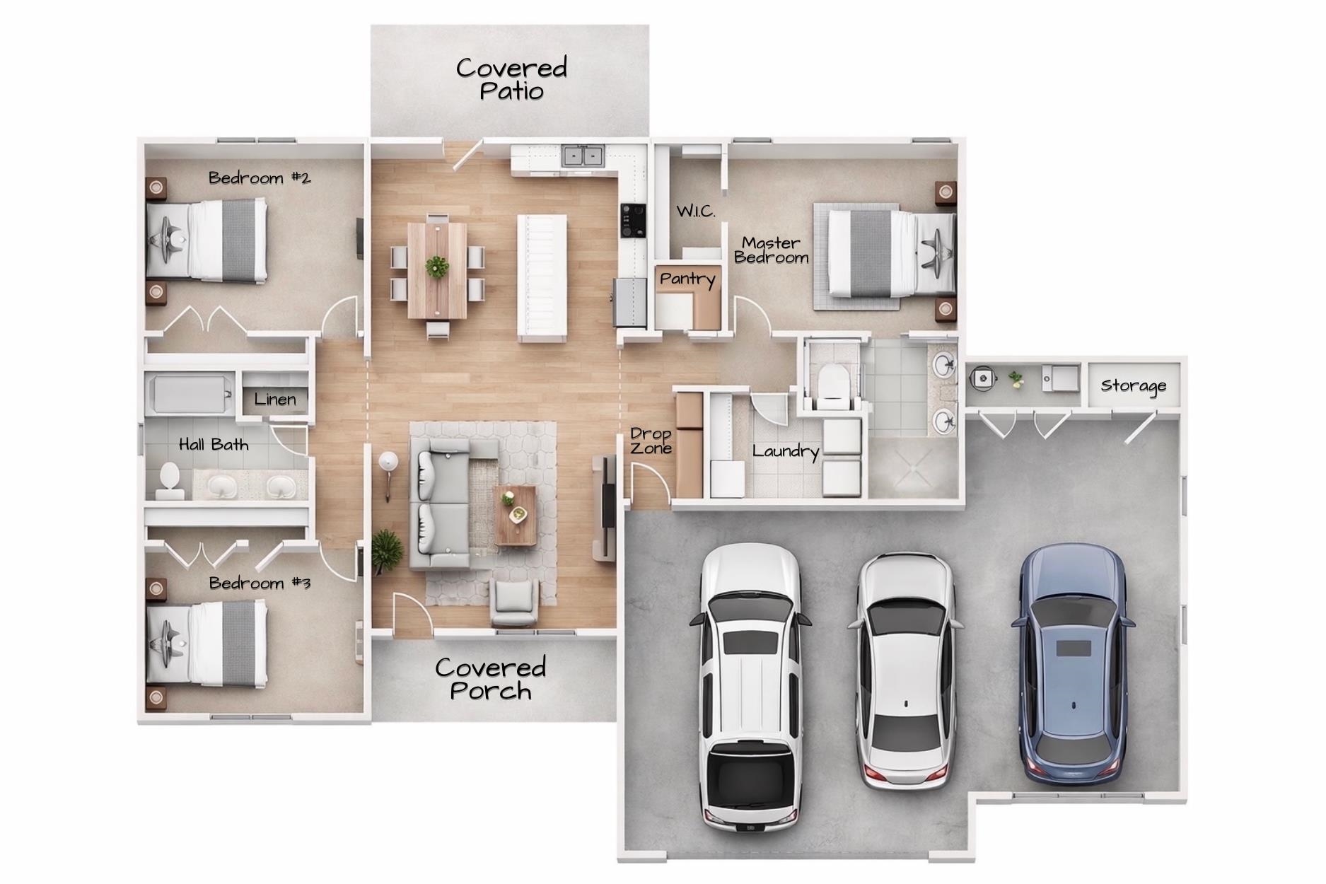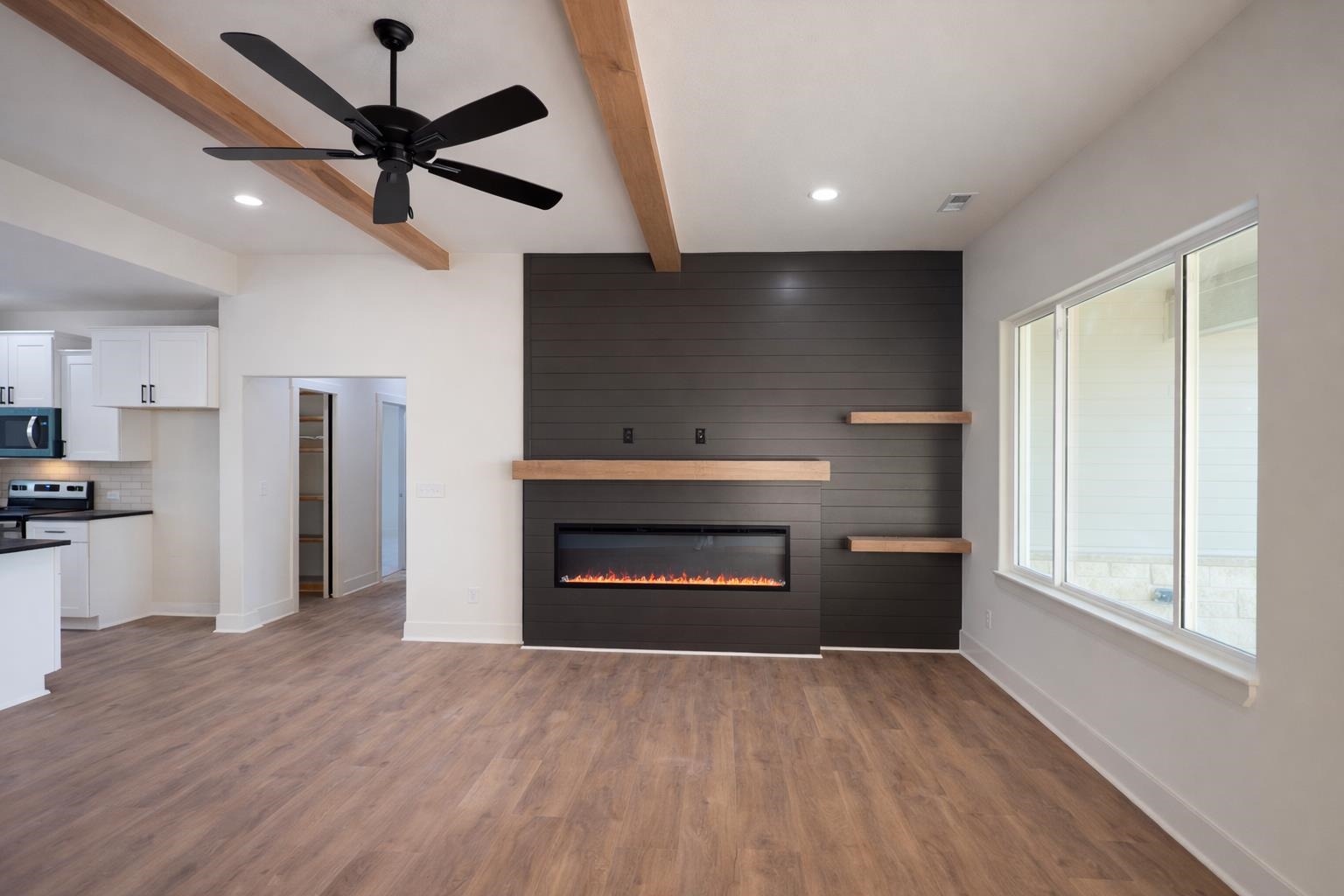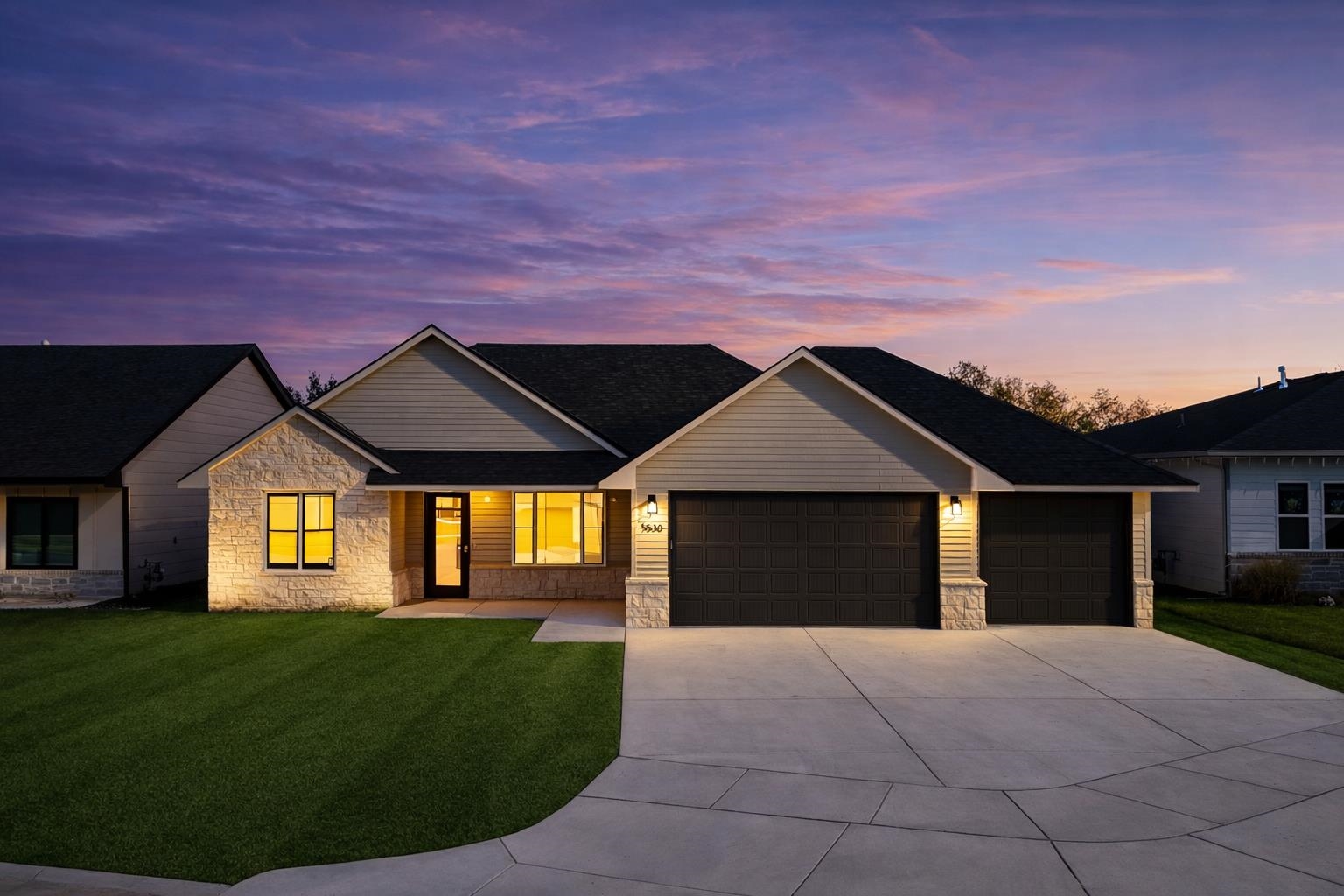 - Description: Introducing The Villa Plan by Relph Construction – a home designed for accessibility, comfort, and affordability without sacrificing style. The timeless exterior features natural stone accents and a welcoming covered front porch. Nestled on a wooded lot with no rear neighbors, this home offers both privacy and peaceful views. Inside, a spacious living room with flat beamed ceilings, and an electric fireplace. The well-appointed kitchen boasts quartz countertops, a walk-in pantry, and abundant cabinetry, flowing into a separate dining area with doors to the large covered patio—ideal for entertaining. The luxurious master suite includes a large bedroom, walk-in closet, and private bath with dual vanities and tile shower. Thoughtful touches include a separate laundry room with built-in utility cabinet and folding table, plus a generous drop zone at the garage entrance. Two additional bedrooms and a full bath complete the plan. Sod, sprinkler system, and irrigation well included. Some information may be estimated and is not guaranteed. Please verify schools with USD 262. Show all description