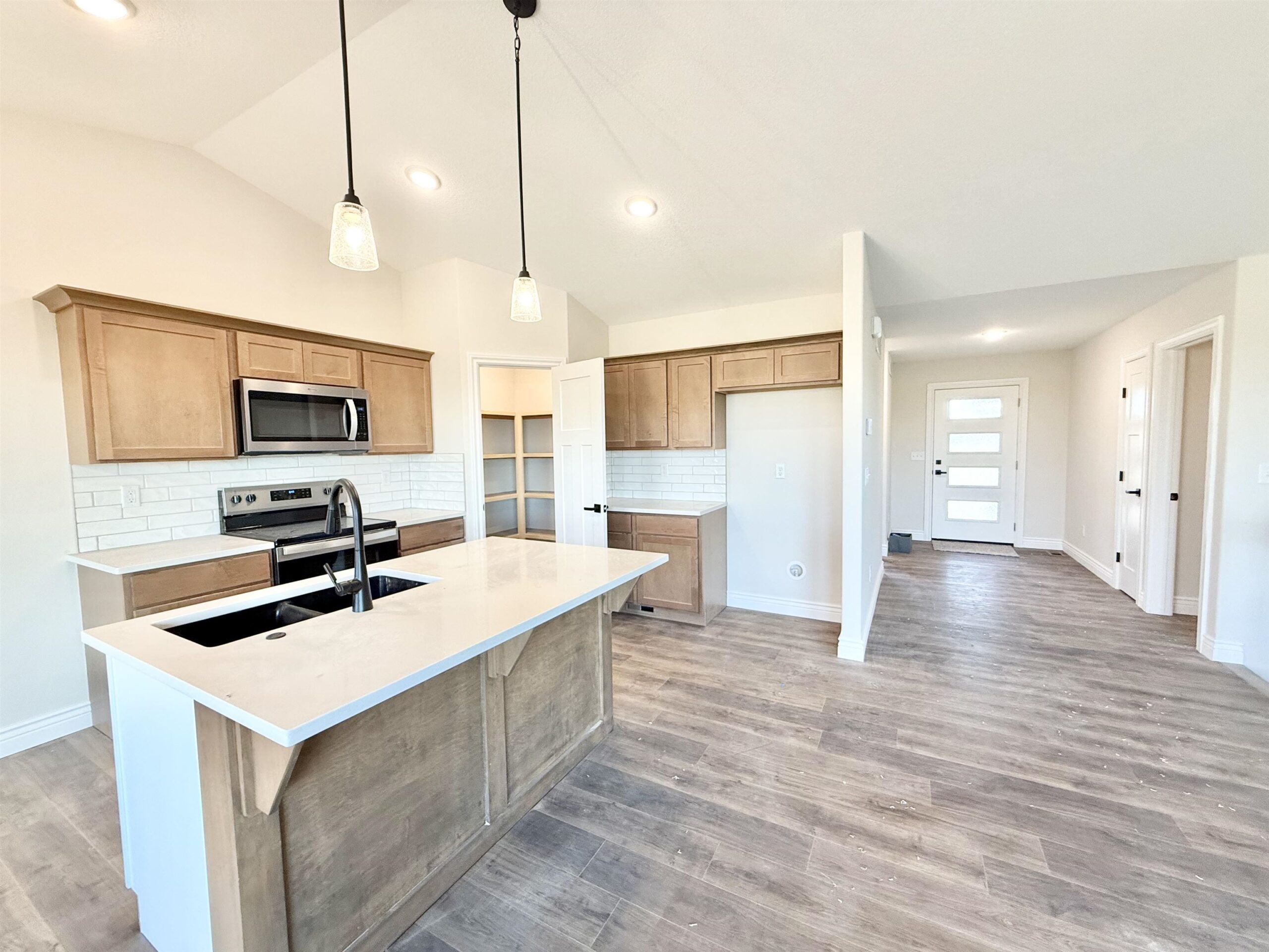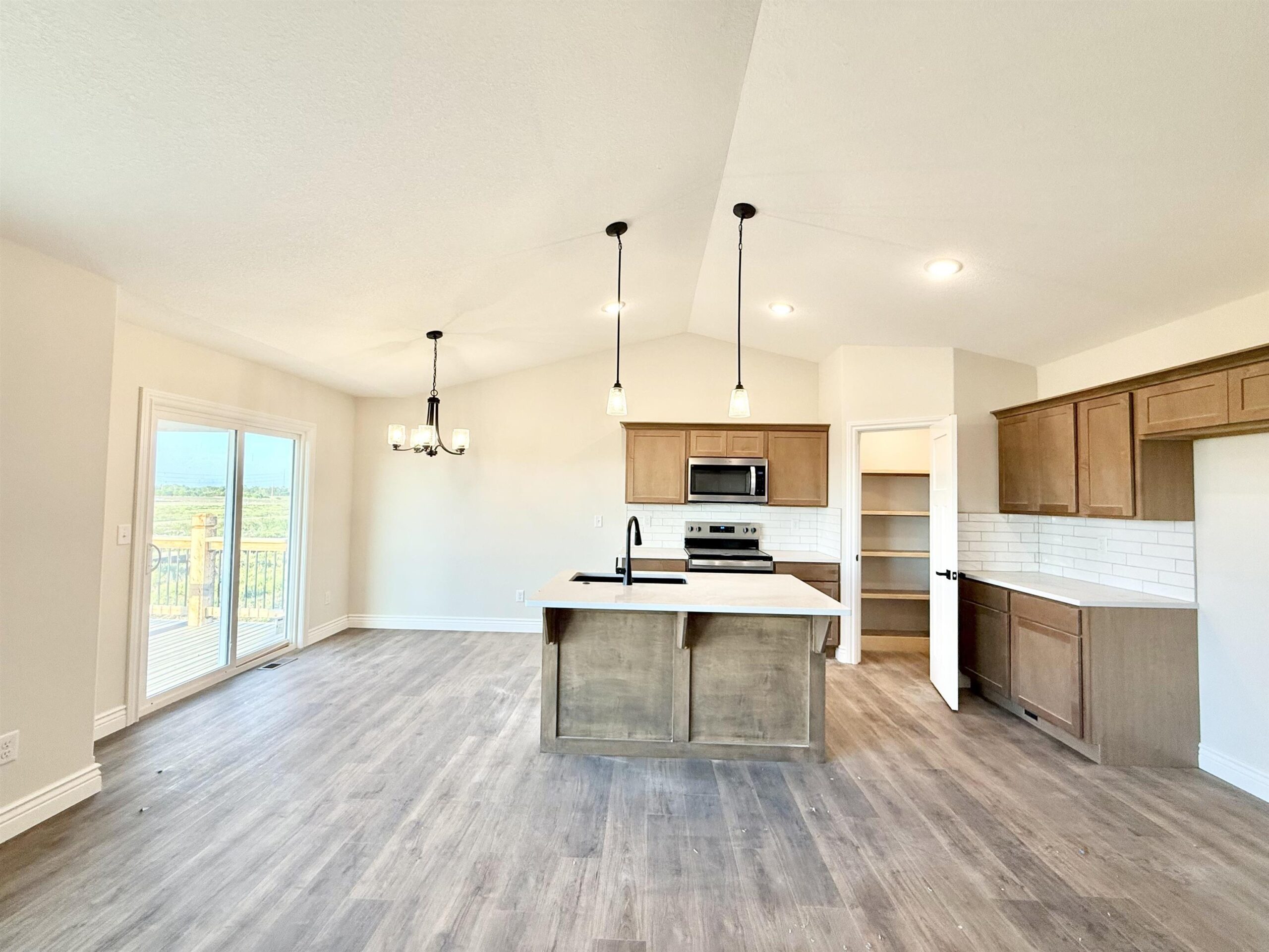- Description: Come see this BRAND NEW home In Cedar Pass! The main floor features and open, split bedroom floorplan with tall ceilings, large windows for lots of natural lighting, LVP flooring throughout the main living areas, granite counters, stainless steel appliances, two bedrooms and two bathrooms. The basement features a huge rec room with wet bar, two bedrooms, and one bathroom. The outside features a covered deck, sprinklers and sod. Schedule a showing today! Show all description