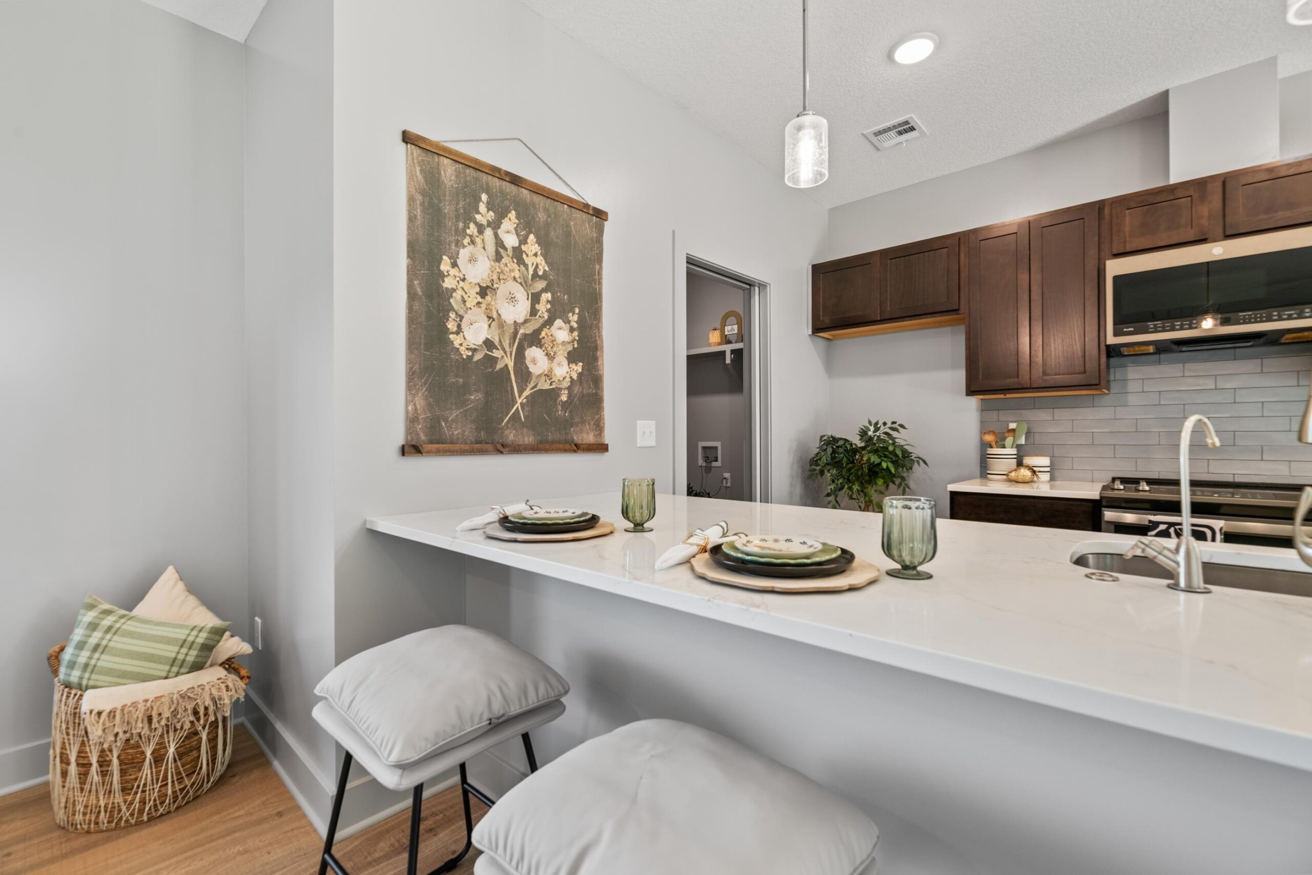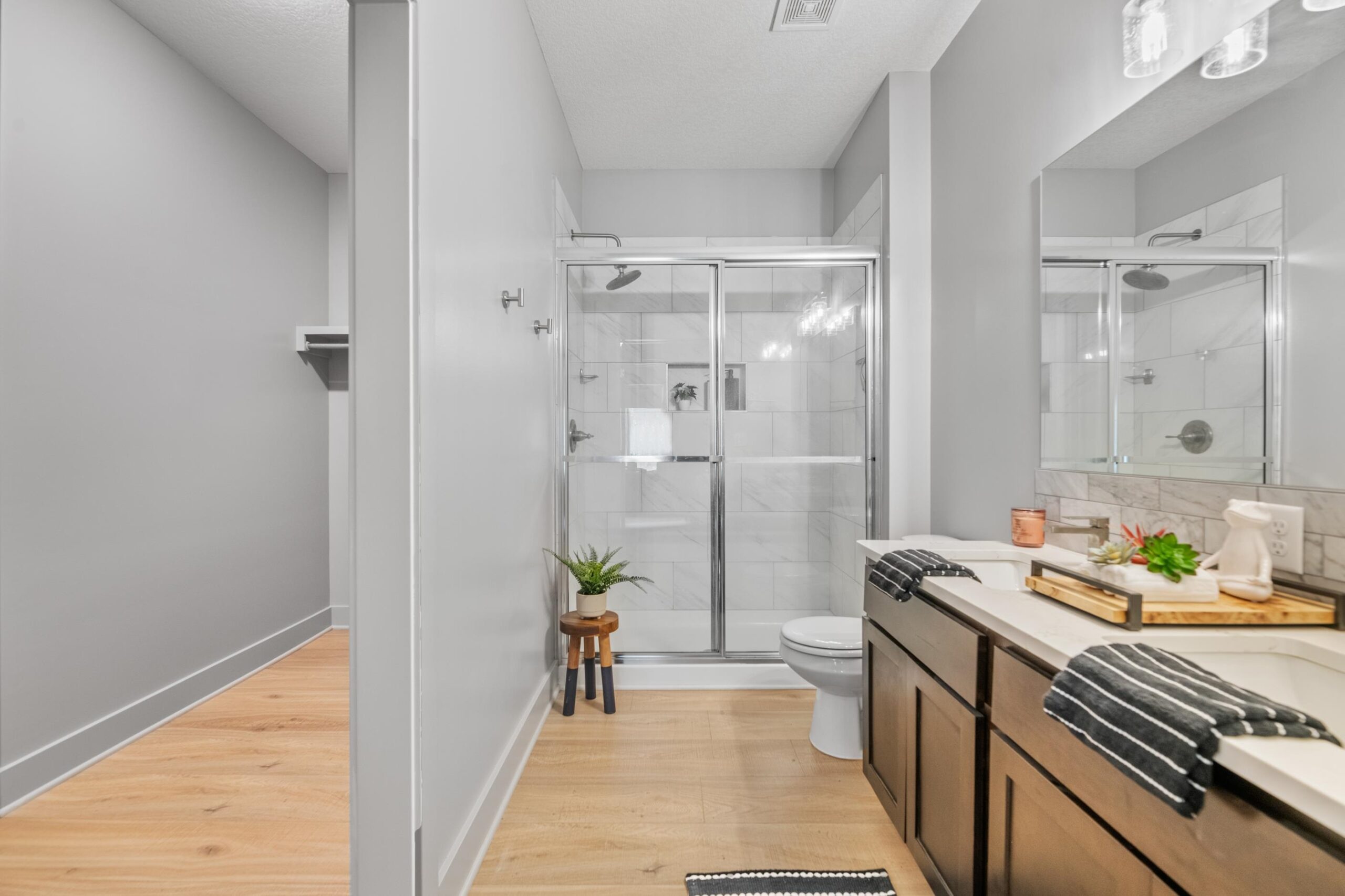 - Master Bedroom: Master Bdrm on Main Level, Shower/Master Bedroom, Two Sinks, Quartz Counters