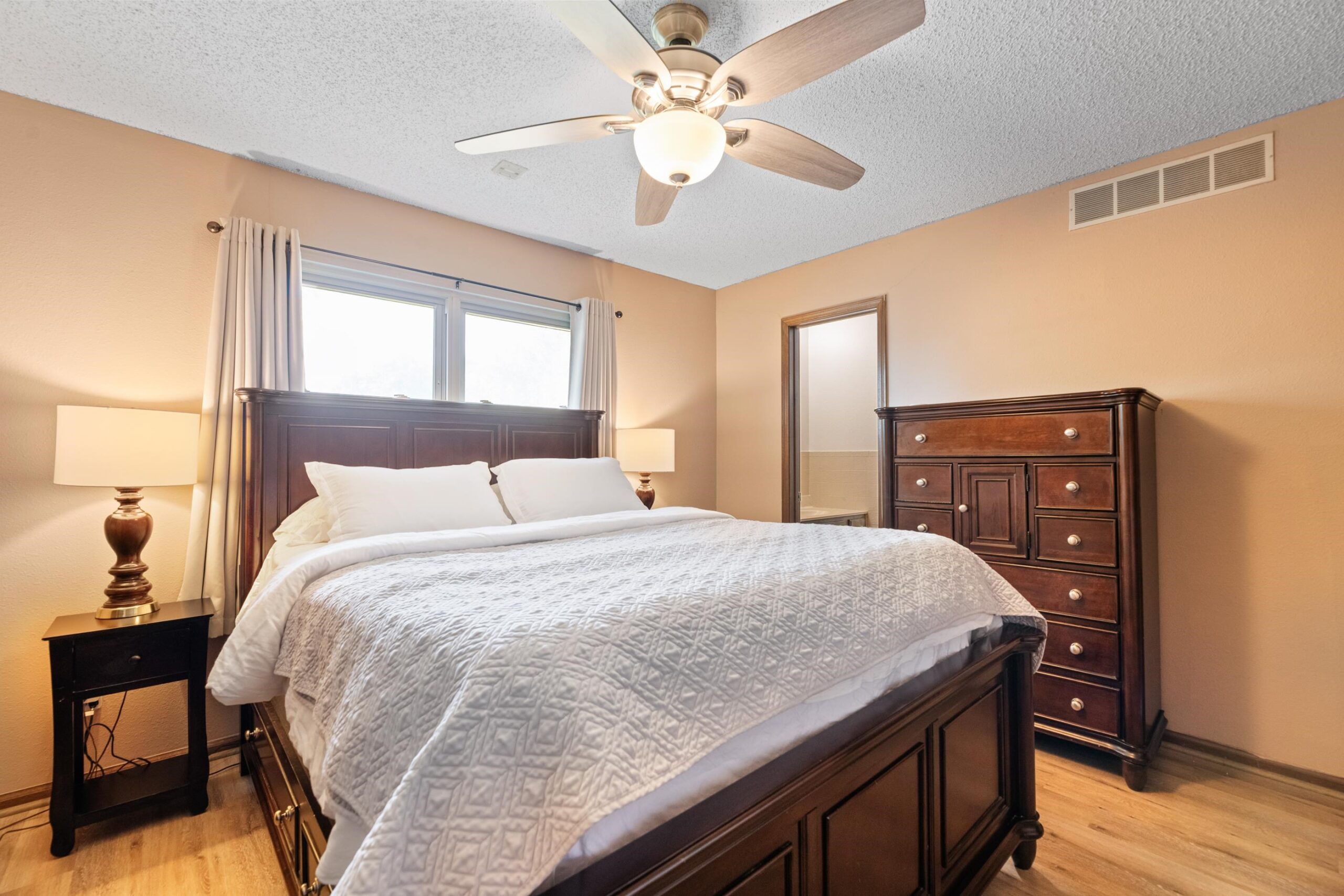 - Description: When you walk in to this well maintained and nicely updated home in BelAire, you will be ready to move in today! The huge living room offers plenty of space for entertaining or lounging, and is flooded with natural light by the new sliding glass door. Don't miss the highly functional galley kitchen- all appliances stay! The dining room is right off the kitchen and offers plenty of space for a table and a coffee bar or buffet. Down the hall you will find the large master bedroom with an ensuite bath. Two more bedrooms and another half bath and laundry round out the main floor. The cozy basement offers a large rec room, and a flex space for an office or craftroom. The flex space has hookups for a washer and could easily be converted to a basement laundry room. Do you have hobbies? Would you like a workshop? Step onto the patio in the huge backyard and follow the sidewalk to check out the shed! Complete with electricity and waiting for you to unleash your creative side, or store the lawnmower and garden tools, whatever you prefer! Highlights of the home include HVAC new in 2020, New LVT throughout, new garage floor replaced a year ago, new garage door opener with security camera...you just have to come check this one out! Show all description