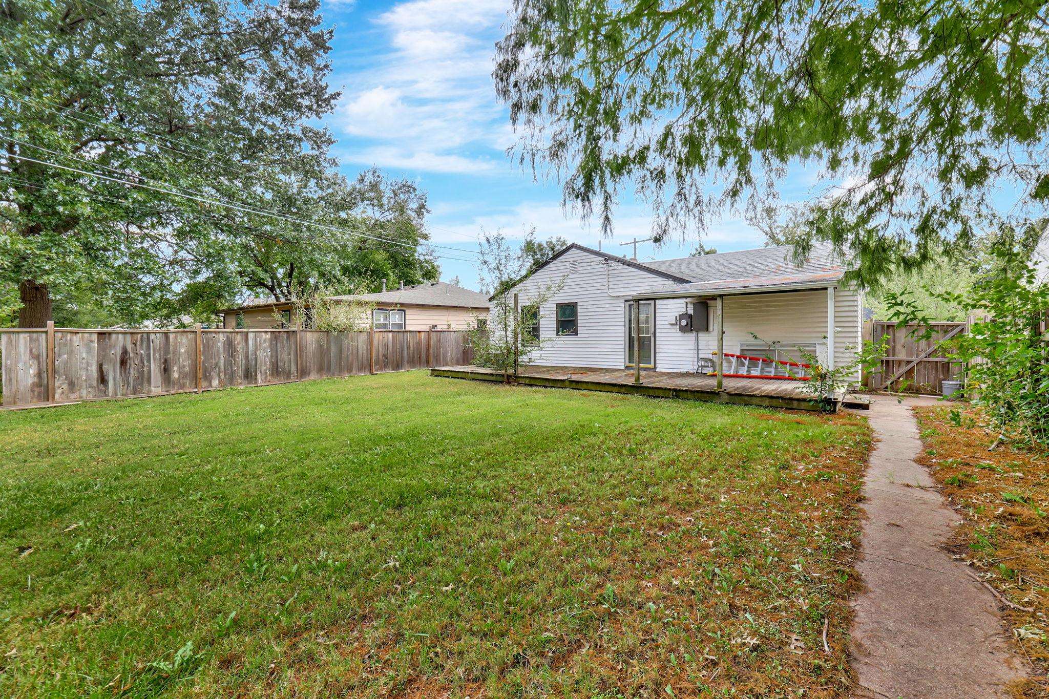 - Description: Charming, Updated Ranch-Style Home in Southeast Wichita! Welcome to this maintained and tastefully updated 3-bedroom ranch home, nestled in a quiet and established neighborhood in southeast Wichita. Perfectly combining comfort, style, and functionality, this move-in-ready property is ideal for first-time homebuyers or savvy investors seeking a reliable and low-maintenance rental. Step inside to a warm and inviting formal living room—perfect for entertaining or relaxing. The home features fresh updates throughout, including stylish new finishes in the kitchen and bathroom. The spacious kitchen boasts abundant cabinet space, a convenient eating bar, and comes fully equipped with appliances that stay! Outside, you’ll love the expansive, fully fenced backyard—ideal for pets, play, or hosting weekend barbecues. Mature landscaping and a cozy deck provide a peaceful retreat right at home. This charming property is affordably priced and ready for its next chapter. Whether you're looking to settle in or invest wisely, this home checks all the boxes! Show all description