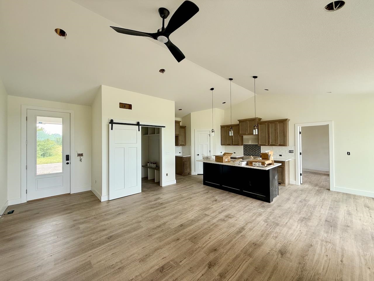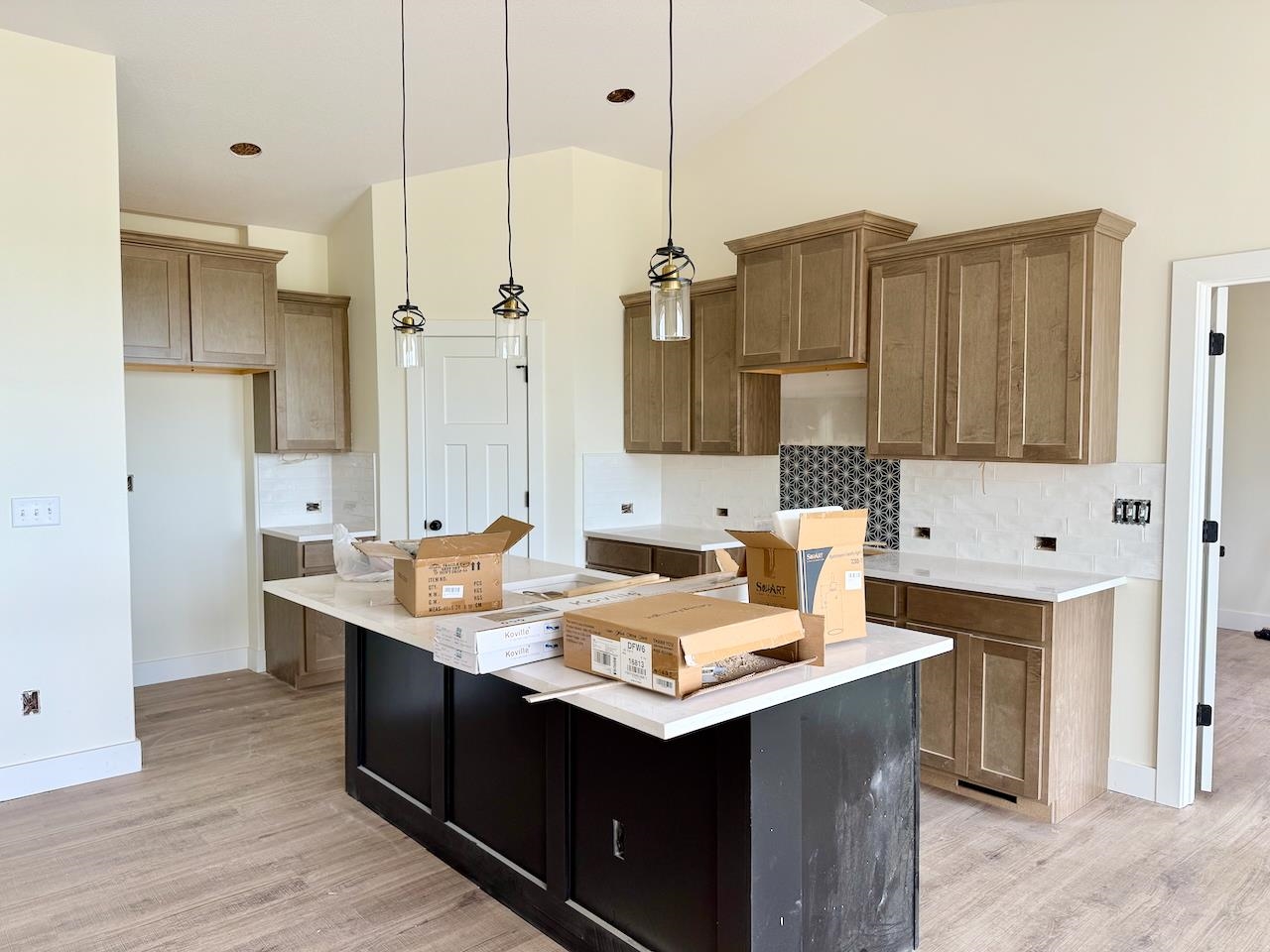 - Description: Discover the Anne Marie Plan by Homes-R-Us—where timeless architecture meets modern comfort in a truly one-of-a-kind lakefront setting. Nestled on a unique lot bordered by HOA green space and a natural land bridge between two serene lakes, this home is surrounded by mature trees offering privacy and picturesque views. Enjoy vaulted ceilings, LVP flooring, and a cozy electric fireplace in the spacious living room. The gourmet kitchen boasts quartz countertops, abundant cabinetry, and a walk-in pantry. A generous dining area showcases large picture windows framing lake and wooded views. The luxurious primary suite features a dual vanity, tile shower, and walk-in closet with seasonal hanging. Two additional bedrooms and a full hall bath complete the main floor. The mid-level walk-out leads to a sprawling covered patio—your private retreat among the trees. The basement is ready for your vision, with a proposed layout including a family room, wet bar, 2 bedrooms, and full bath. Choose to finish it with the builder or create instant equity over time. Just a short stroll to the neighborhood pool, playground, and basketball court—this home has it all! This home is currently under construction and pricing is subject to change without notice prior to a contract. Some information may be estimated and is not guaranteed. Please verify schools with USD 262. Show all description