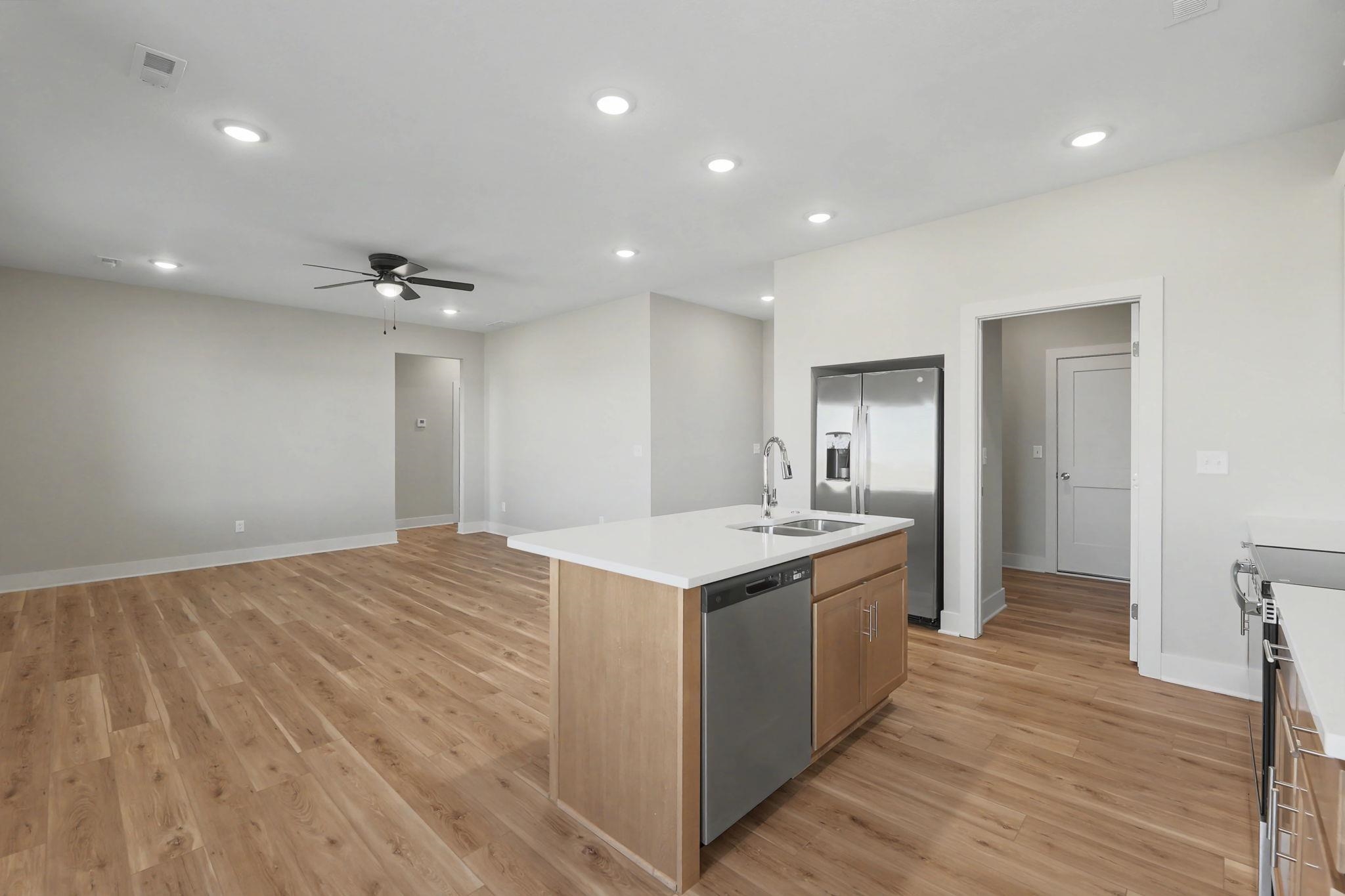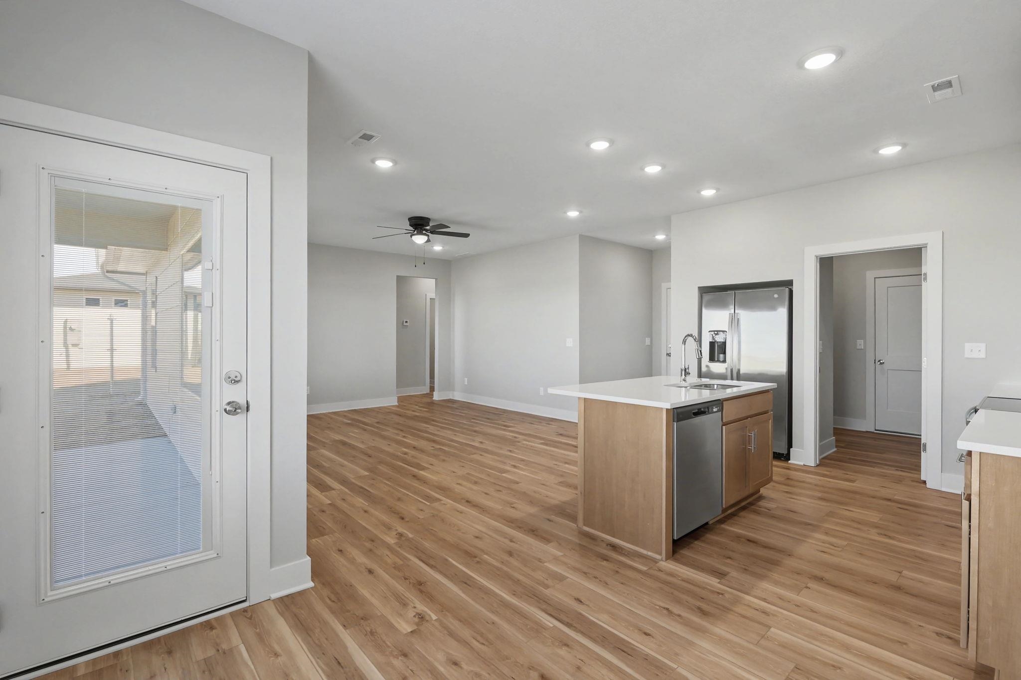 - Description: Beautiful 4-bedroom, 2-bath split-bedroom home featuring modern finishes and a functional layout! This slab-built home offers an open kitchen with a quartz-topped eating bar and great flow for everyday living and entertaining. The private split-bedroom design provides separation for the primary suite, while both bathrooms feature stylish quartz countertops. The large fenced backyard with sprinkler system is perfect for relaxing, pets, or play. Move-in ready with thoughtful upgrades throughout! Show all description