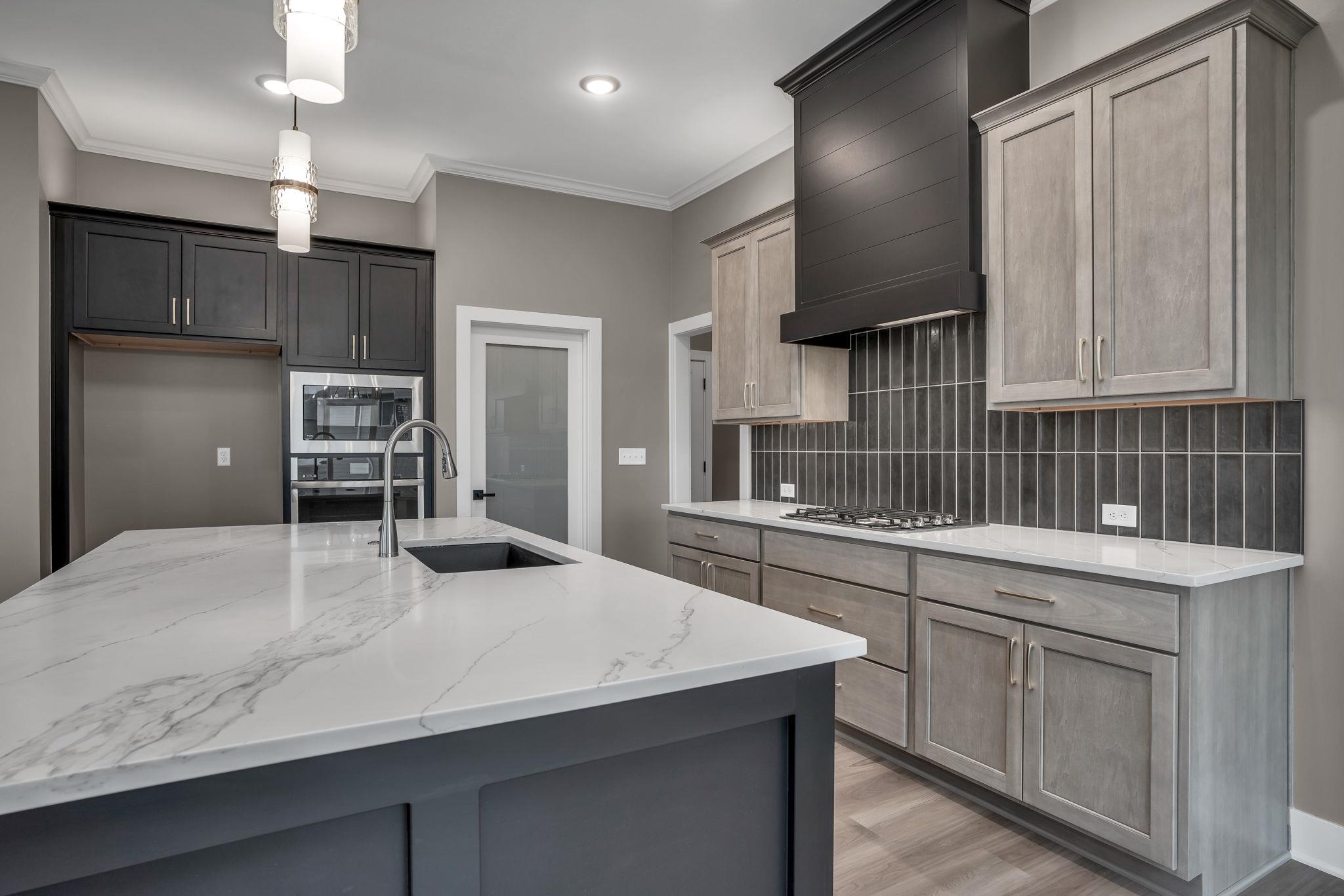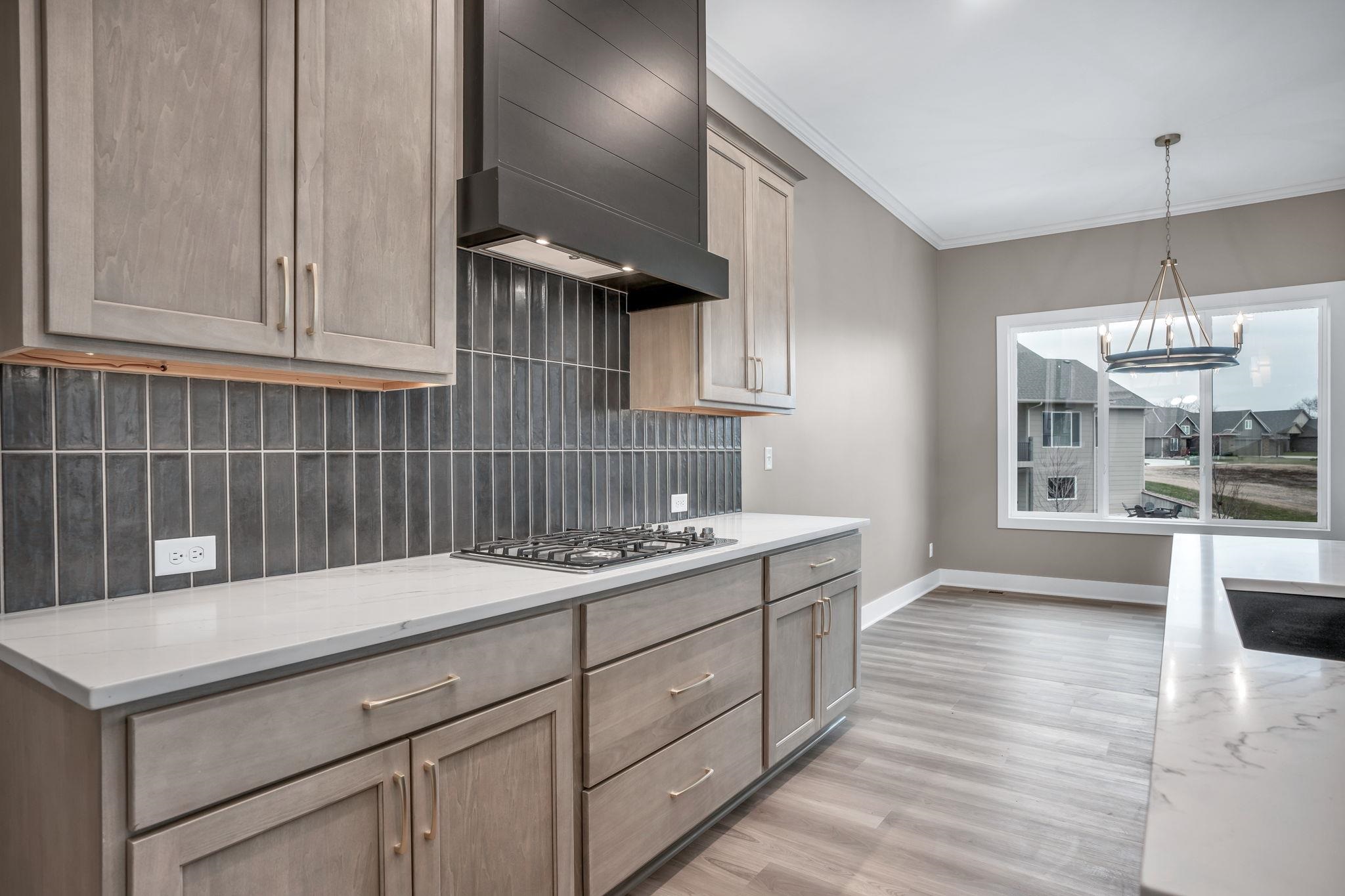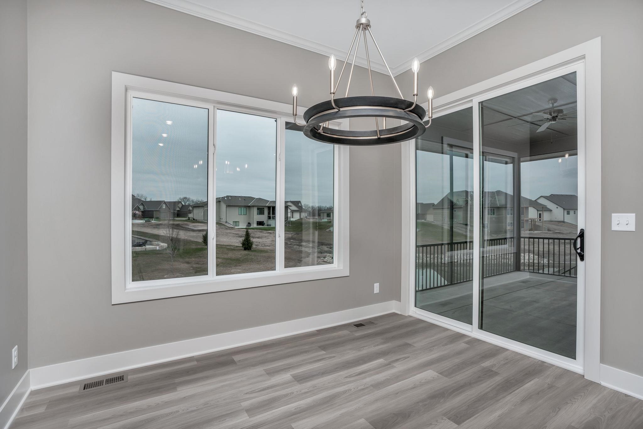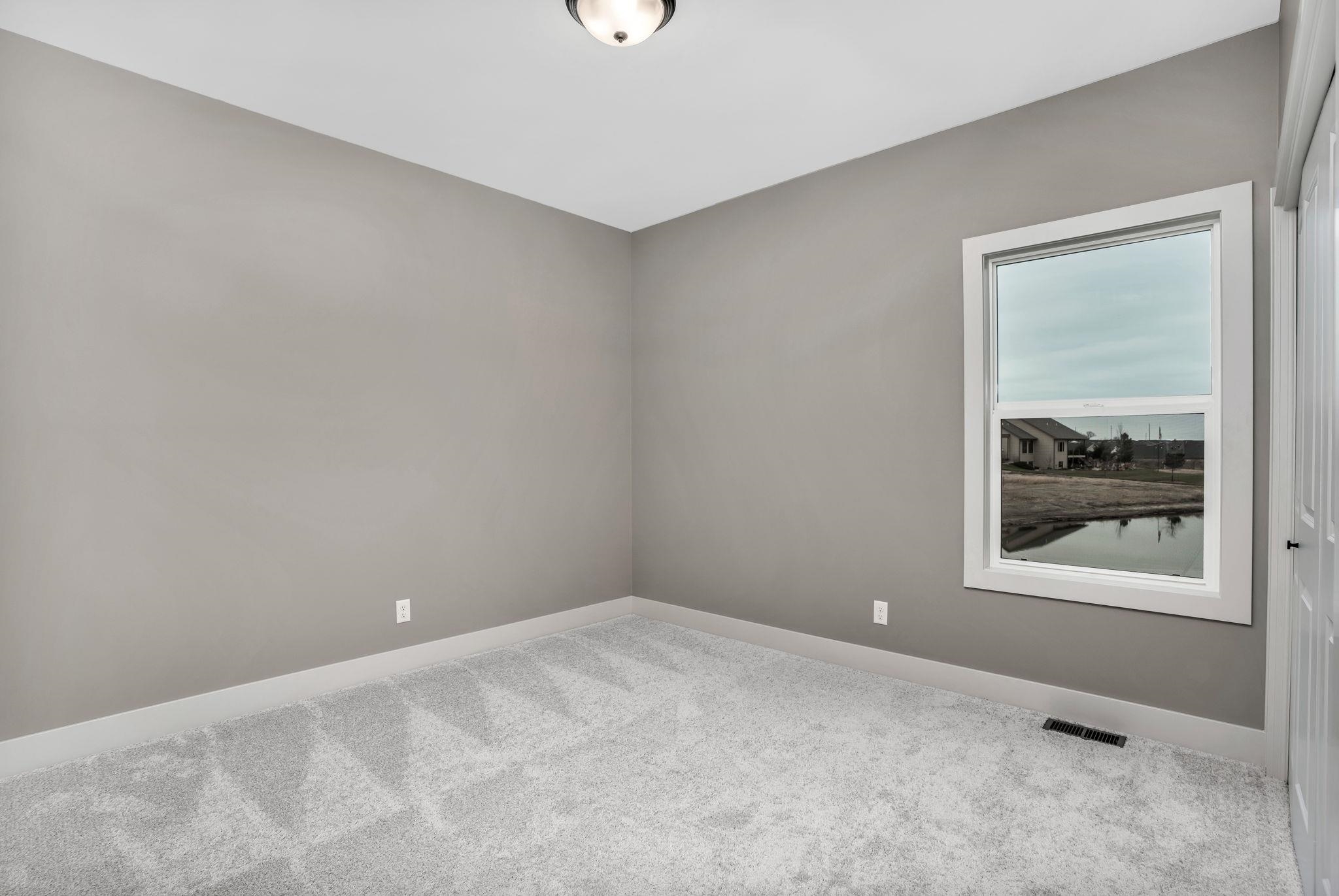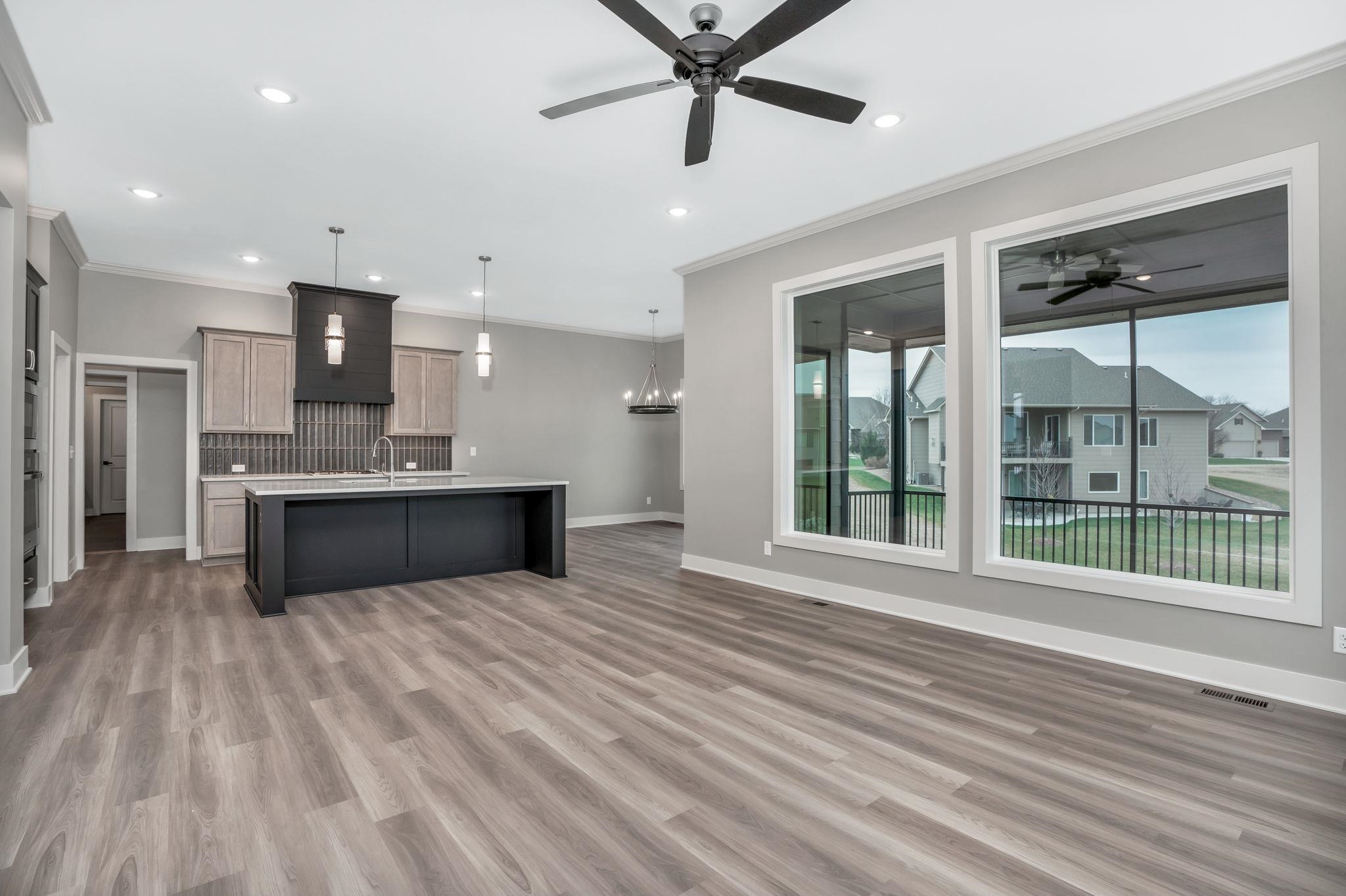 - Description: Luxury waterfront living with a small town feel! Nestled in a quite neighborhood in Bel Aire sits this modern masterpiece built by H&H Homebuilders. Upon entering this home you will be immediately captivated by the -truly- grand foyer with 11" box ceilings! Immediately to the right of this split floorplan you will find two bedrooms with generously sized closets and the guest bathroom. When entering into the living room you will be blown away by the modern tile feature wall with built in windows which highlight the view of one of the communities stocked ponds! The living room is not only spacious, but it is also cozy with a modern electric fireplace and custom mantel! This home is an entertainers dream starting in your chef's kitchen with an oversized island, gas range, custom exterior vented rangehood, and walk in panty. Off the dining room you will find direct access to your screened in and covered concrete deck which allows for the perfect flow for indoor and outdoor entertaining! Enter into your owner's suite, where the modern design continues, with a decorative feature wall. The owner's suite is as beautiful as it is functional with the luxury of a double vanity, large linen cabinet, and a zero-entry custom tile shower with a built-in niche and bench! You will also fall in love with the spacious master closet with a built-in dresser and custom shelving including off season & long hanging space. Did we mention how well thought out and convenient this floor plan truly is? The laundry room located directly off the master bath and directly across from the drop zone making this plan exceptional for both form and function. The unfinished walk-out basement allows for you to grow at your own pace and customized the space to your liking and it is already plumed for a wet bar! The basement also includes a safe room! Added perks: A whole home humidifier! (sprinkler, sod, and landscaping coming soon!) Show all description
