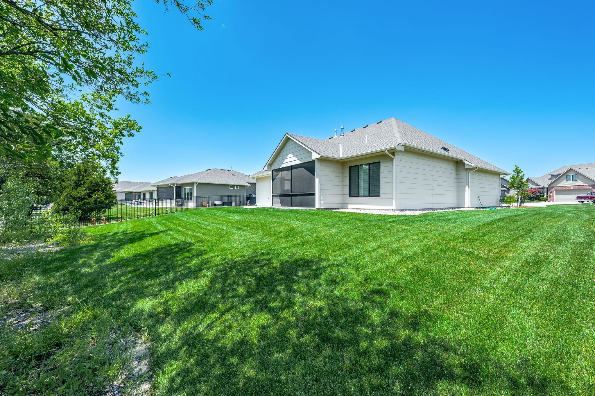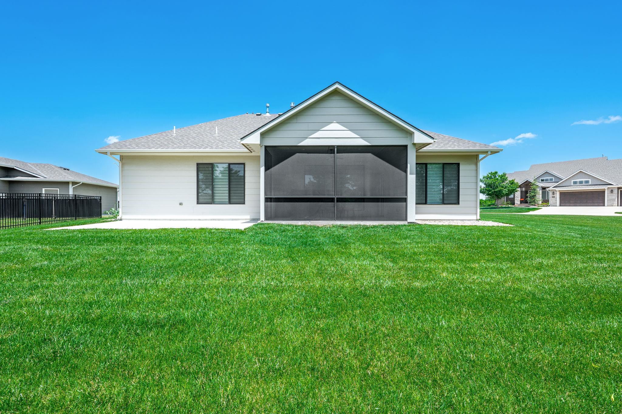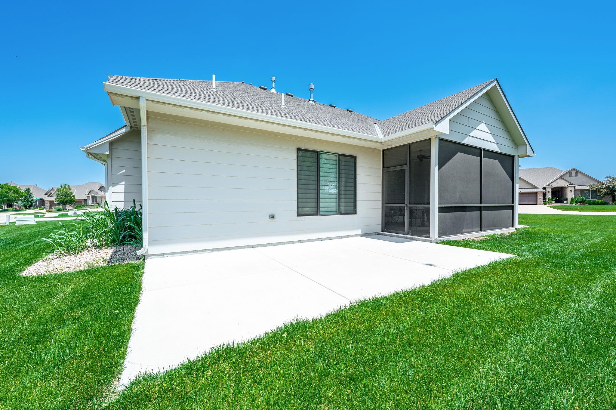 - Description: Nestled on a sprawling corner lot with loads of privacy this zero entry home is one of a kind! Offering the perfect blend of modern design and cozy charm. From the moment you step inside, the zero entry layout welcomes you with seamless transitions and an airy, open-concept flow between the kitchen, dining, and living areas—perfect for hosting gatherings or simply unwinding in style. You'll fall in love with the custom blinds that let in all the natural light you want! Picture yourself starting your mornings with a steaming cup of coffee on the screened-in back porch, soaking in the peaceful surroundings, or winding down in the evening with a gentle breeze and your favorite book. The bedrooms are generously sized and the closets provide more than ample storage, one of which doubles as a safe room! With high-end finishes, thoughtful details throughout, everything is as clean as a whistle and the three-car oversized garage is even epoxied for added convenience, this home is perfection! Show all description
