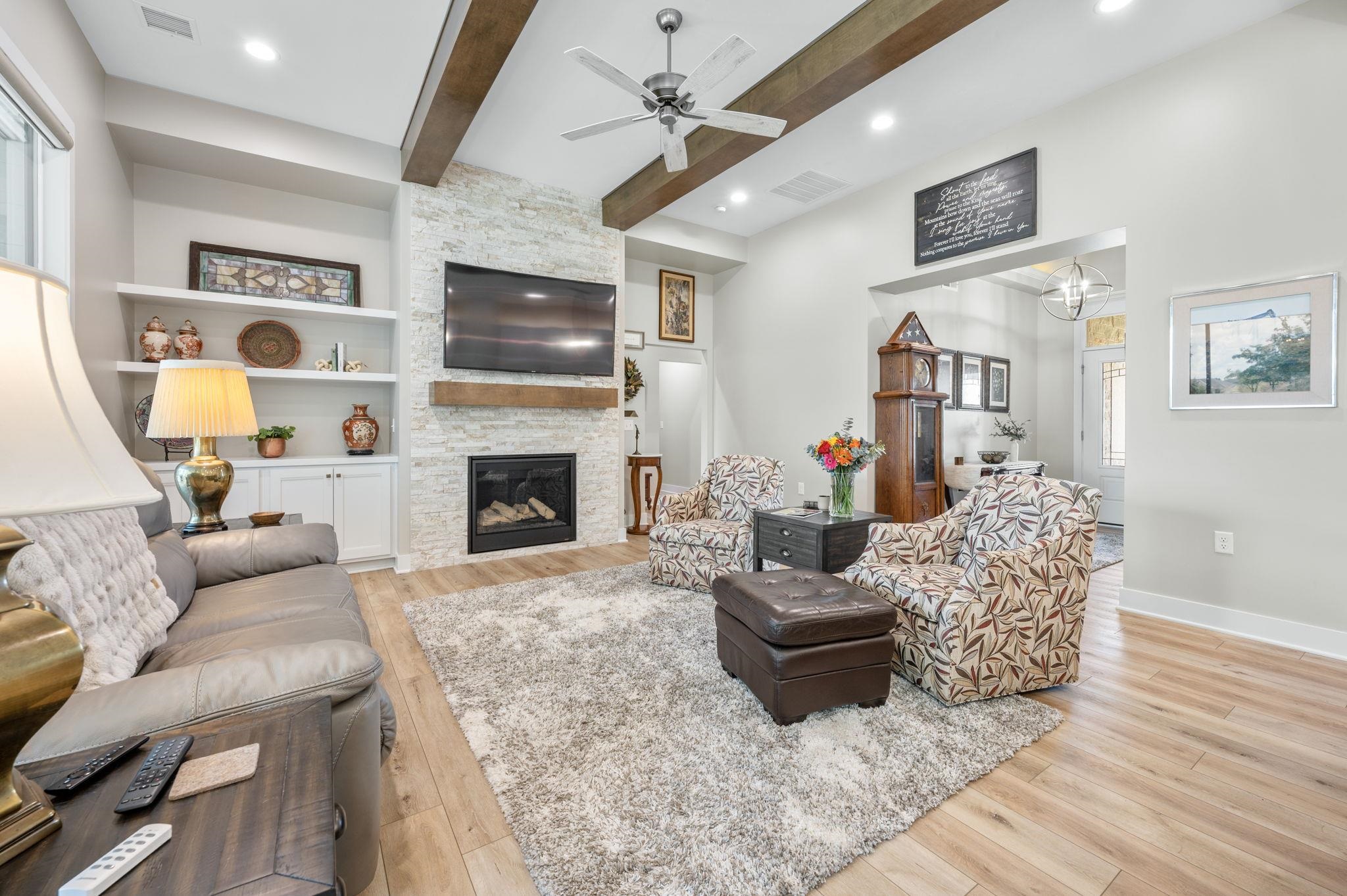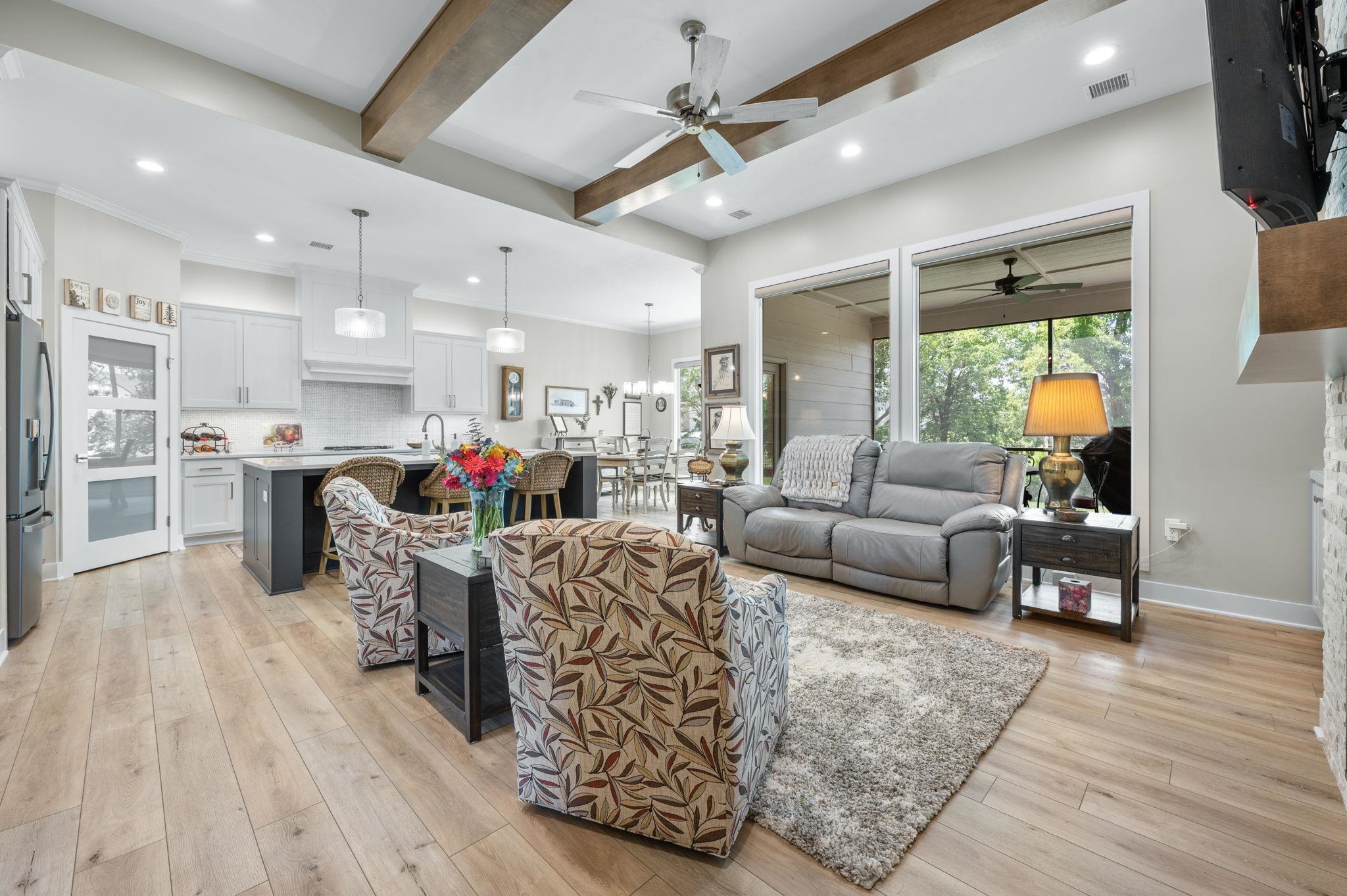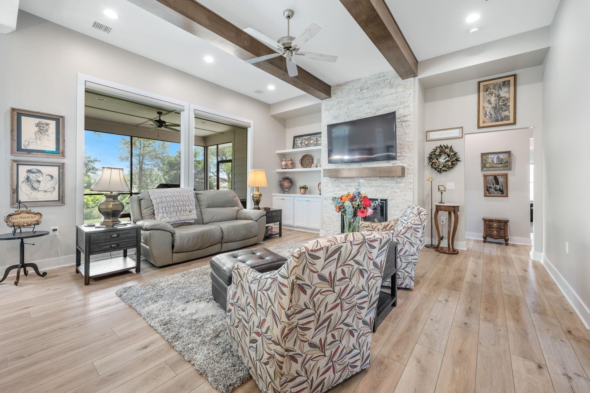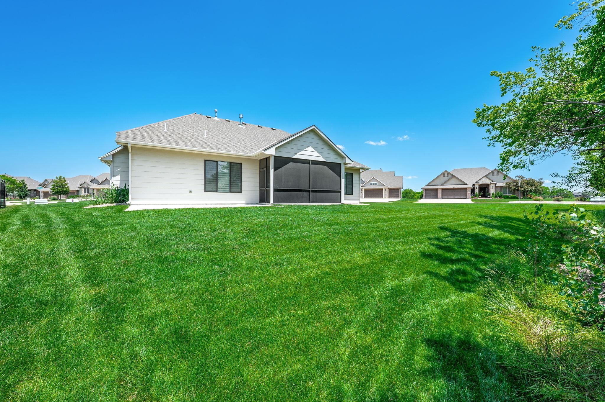 - Description: Nestled on a sprawling corner lot with loads of privacy this zero entry home is one of a kind! Offering the perfect blend of modern design and cozy charm. From the moment you step inside, the zero entry layout welcomes you with seamless transitions and an airy, open-concept flow between the kitchen, dining, and living areas—perfect for hosting gatherings or simply unwinding in style. You'll fall in love with the custom blinds that let in all the natural light you want! Picture yourself starting your mornings with a steaming cup of coffee on the screened-in back porch, soaking in the peaceful surroundings, or winding down in the evening with a gentle breeze and your favorite book. The bedrooms are generously sized and the closets provide more than ample storage, one of which doubles as a safe room! With high-end finishes, thoughtful details throughout, everything is as clean as a whistle and the three-car oversized garage is even epoxied for added convenience, this home is perfection! Show all description