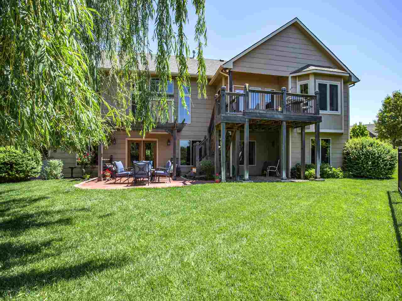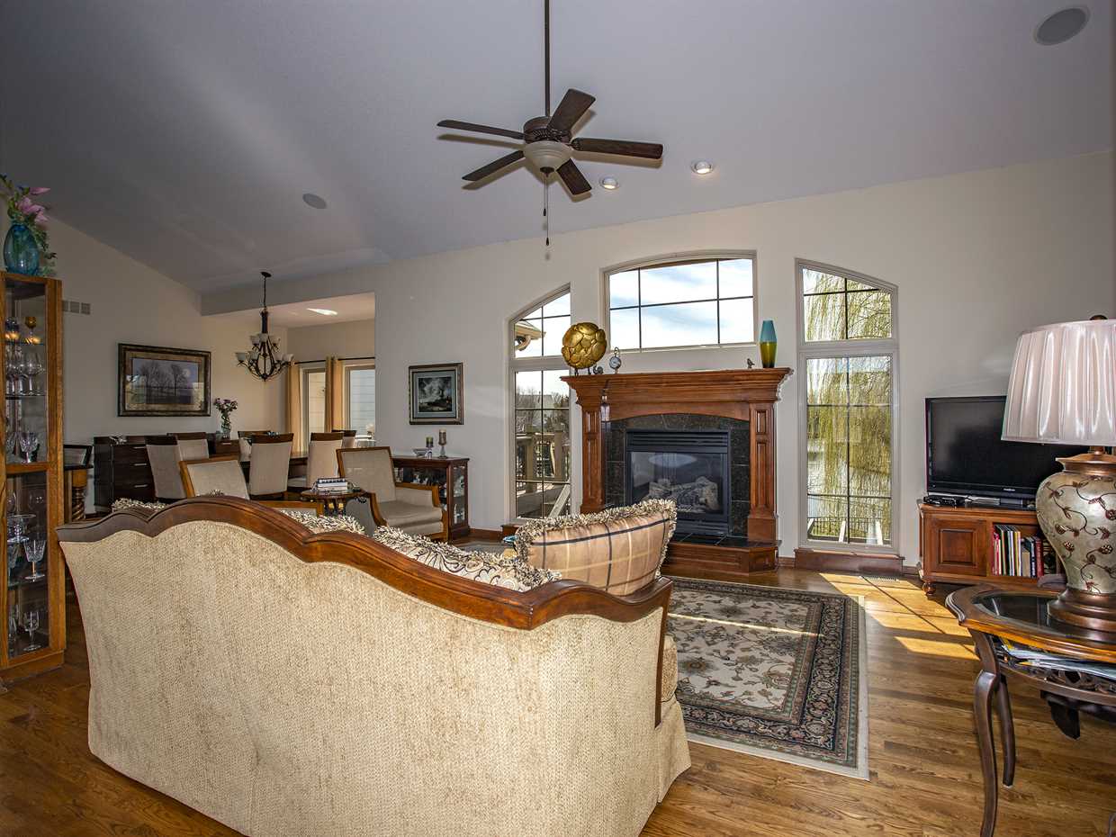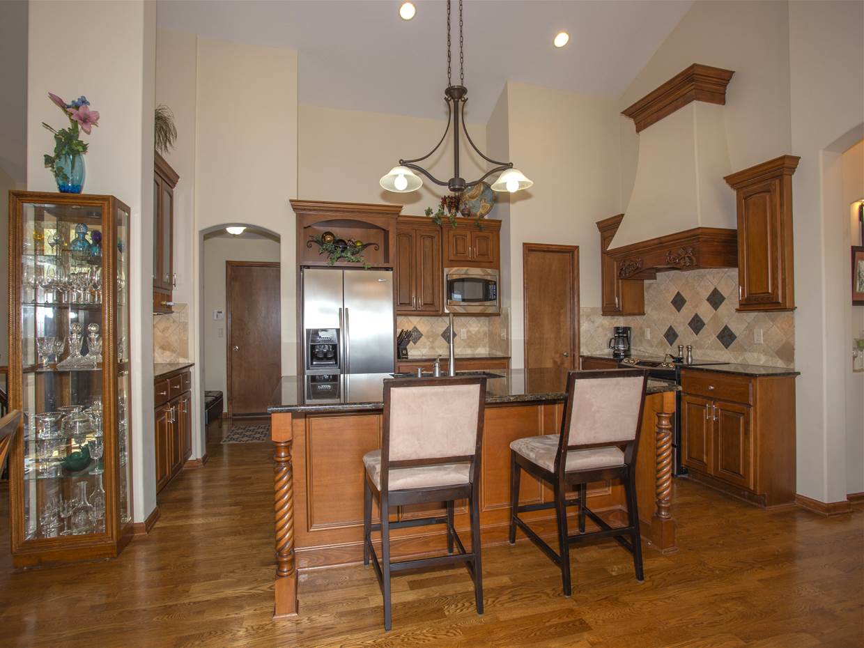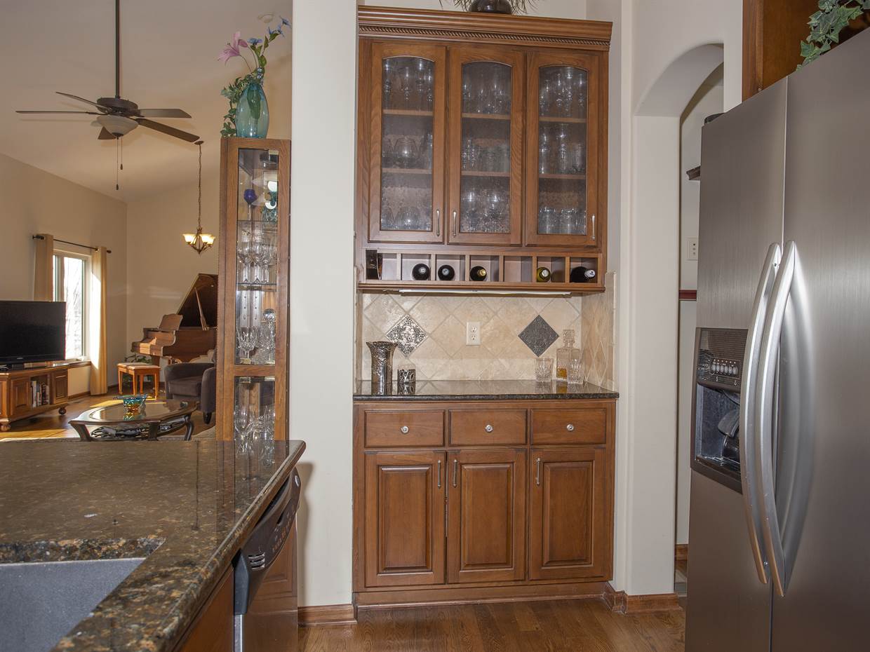 - Description: THIS CUSTOM-BUILT, ONE OWNER, LAKESIDE RANCH HAS METICULOUS ATTENTION TO DETAIL INSIDE & OUT! LOCATED IN CITY OF WICHITA & ANDOVER SCHOOLS, IT OFFERS THE BEST OF BOTH WORLDS & INCLUDES SUCH STUNNING VIEWS - YOU'LL FEEL LIKE YOU'RE ON VACATION EVERYDAY! ORIGINALLY A 3 BEDROOM PLAN, THE FLEX SPACE ALREADY HAS A CLOSET & COULD EASILY BE CONVERTED OR BECOME A WONDERFUL MAIN FLOOR OFFICE/DEN SPACE - YOU DECIDE! HIGH QUALITY FINISHES THROUGHOUT INCLUDE GRANITE & TRAVERTINE COUNTER-TOPS, HARDWOOD FLOORS ON MAIN LEVEL, HARDWOOD STEPS TO BASEMENT, FULL BRICK/STONE FRONT FACADE, OVER-SIZED CIRCULAR DRIVE, OPEN CONCEPT LIVING SPACES, GENEROUS ROOM SIZES & TONS OF STORAGE! THERE IS EVEN A DEDICATED FENCED SPACE FOR YOUR BEST FRIEND OFF THE SIDE-YARD GARAGE ENTRY. BUILT-IN SPEAKERS THROUGHOUT THE HOME & EVEN OUT BACK SET THE MOOD - EACH ZONE CAN BE CONTROLLED INDEPENDENTLY! THE SPECIAL TAXES PAY OFF IN 2023 - A MONTHLY SAVINGS OF $155! THE INTERIOR DETAILS ARE IMPRESSIVE, BUT THE LAKE LOT OFFERS SUCH SPECTACULAR VIEWS, YOU'LL FORGET YOU ARE IN KANSAS! IMAGINE THE SUNSETS! YOU WON'T BE DISAPPOINTED UNLESS YOU LET THIS ONE GET BY! CALL TO PERSONALLY TOUR THIS LOVELY HOME TODAY! Show all description