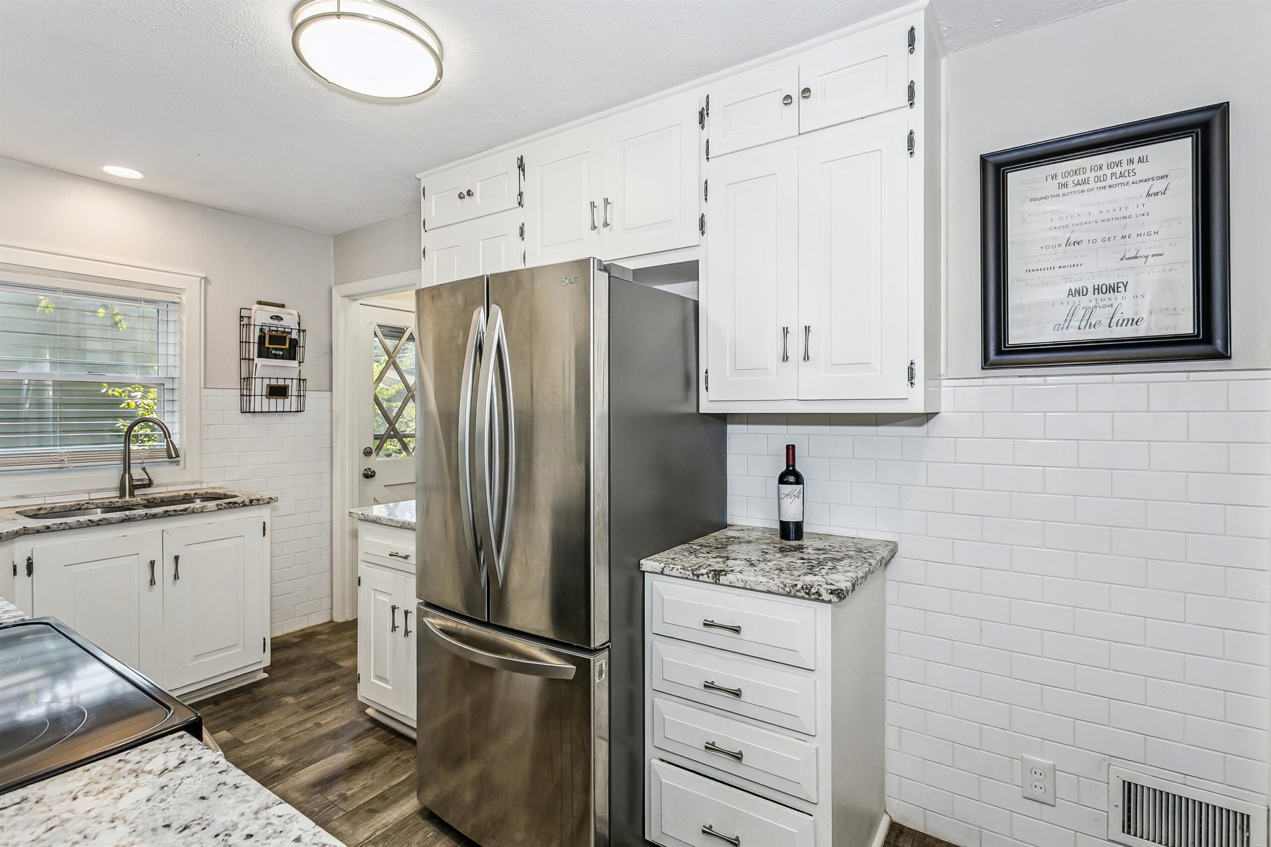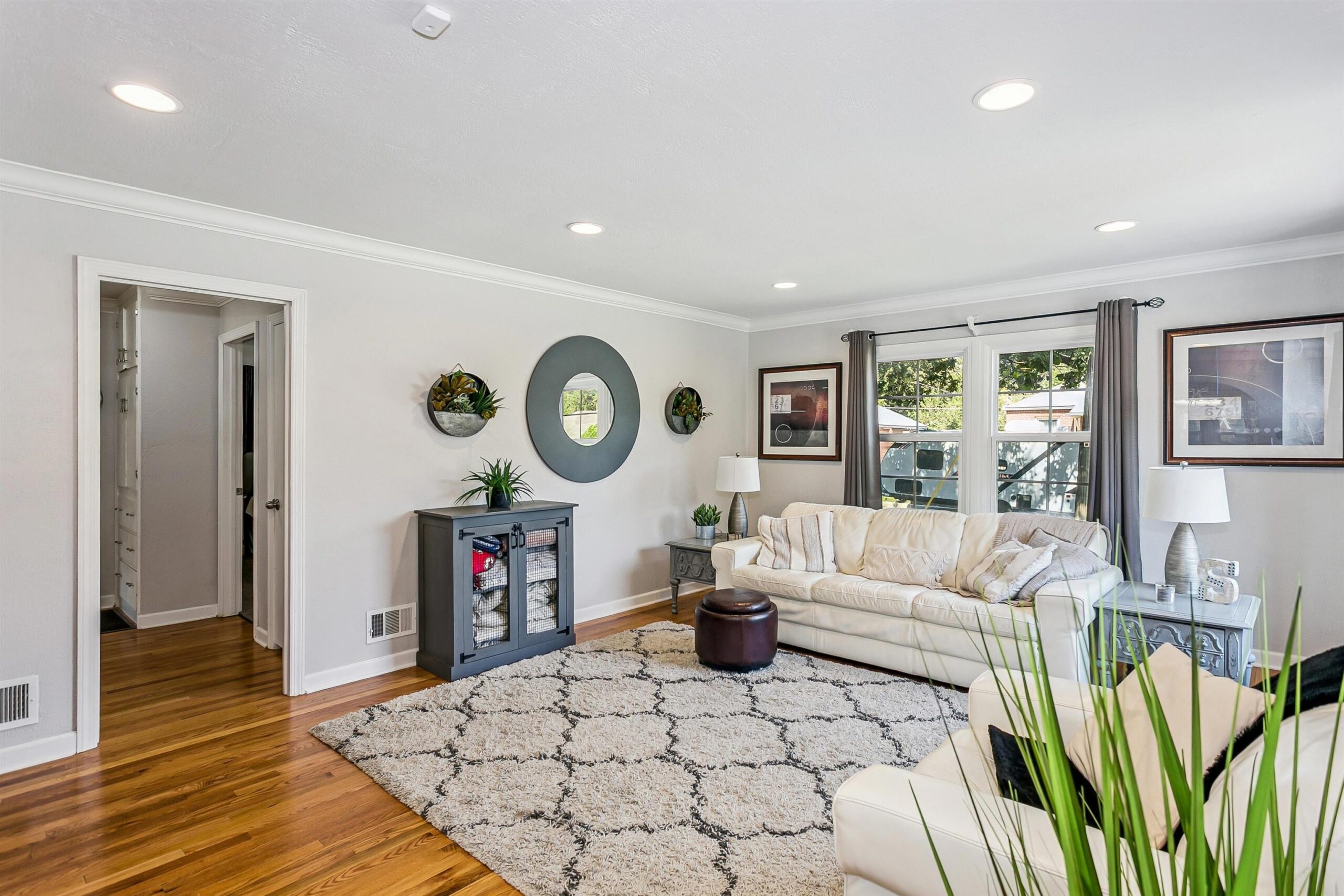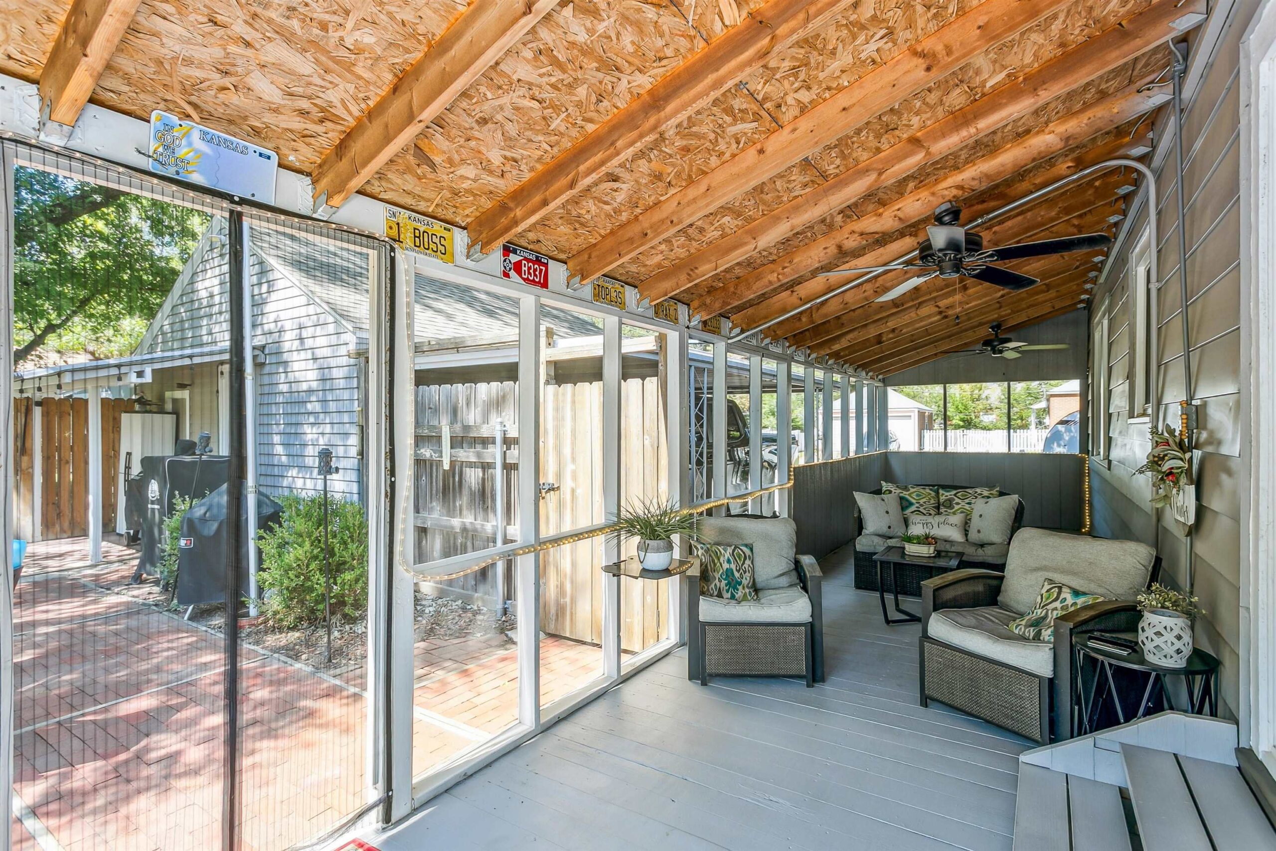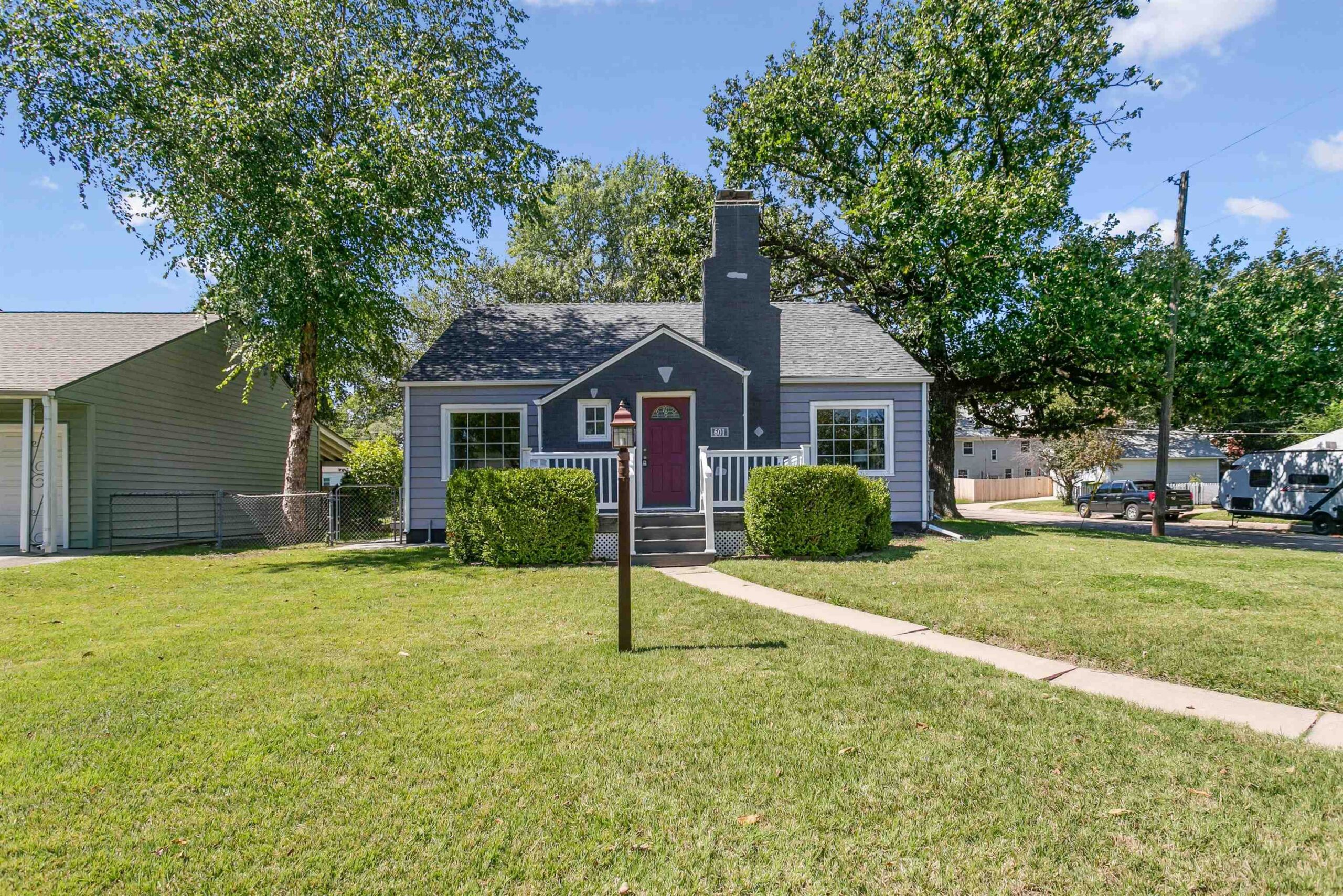 - Description: Welcome to 601 S. Bluff — a thoughtfully updated home offering approx. 1, 958 sq ft of living space. The bright kitchen is a focal point with crisp white cabinetry, stainless steel appliances and granite countertops, opening to light-filled living areas enhanced by beautiful oak hardwoods on the main level. Three comfortable bedrooms and a well-appointed full bath provide an ideal layout for everyday living. The finished lower level with new carpet expands your usable space — perfect for a family room, home office or hobby area. Outdoor living shines with a large screened-in porch and brick patio overlooking a separately fenced grassy area for kids or pets. Practical amenities include two storage sheds, a two-car garage plus carport and double-gate access for RV, boat or trailer parking. Major systems were updated about 6 years ago with a newer AC, roof and replacement windows, offering peace of mind. Convenient to shopping, schools and parks, this home blends curb appeal, storage and functionality at an attractive price. Show all description