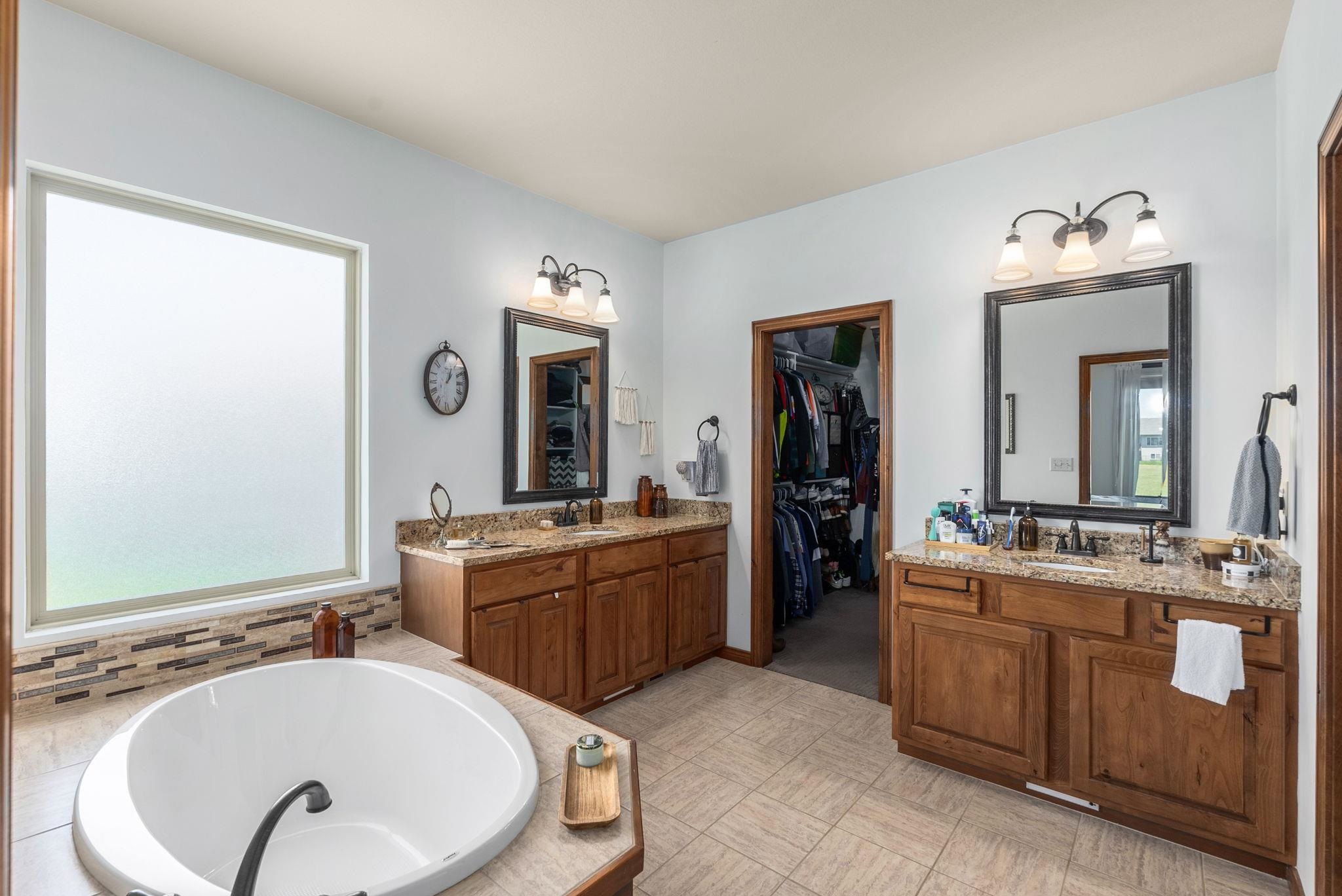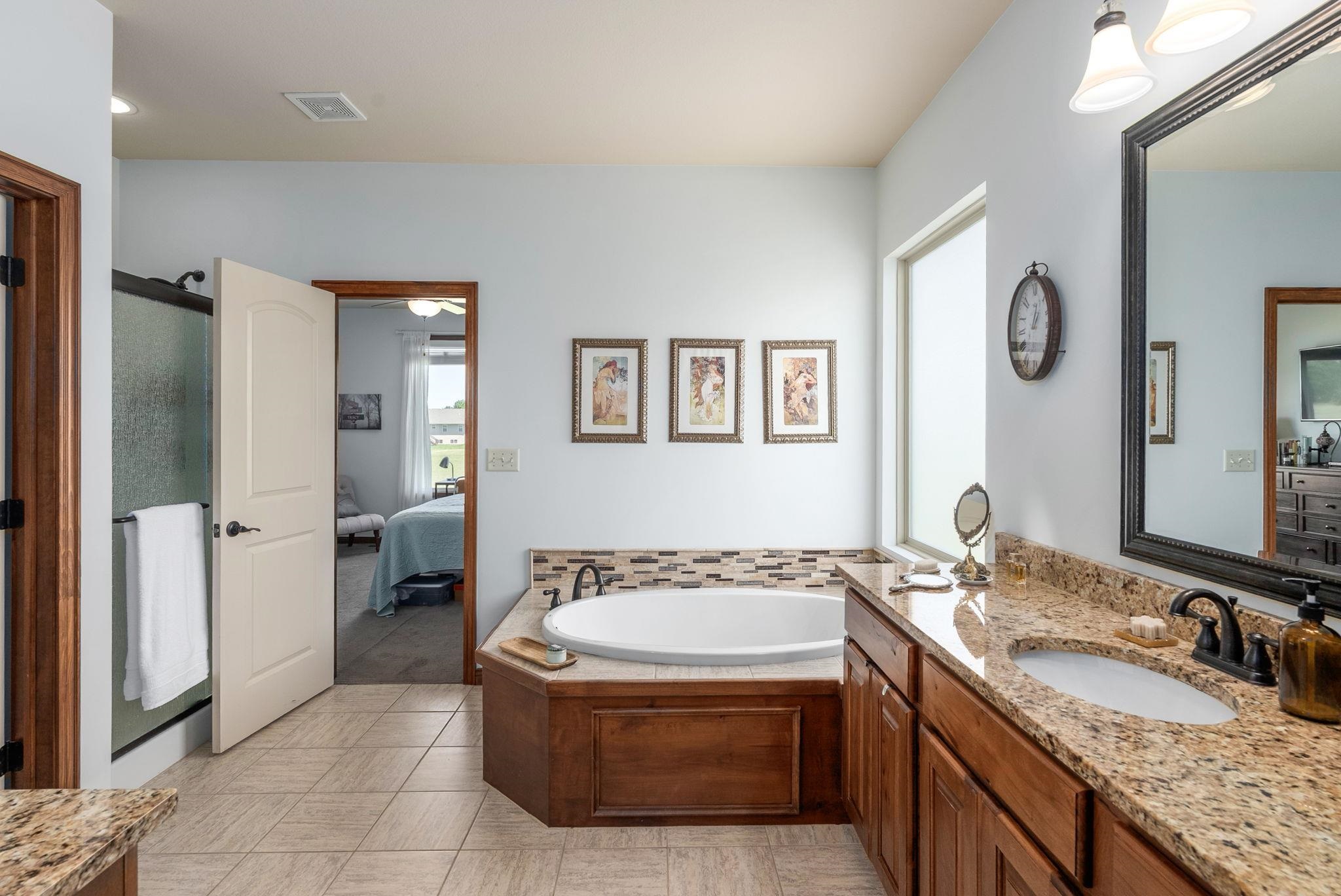 - Master Bedroom: Master Bdrm on Main Level, Split Bedroom Plan, Master Bedroom Bath, Sep. Tub/Shower/Mstr Bdrm, Two Sinks, Granite Counters