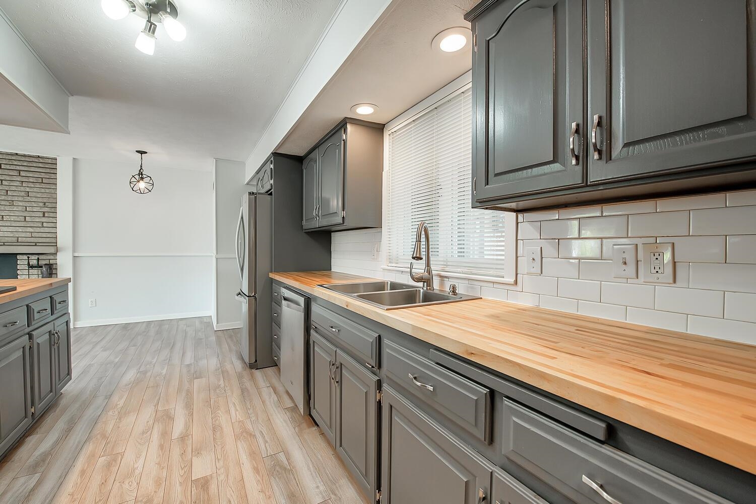 - Description: Discover this stunning Mid-Century Modern gem situated on a desirable corner lot in Northeast Wichita. The spacious kitchen features an inviting eating bar that seamlessly opens to a bright, naturally lit living space. A timeless fireplace creates a subtle yet stylish divide between two cozy living areas, offering an ideal layout for entertaining. Step outside to a covered back patio—perfect for gatherings—and envision the backyard’s potential for an outdoor kitchen. Located just minutes from a variety of dining and shopping options, this home offers both charm and convenience. Don’t miss your chance to see it today! Show all description