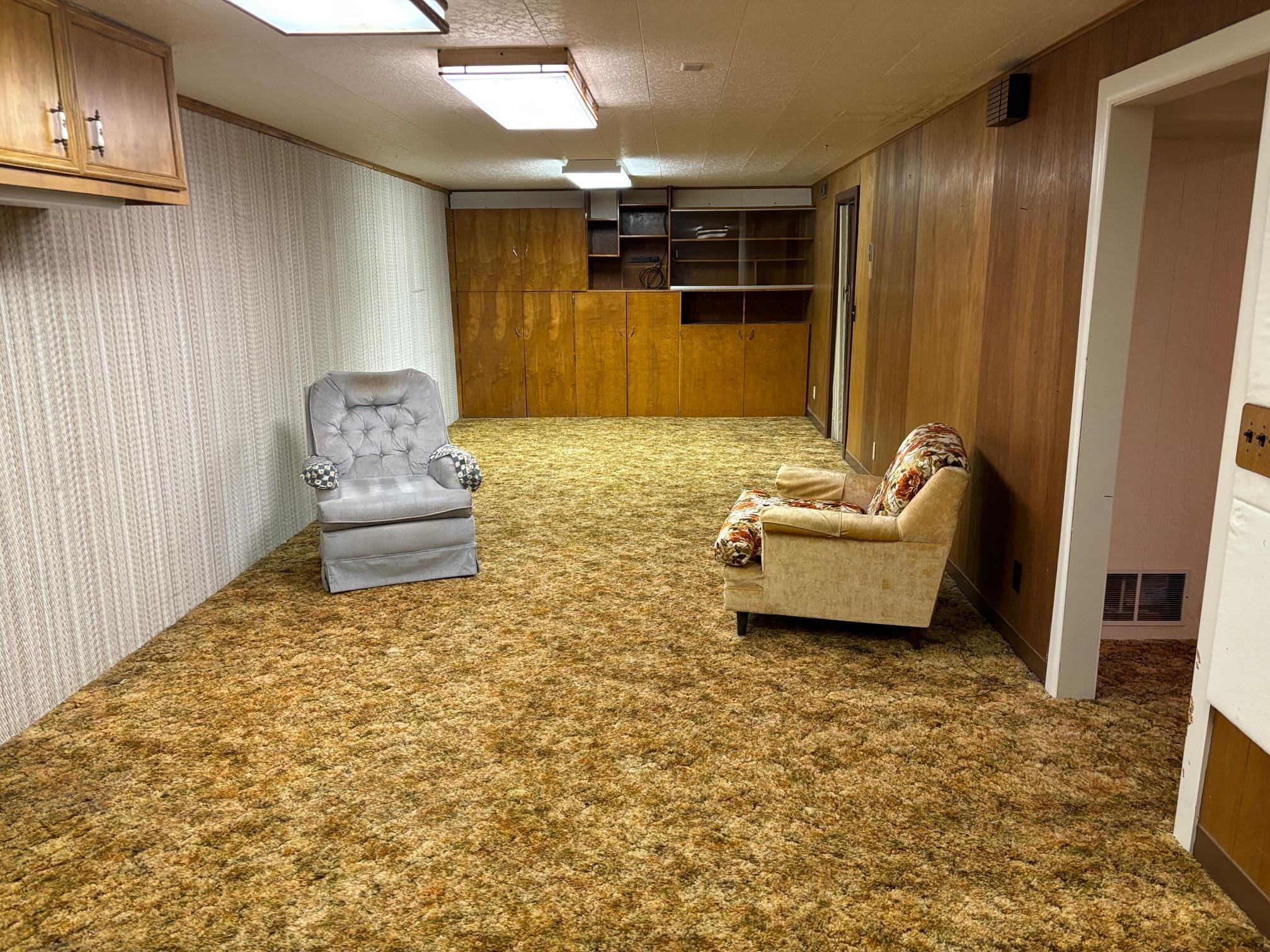 - Description: What great value in this 3 bedroom, 1.5 bath with full basement. Prior owner was a custom woodworker and built many built-in cabinets. Bathroom has been updated and features a large vanity and recently replaced tub and shower heads. The basement has a large 31x11 family room. One of the best features of this home is the huge 20X34 garage with 12' overhead door. This garage will hold 4 vehicles and has it's own heat and air system. It's designed for an RV and even has it's own sewer pump discharge and 2 220 volt outlets in the garage to run the RV if you wanted to live in the RV instead of the home. To rebuild this garage would be tens of thousands of dollars. There is also a large carport attached to the garage. Show all description