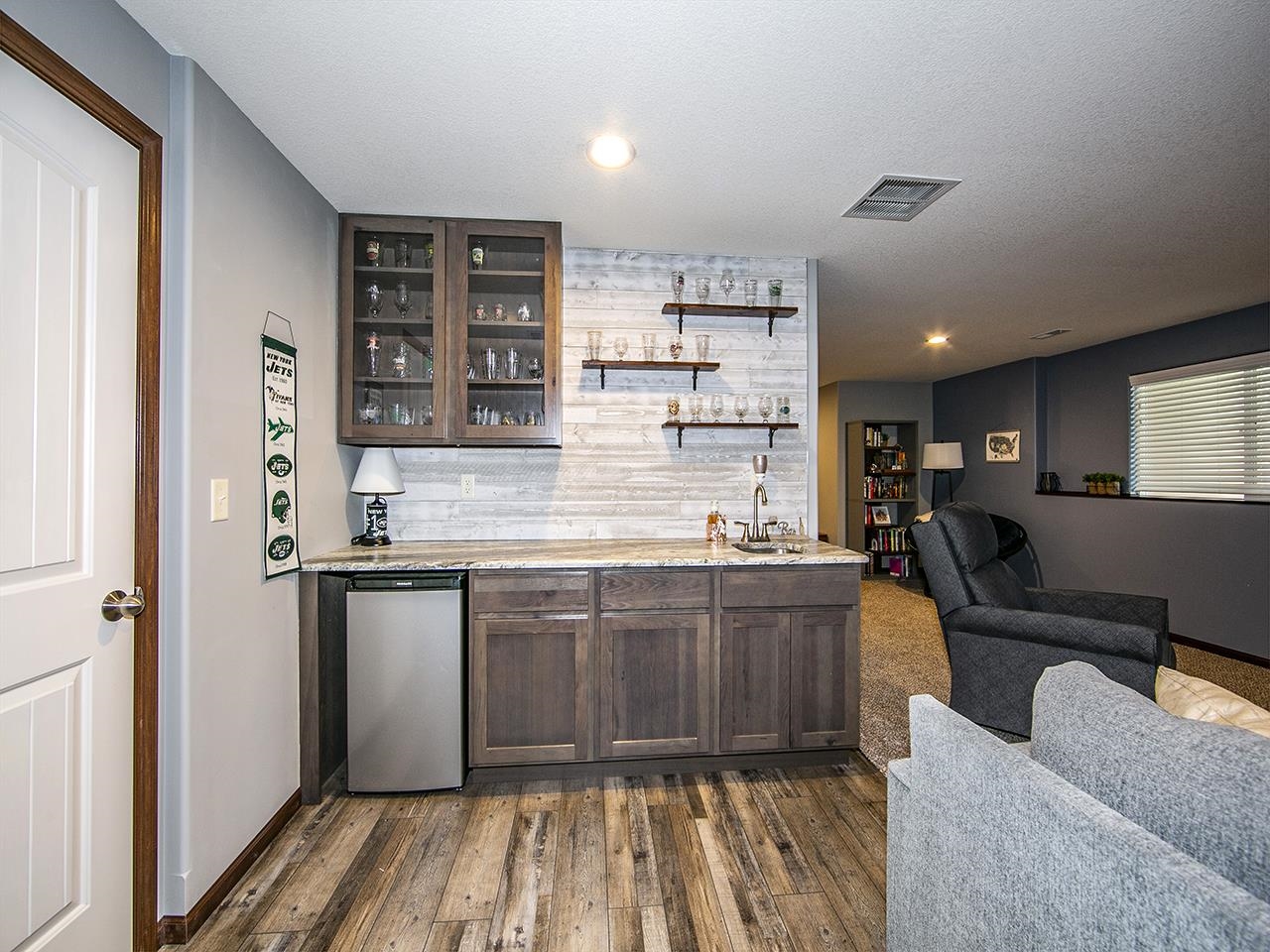 - Description: Don't miss this gorgeous home with NO special taxes. Lovey kitchen with wood flooring, granite countertops and a large pantry, too. Entertain in the large family room in basement featuring a new large electric fireplace that can have heat turned on or off. Super wet bar with unique granite top. Don't miss the darling lower level bath and it comes complete with 2 finished bedrooms in Basement. If you are looking for outside entertaining, look no more. Nice covered deck and lower level patio. Wood privacy fence completes the back yard so the doggies or Kiddies can play. This house is just what you are looking for if you want great decor and entertaining space... Show all description