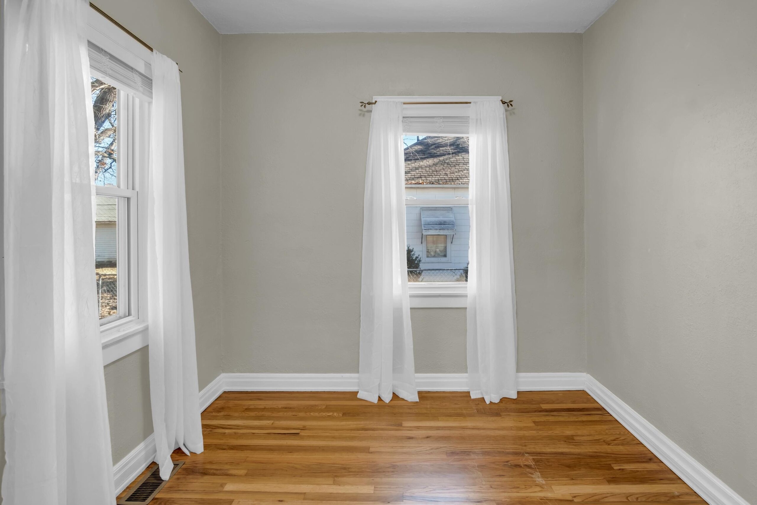 - Description: This just-darling cottage is full of charm and sunlight, with the Sand Creek walking path and a neighborhood park right at the end of the block. Windows throughout the home bring in wonderful natural light, highlighting the gorgeous refinished hardwood floors. Thoughtful upgrades include vinyl replacement windows, new exterior paint, a structural steel beam added by Thrasher Foundation, added attic insulation, and a new stove. A NEW ROOF in 2024 and HVAC updated in 2019 provide extra peace of mind. All kitchen appliances stay, along with the washer and dryer. A cheerful bonus room/sunroom makes the perfect studio, hobby room, or quiet retreat. Outside, enjoy the large fenced backyard with a storage shed, plus a single-car garage with opener. Move-in ready, full of character, and located in a wonderful walkable area—this cottage is truly a gem. Show all description