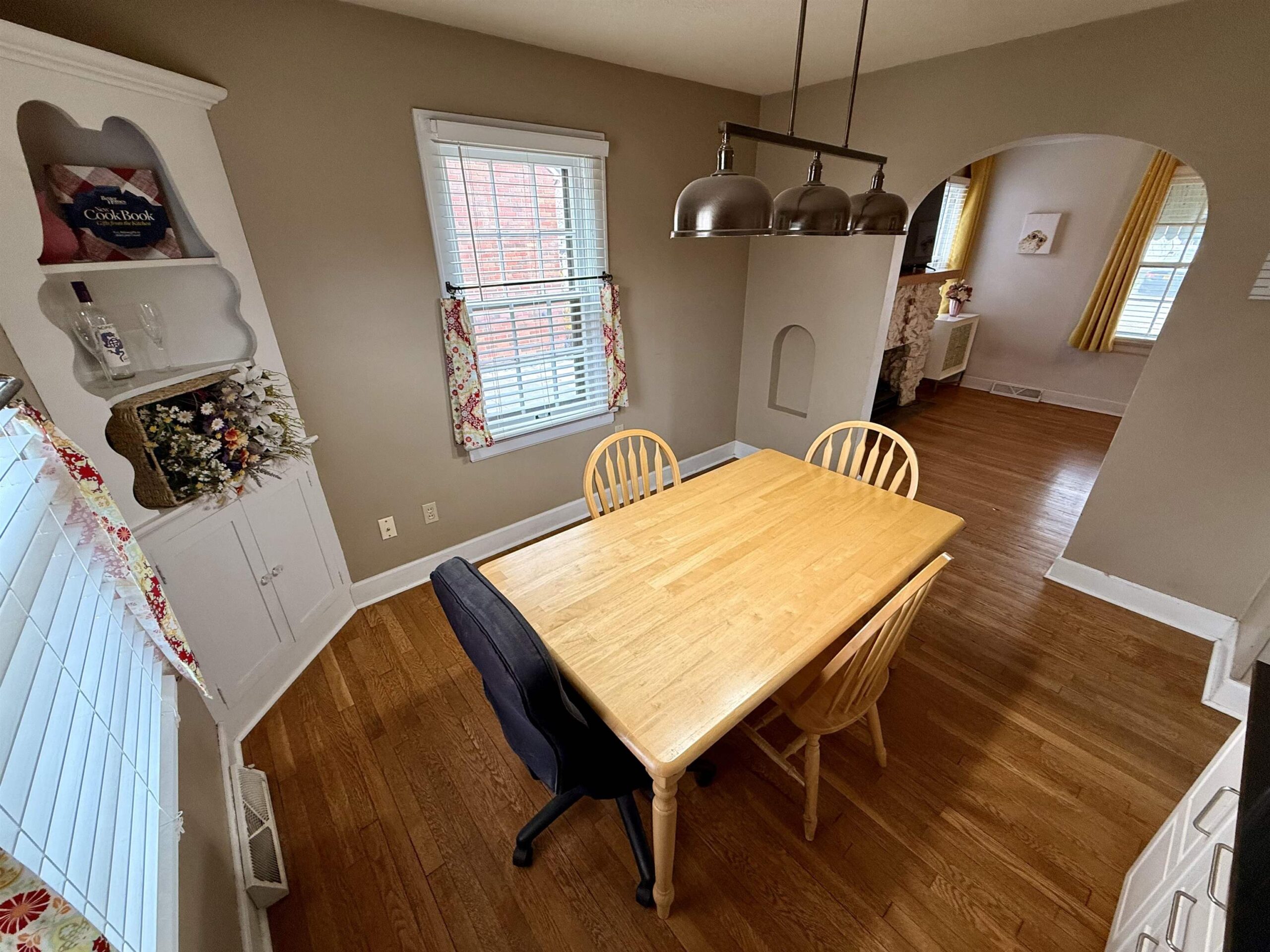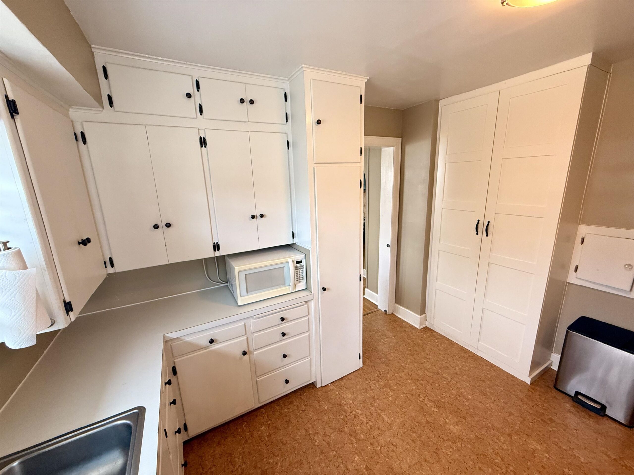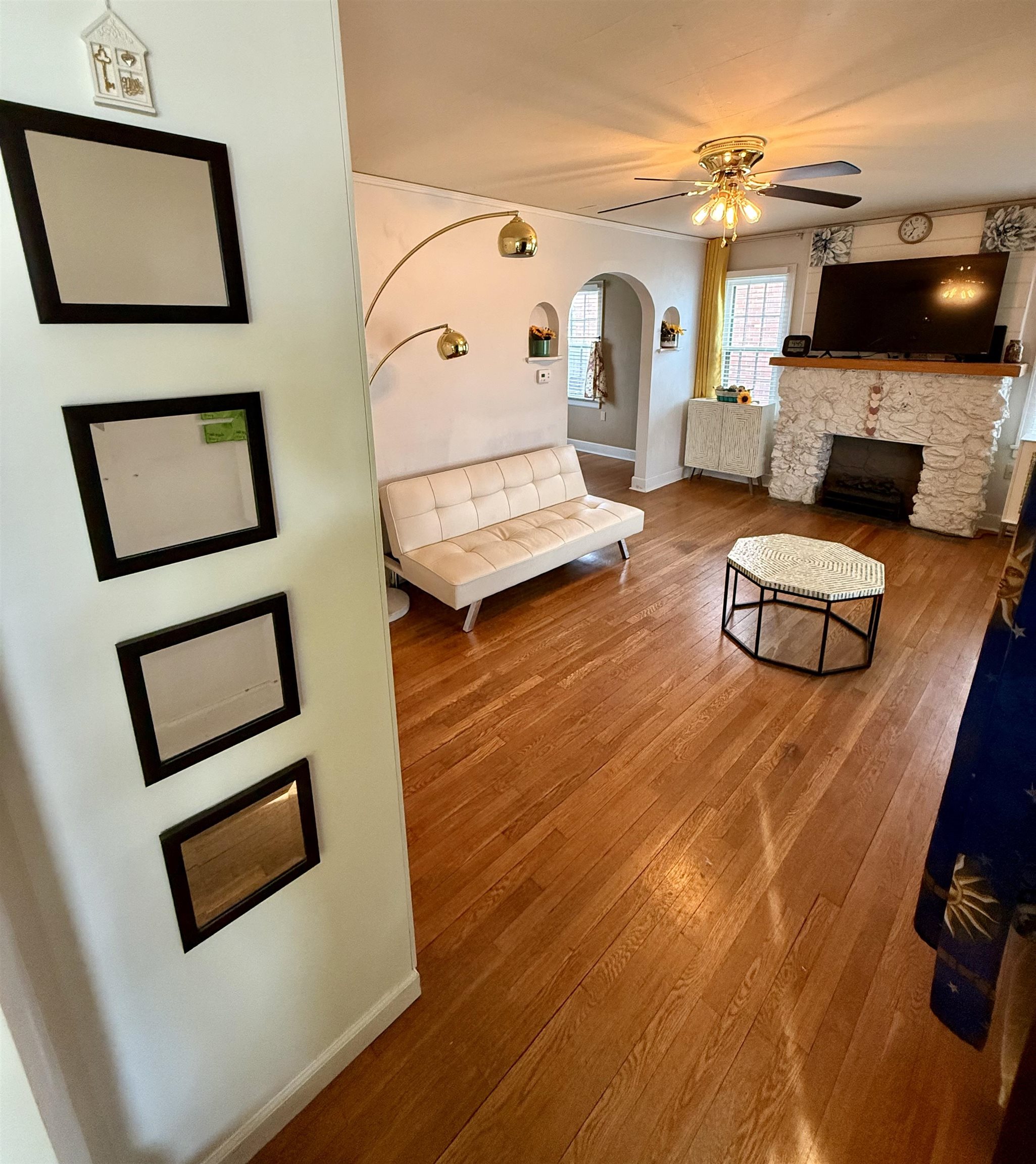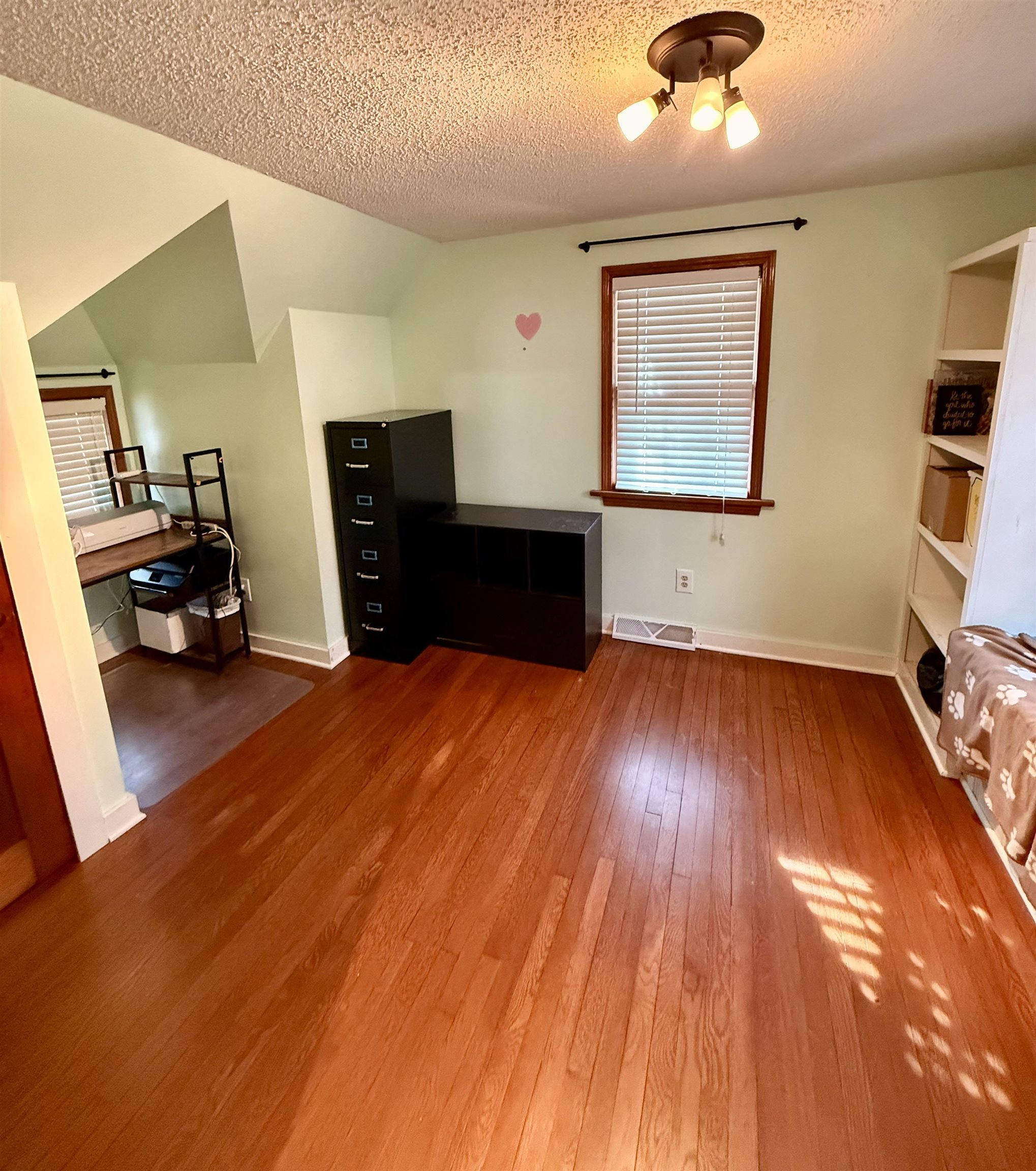 - Description: Enter into this spacious Bungalow style home with three large bedrooms and two bathrooms. When you enter, you go directly up the stairs to the vast bedrooms with a built in linen cabinet in the hallway, along with a laundry chute you can access from each level. Upstairs bathroom has a vanity with hidden storage compartments. The Master bedroom has a wall tv hook-up that will stay, including a floating shelf. A quant oversized closet with character that adds a nice touch. The adjoining bedroom boast unique built-in storage shelving and an ottoman-like toy box. Downstairs, on the main level, you will enjoy the original hard wood floors in the living and dining room. A stone fireplace with wooden mantle graces the living room. The dining room has a coffee cart that will stay. The kitchen boast plenty of storage and an over the stove pots and pans holder. All appliances stay (unless seller does not request to stay.) Downstairs has another spacious living area and a second full bathroom. Then unfinished storage room finishes the basement. The selling point to this house is the fenced in oversized backyard, which has & all! A fire pit with brick pavers, a chicken coop, and a large shed that sits on a cement slab. Call for a private showing today! Proudly offered by Kattie Johnson, Keller Willams Signature Partners, LLC. Show all description