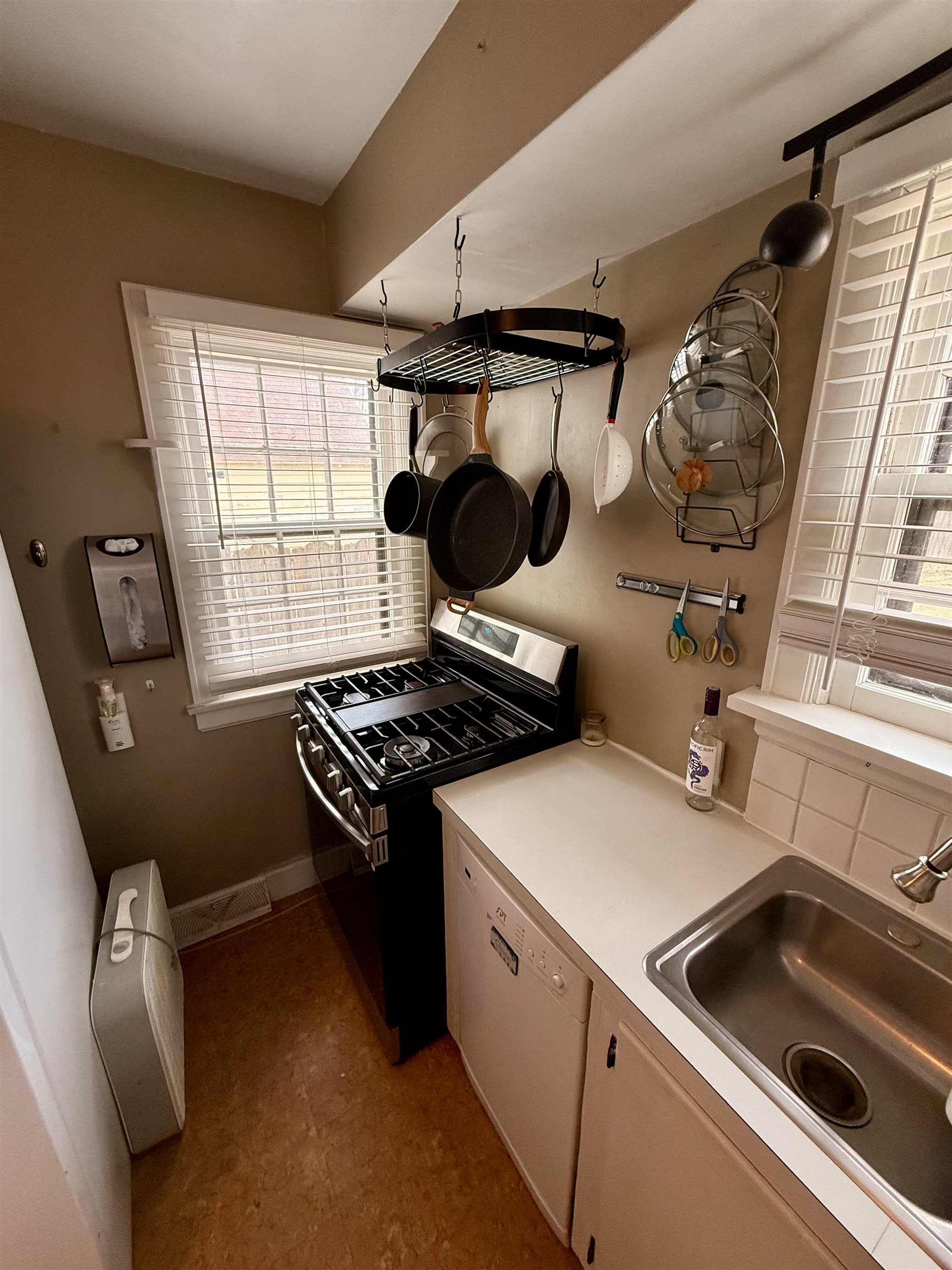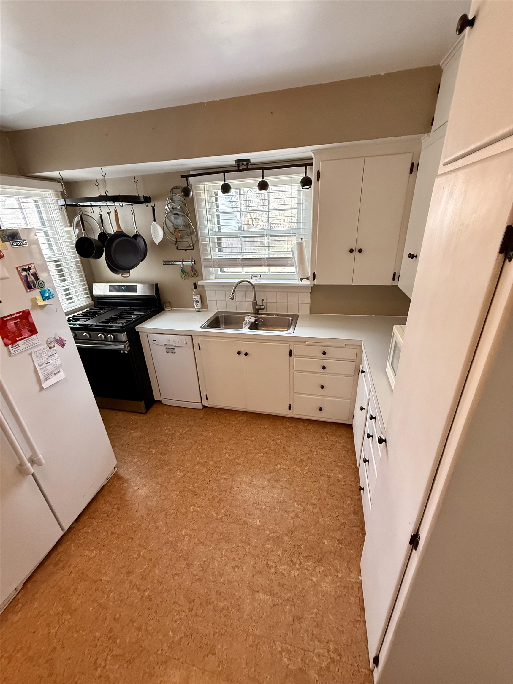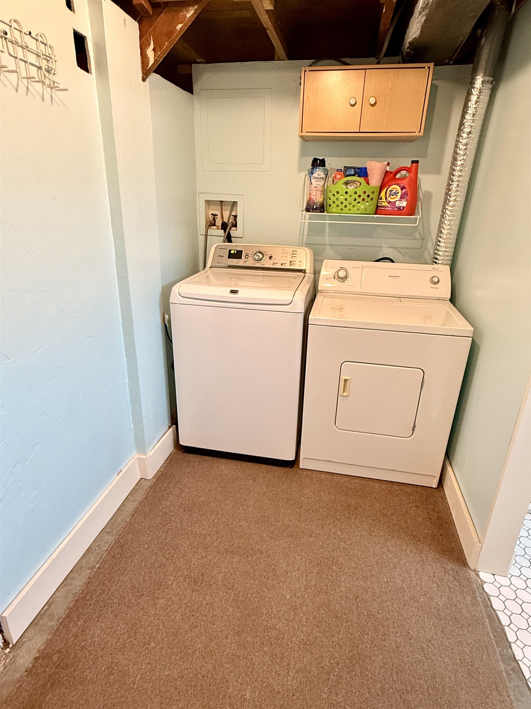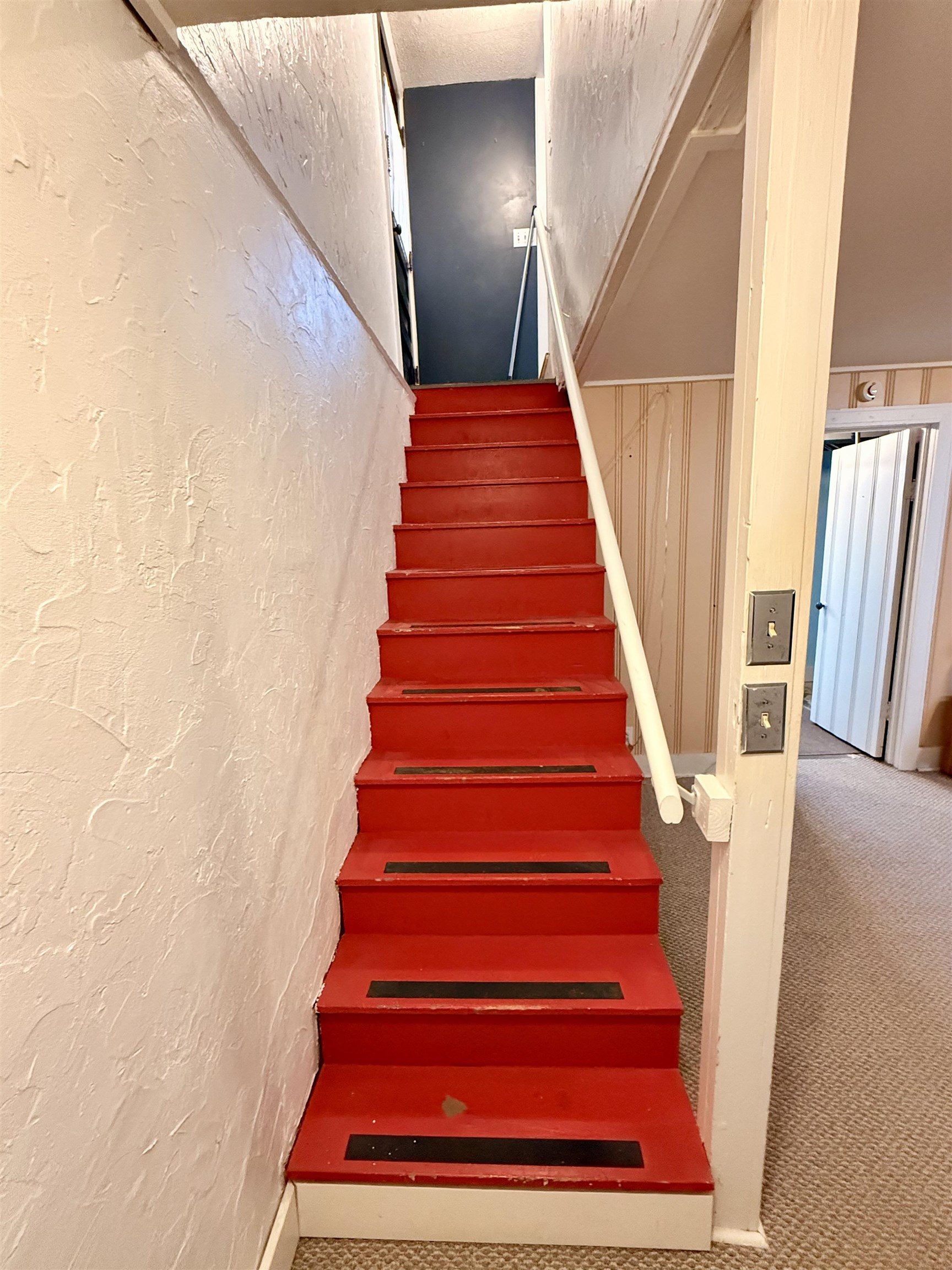- Description: Enter into this spacious Bungalow style home with three large bedrooms and two bathrooms. When you enter, you go directly up the stairs to the vast bedrooms with a built in linen cabinet in the hallway, along with a laundry chute you can access from each level. Upstairs bathroom has a vanity with hidden storage compartments. The Master bedroom has a wall tv hook-up that will stay, including a floating shelf. A quant oversized closet with character that adds a nice touch. The adjoining bedroom boast unique built-in storage shelving and an ottoman-like toy box. Downstairs, on the main level, you will enjoy the original hard wood floors in the living and dining room. A stone fireplace with wooden mantle graces the living room. The dining room has a coffee cart that will stay. The kitchen boast plenty of storage and an over the stove pots and pans holder. All appliances stay (unless seller does not request to stay.) Downstairs has another spacious living area and a second full bathroom. Then unfinished storage room finishes the basement. The selling point to this house is the fenced in oversized backyard, which has & all! A fire pit with brick pavers, a chicken coop, and a large shed that sits on a cement slab. Call for a private showing today! Proudly offered by Kattie Johnson, Keller Willams Signature Partners, LLC. Show all description
