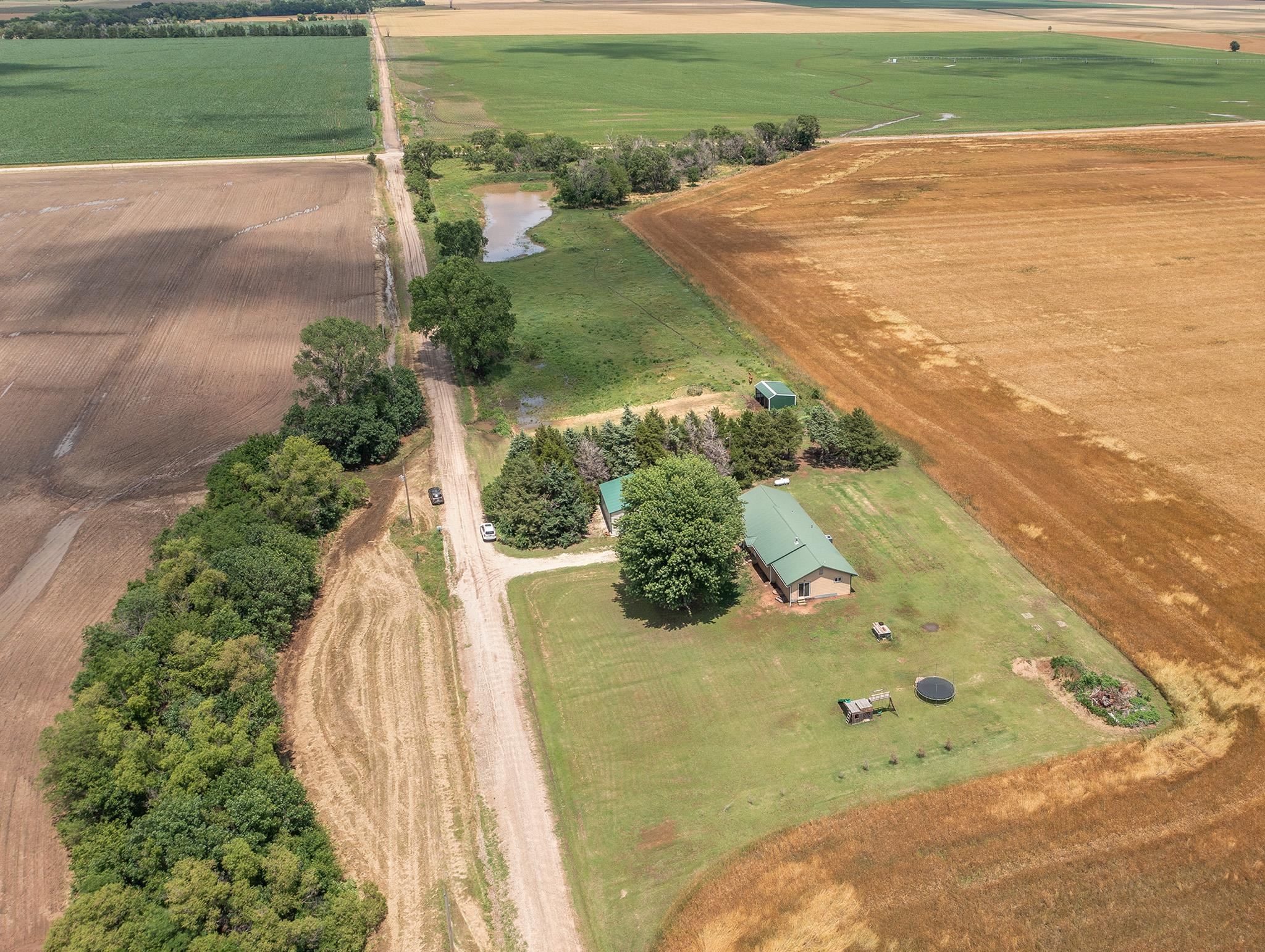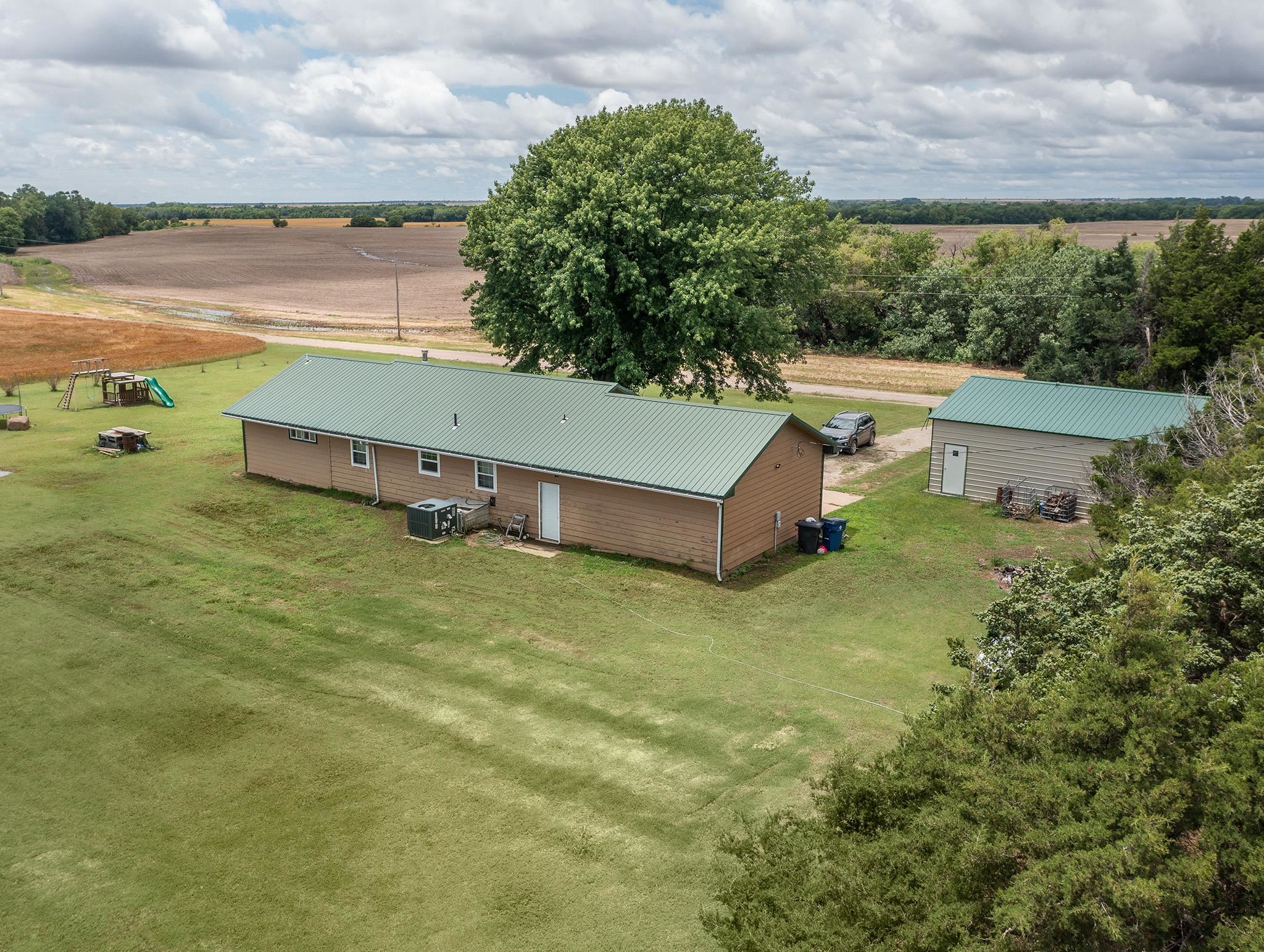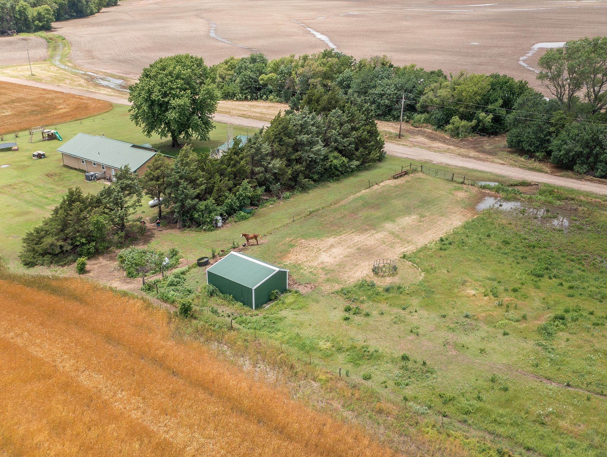 - Description: This charming homestead is just waiting for a buyer to enjoy the tranquility of living on acreage! Surrounded by wheat fields this 4 bedroom 2 full bath home is a little slice of heaven with plenty of room for exploring. The 7.4 acres boasts a wooded area, horse pasture with shelter and even a pond. Check out the over-sized 2 car detached Mortan building that was added in 2021. There is also an attached 2 car garage so you will have plenty of room for vehicles and storage! The open floor plan of the kitchen, living room, and family room are all open for plenty of space for a large family. All the matching slate stainless steel appliance will stay with the home. The farmhouse concrete countertops and light colored backsplash make this kitchen bright and dreamy. 2 bedrooms are located off the main hallway with the main bathroom located in-between. There is another bathroom located off the master bedroom. An additional bedroom was added in the basement with an egress window. Plus a basement storage area! Additional interior photos are coming soon! The well pressure tank was recently upgraded and the home comes with a water softner. The lateral lines of the septic tank were also recently replaced along with a new electrical heat pump. All the roofing is metal that will help keep this home protected for years. This property qualified for the Sumner County NPR program for a tax rebate in 2022 and still has 3 years left. This is a wonderful tranquil country property located just South of Mayfield but within a 20 minute drive to Wellington or Argonia. Please allow 24 hour notice on showings. Show all description