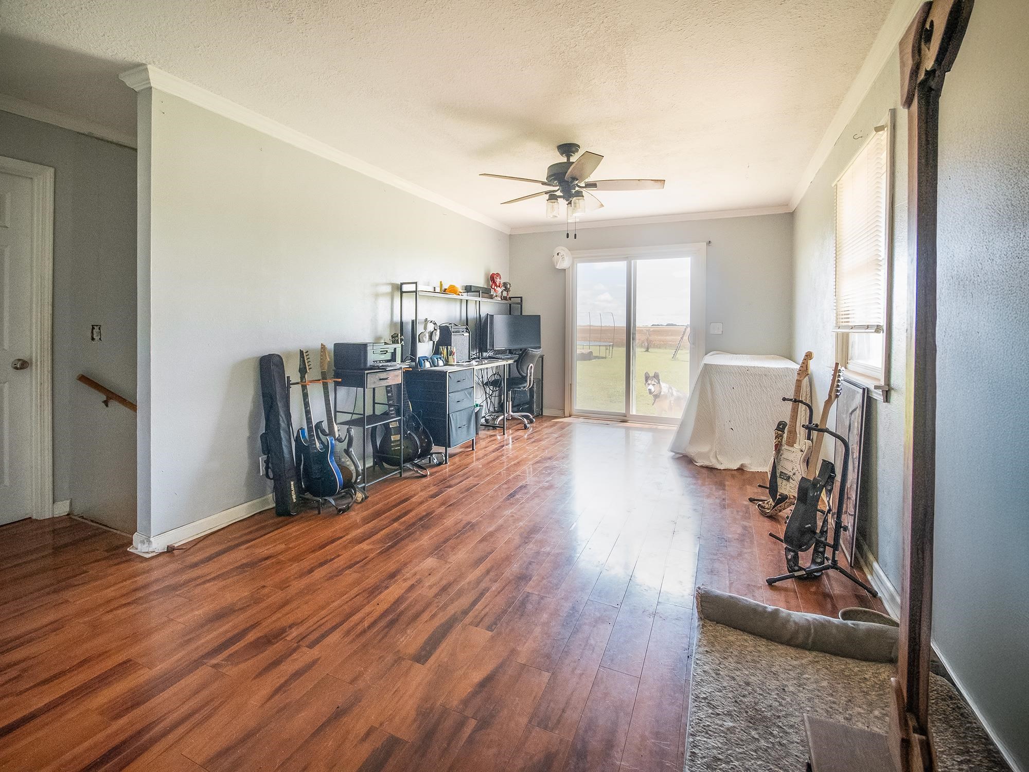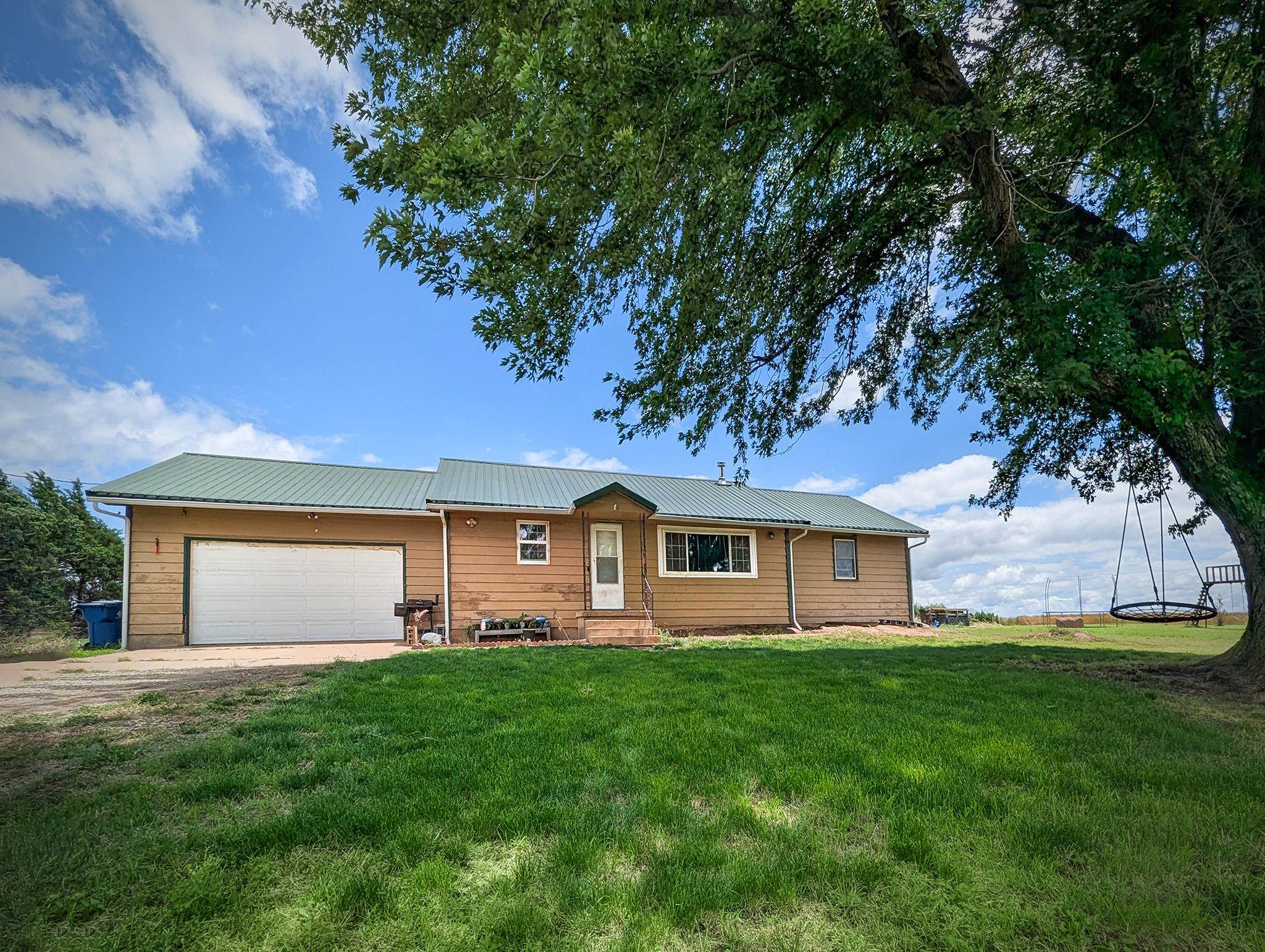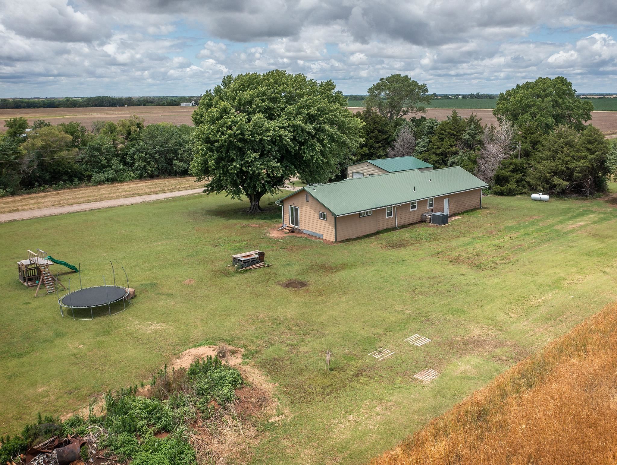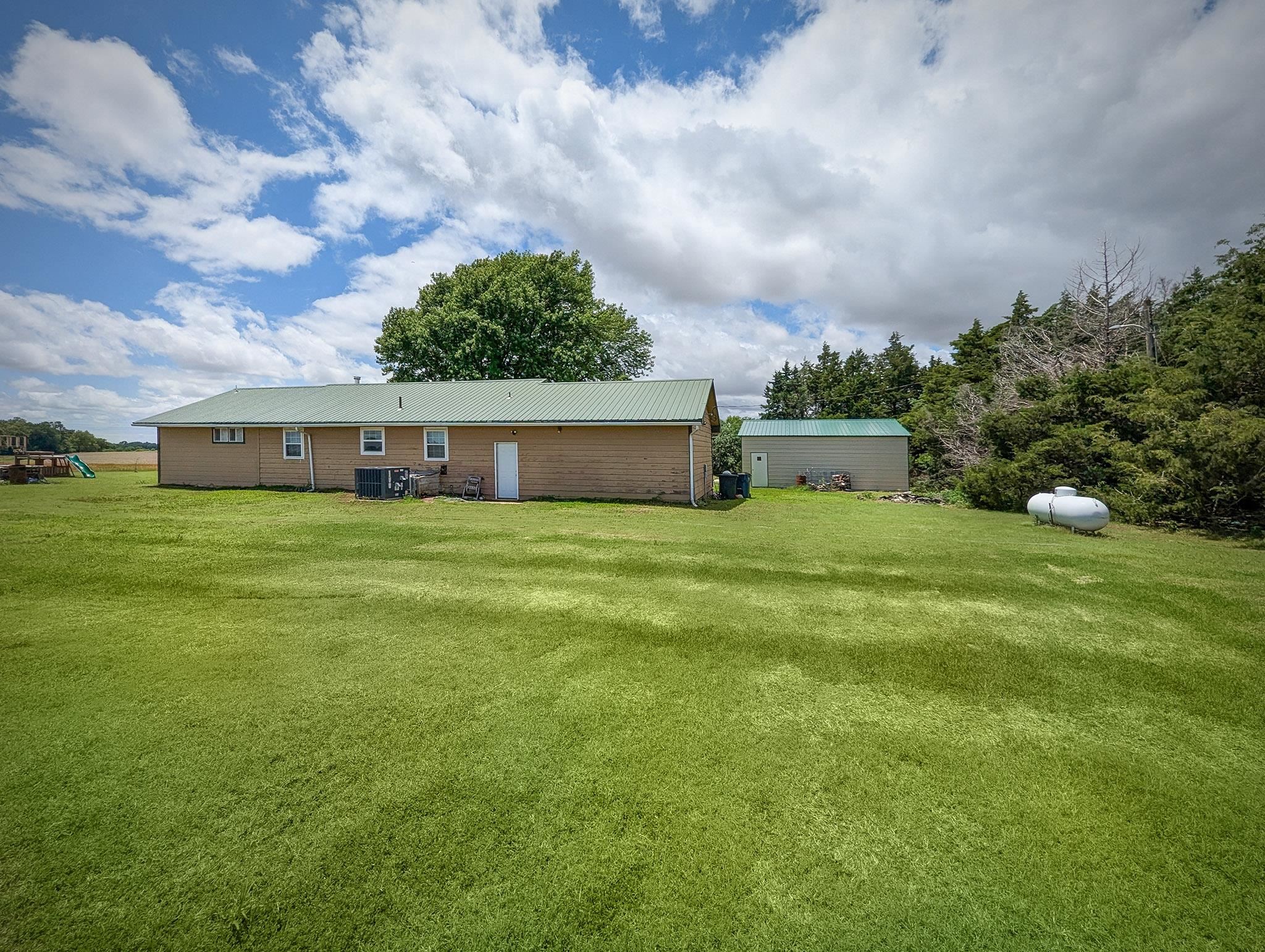 - Description: This charming homestead is just waiting for a buyer to enjoy the tranquility of living on acreage! Surrounded by wheat fields this 4 bedroom 2 full bath home is a little slice of heaven with plenty of room for exploring. The 7.4 acres boasts a wooded area, horse pasture with shelter and even a pond. Check out the over-sized 2 car detached Mortan building that was added in 2021. There is also an attached 2 car garage so you will have plenty of room for vehicles and storage! The open floor plan of the kitchen, living room, and family room are all open for plenty of space for a large family. All the matching slate stainless steel appliance will stay with the home. The farmhouse concrete countertops and light colored backsplash make this kitchen bright and dreamy. 2 bedrooms are located off the main hallway with the main bathroom located in-between. There is another bathroom located off the master bedroom. An additional bedroom was added in the basement with an egress window. Plus a basement storage area! Additional interior photos are coming soon! The well pressure tank was recently upgraded and the home comes with a water softner. The lateral lines of the septic tank were also recently replaced along with a new electrical heat pump. All the roofing is metal that will help keep this home protected for years. This property qualified for the Sumner County NPR program for a tax rebate in 2022 and still has 3 years left. This is a wonderful tranquil country property located just South of Mayfield but within a 20 minute drive to Wellington or Argonia. Please allow 24 hour notice on showings. Show all description
