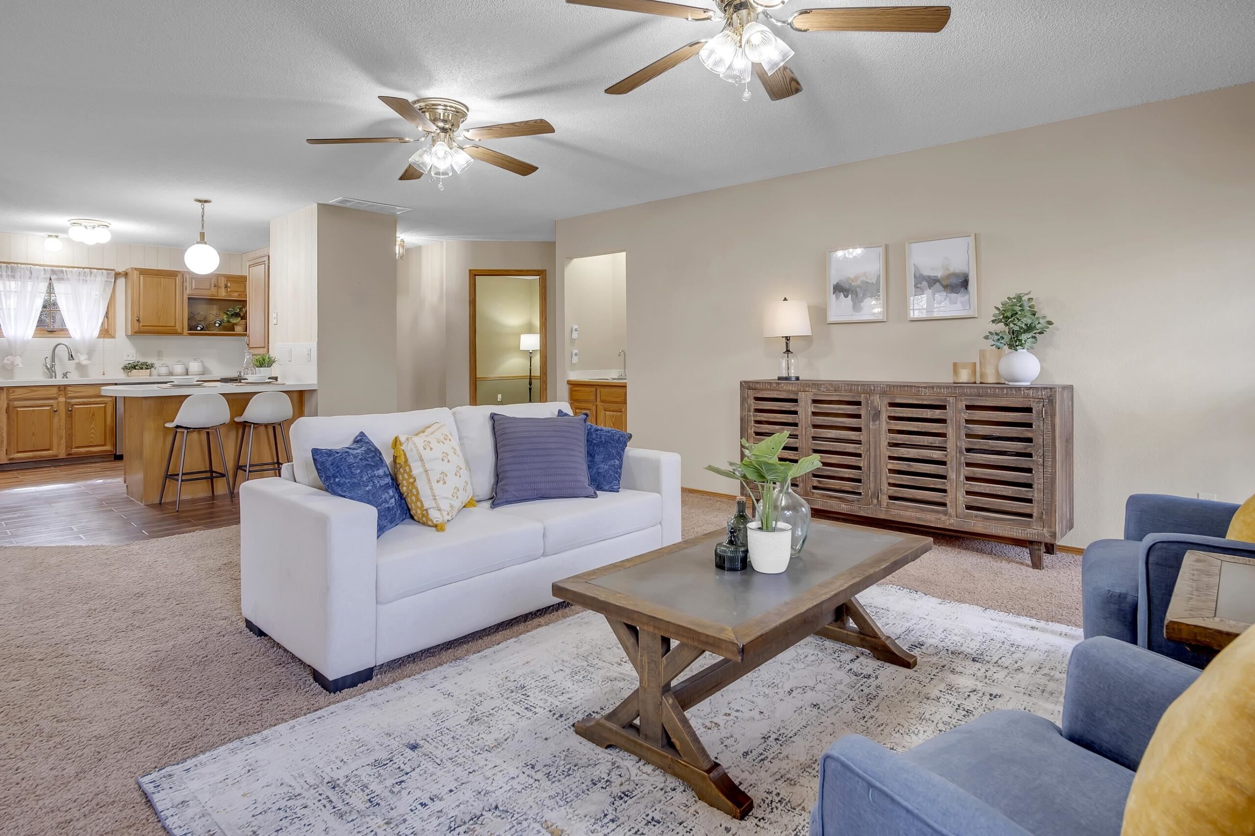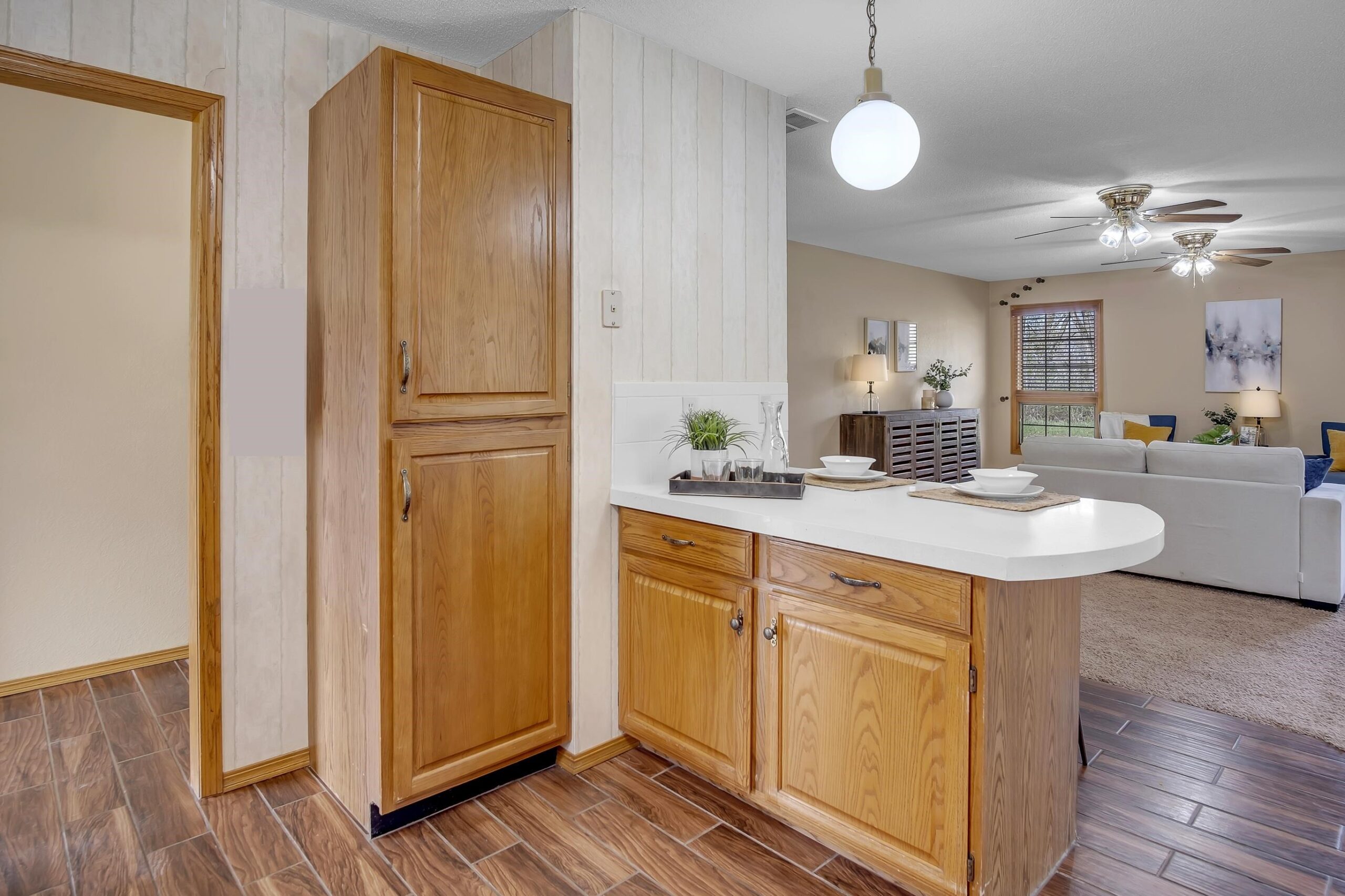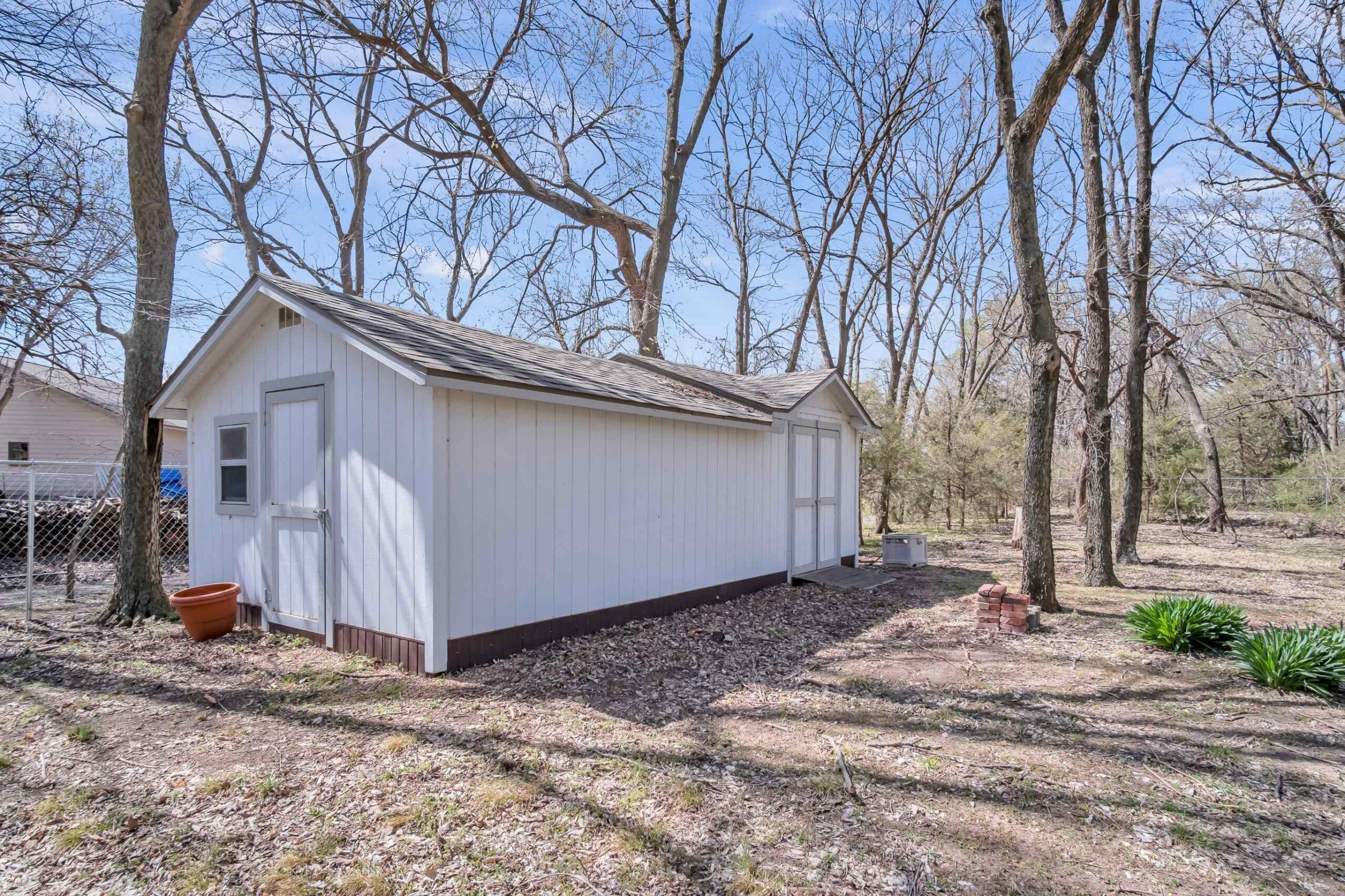 - Description: Acreage property in city limits! 2.7 wooded acres with irrigation well and sprinkler system. Perfectly manicured lawn. Nice double shed for lawn equipment or hobby space. Ranch-style home with 3 bedrooms and 2 baths. Open floor plan with living, dining, and kitchen open to each other. 3rd bedroom would make a nice office. Huge bonus space/family room with vaulted ceilings and access to the backyard. Great storage throughout. Kitchen with solid oak cabinets, pantry, eating bar, and all appliances. The master bath includes a walk-in shower, oversized soaker tub, dual vanity, and double closet. The roof is an IR hail-resistant roof and might be eligible for possible insurance savings! Show all description